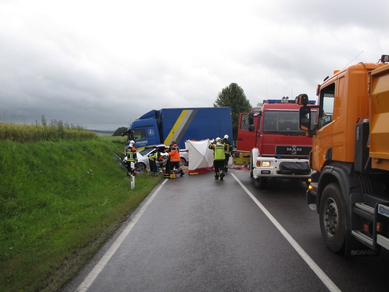 Schwerer Verkehrsunfall zwischen PKW und LKW