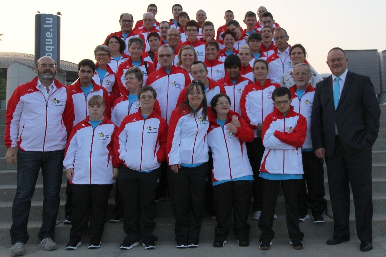 Die 38 köpfige Delegation von Special Olympics Luxemburg hat sich tapfer geschlagen beim europäischen Multisport-Event in Belgien, welches vom 13. bis 20. September stattfand. Gut vorbereitet kam das Team mit seinen 26 Sportlern in Flandern an, wo sie an 6 von 10 angeboten Sportarten teilnahmen. Die gute Organisation der Spiele in Antwerpen und Mol motivierte die Sportler noch zusätzlich, so dass die meisten über sich hinaus wuchsen. So wurden zahlreiche Bestmarken sowohl in den Testwettbewerben als auch in den anschließenden Finalen aufgestellt. Dass somit auch eine große Anzahl an Edelmetall gewonnen werden konnte erscheint als logische Konsequenz. Lediglich die Fußballer gingen in diesem Medaillenregen leer aus und mussten nach 2 Unentschieden, einem Sieg und 4 Niederlagen mit dem 5. Rang in ihrer Gruppe begnügen. Alle anderen luxemburgischen Vertreter konnten mit mindestens einer Medaille die sportliche Woche abschließen. Im Schwimmen konnten Mario Peiffer und Christiane Schlesser Gold gewinnen, zudem gab es gleich zwei Mal Silber für Pascale Berchem. Als Zweite klassierten sich sowohl die Staffel als auch Mario Peiffer, derweil Carole Mehlen Bronze errang. Im Tischtennis gab es Silber für François Goldschmit und Bronze für Elise Georges. Die Leichtathleten gewannen Gold durch Celine Galaz, Silber durch Mouck Sengchay (2), Laurent Praus und Francesco Zarotti sowie Bronze durch Galaz. Im Bocce erzielten die Luxemburger nach spannenden Partien einmal Gold durch Alexa Krier sowie zweimal Silber durch Livio Domini und mit der Doppelpaarung. Die Turnerinnen lieferten immerhin 8 Medaillen zum Total von 26 hinzu. Die meist dekorierte Sportlerin aus dem Team Luxemburg war Lynn Streitz mit 3 Mal Gold und einmal Bronze. Myriam Beckius gewann gleich zwei Goldmedaillen. Tammy Flick und Carole Rausch mit jeweils einer Silbermedaille vervollständigten die gute Ausbeute. Es gab also viele emotionelle Momente wie schon bei der Eröffnungsfeier wo im Beisein von Großherzog Henri dem Luxemburger Laurent Praus die Ehre zuteil kam die Flamme der Spiele anzuzünden.