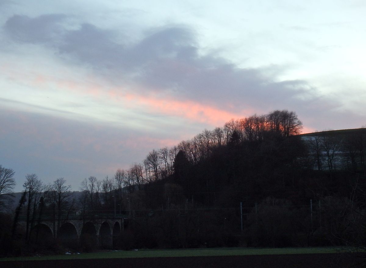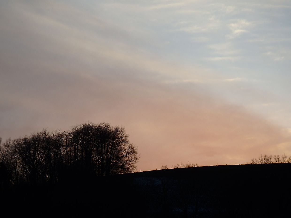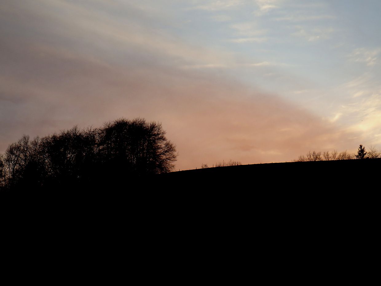Nach zähem Nebel am Morgen, einem strahlenden Sonnenschein mit angenehmen Temperaturen am Nachmittag, zeigt sich der Himmel nach Sonnenuntergang mit schrägen Wolkenstreifen, zum Teil rötlicher Färbung. Die Temperaturen sinken zusehends. Schwer zu erraten, ob eine frostige Nacht zu erwarten ist. In der Frühe werden wir wissen, was der neue Tag uns wettermäßig bereit hält.