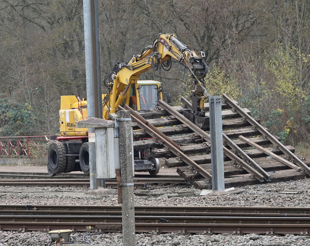 Am Ettelbrücker Bahnhof waren schwere Spezialmaschinen am Freitag, 23.11.2018 dabei, also am "Schwarzen Freitag" (aus den USA importiert) neben der großen blauen Brücke ganze Gleise, inklusive Weichen aus den Schlacken herauszureißen. Diese wurden auf dem Gelände gegenüber dem Bahnhof abgelegt und dort gestapelt. Sie haben ausgedient.