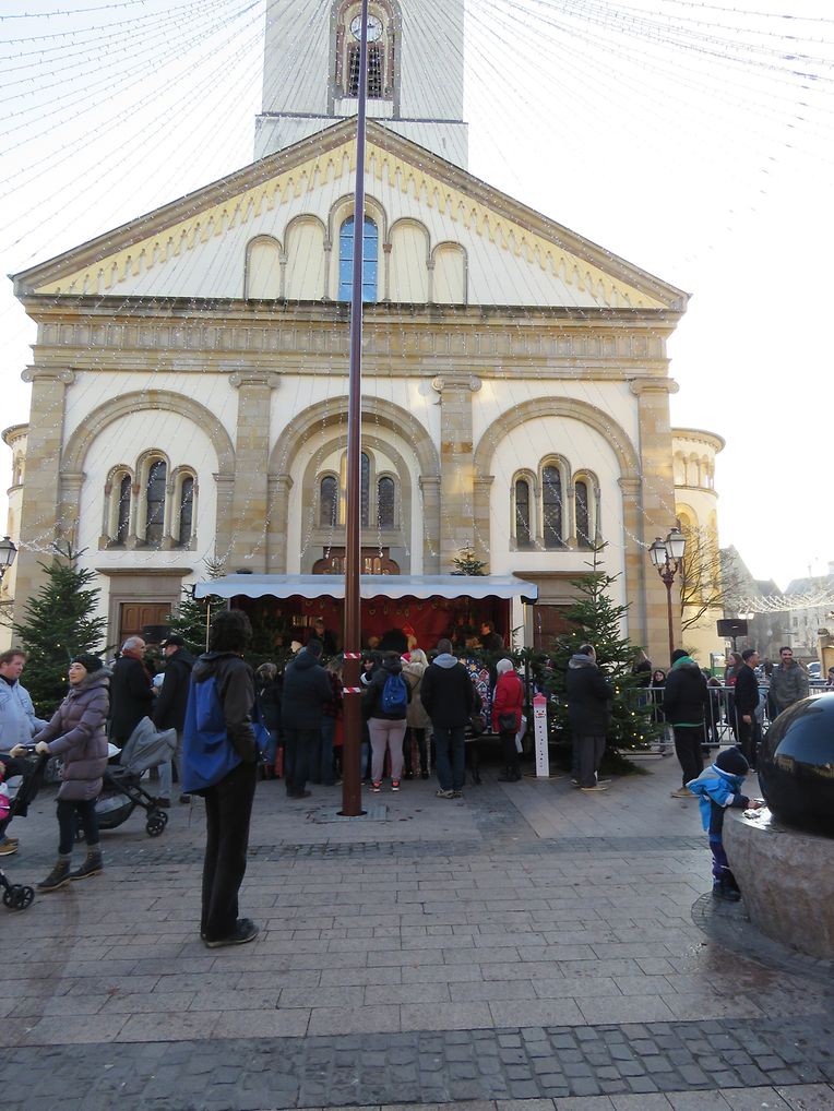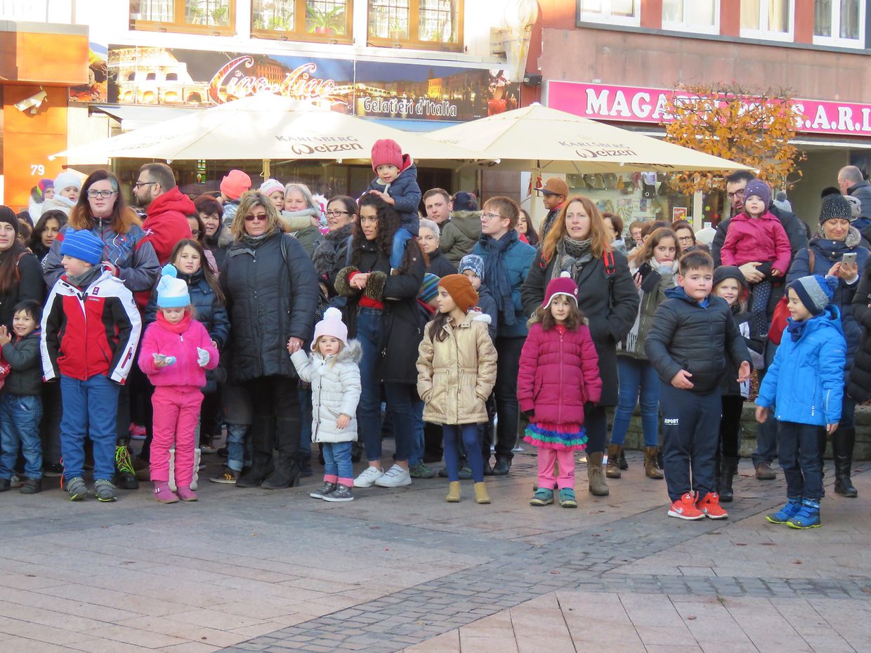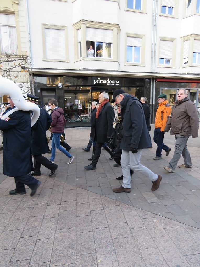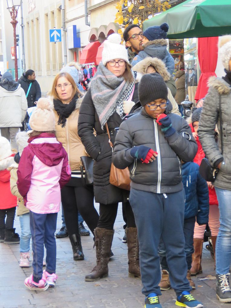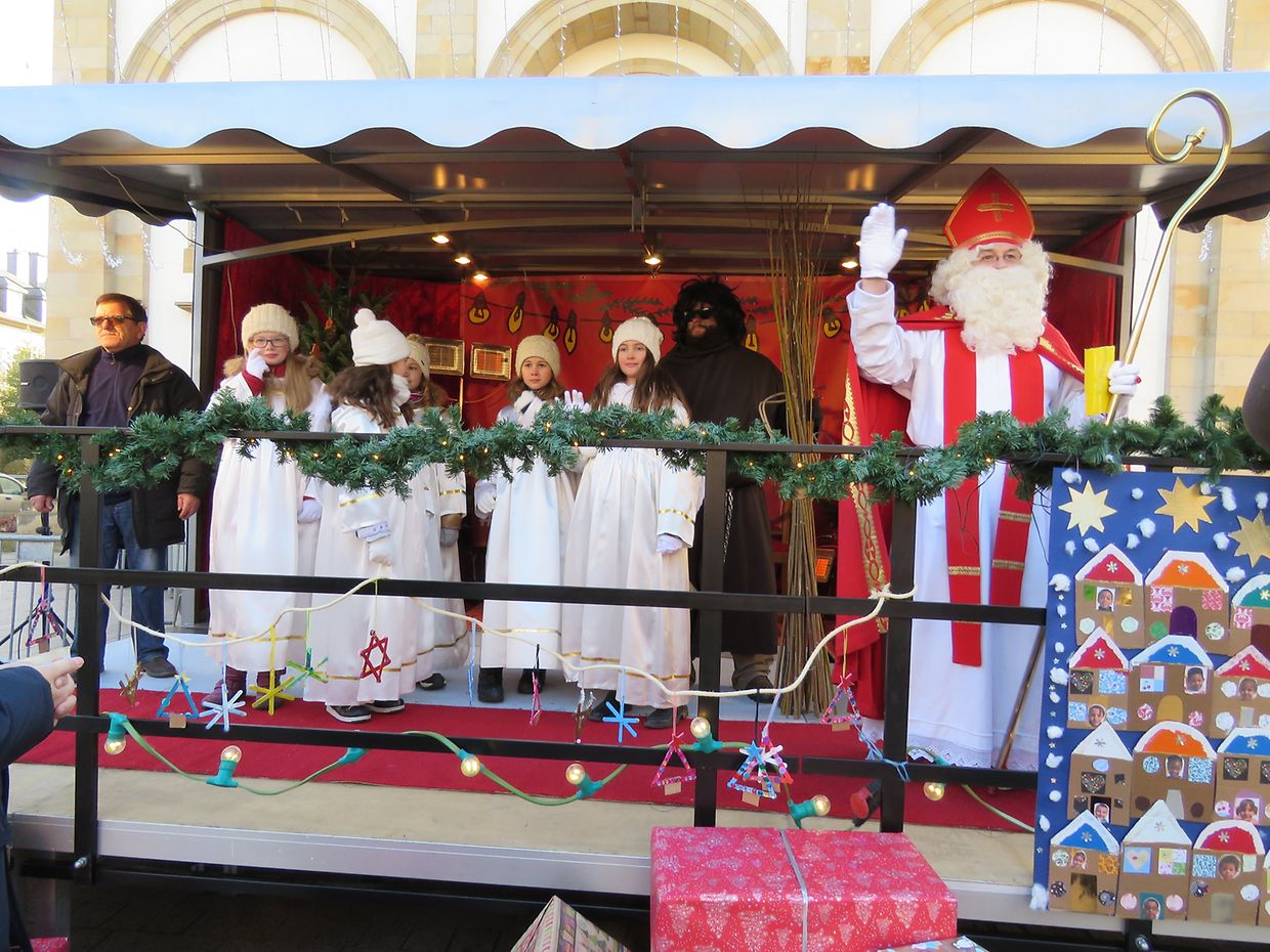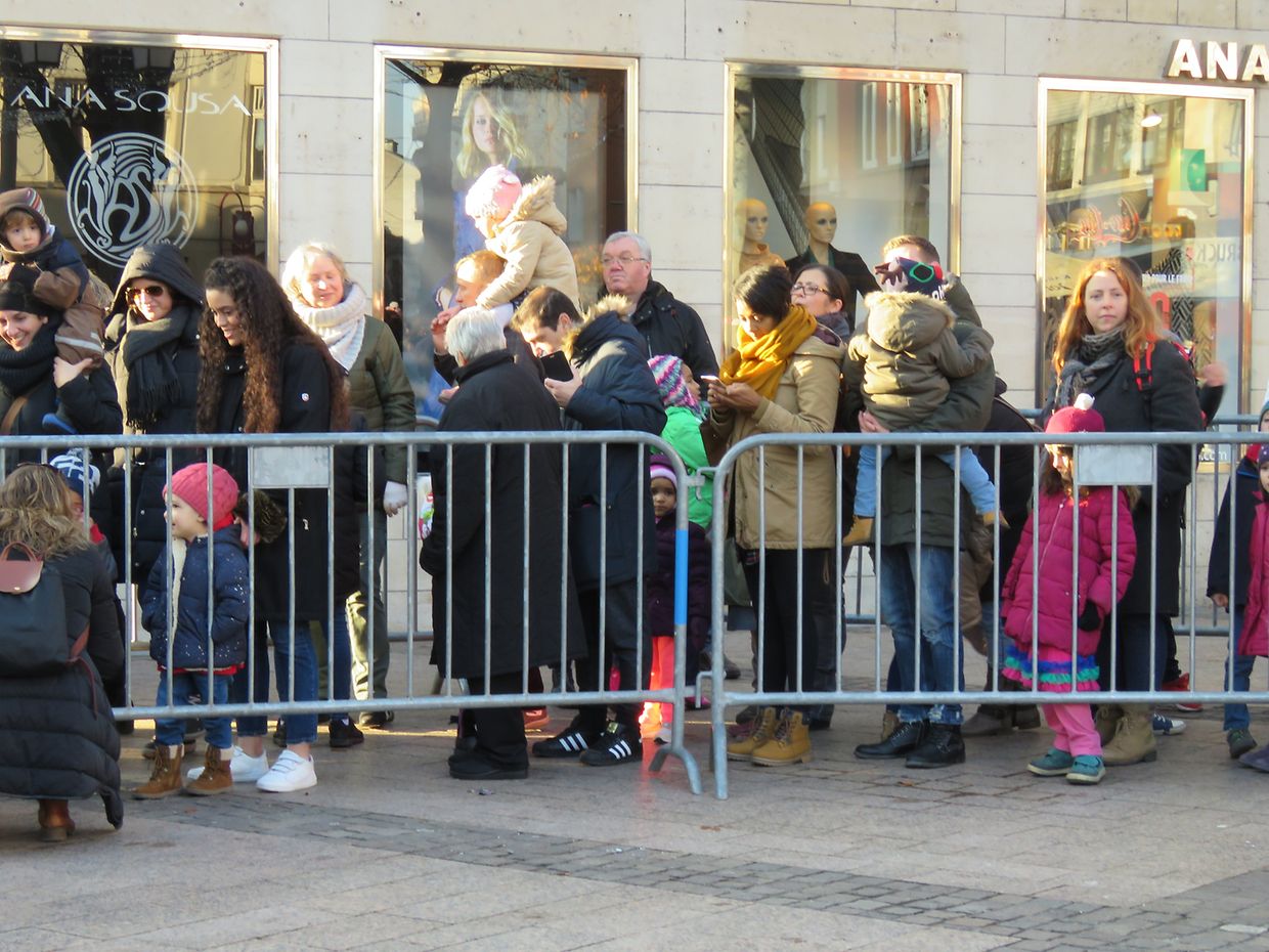 Iwwerdeems wou iwwert Lautsprecheren Nikloslidder gespillt goufen, sinn dunn d’Kanner mat hiren Elteren op d’Tribün gelooss ginn. De Kleeschen huet jidderengem d’Hand gedréckt, en an d’An gekuckt an nogefrot, ob alles déi lèscht Wochen an der Reih wor. Him gouf näischt Schlëmmes gebeicht, well jidderee krut eng gudd gefëllten Tut. Den Houséker, deen derniewent souz, huet kengem eng Rutt brauchen ze ginn. Dat war gudd esou, well d‘ Schlaang ass laanscht de grousse Käschtebam bis bal bei d’Pensionnat gaang, sou datt déi lèscht nit ze laang op hir Tiitchen hu misse waarden. An hirer Begeeschterung wäert nit jidderee gemierkt hunn, dass d’Chrëschtbeliichtung schonns ageschallt war. De Kleeschen hat awer gläich dat schéint LED-Zelt an Uecht geholl, dat och dëst Jor aus der Plaz vrun der Kierch eng gemittlech Stuff zaubert.