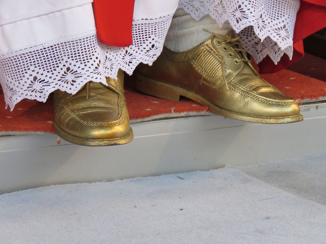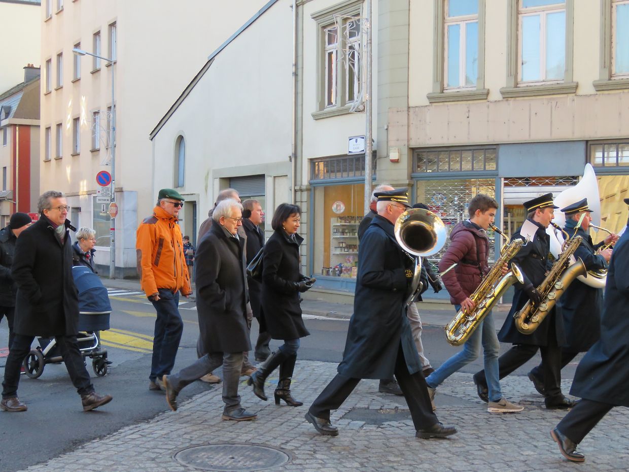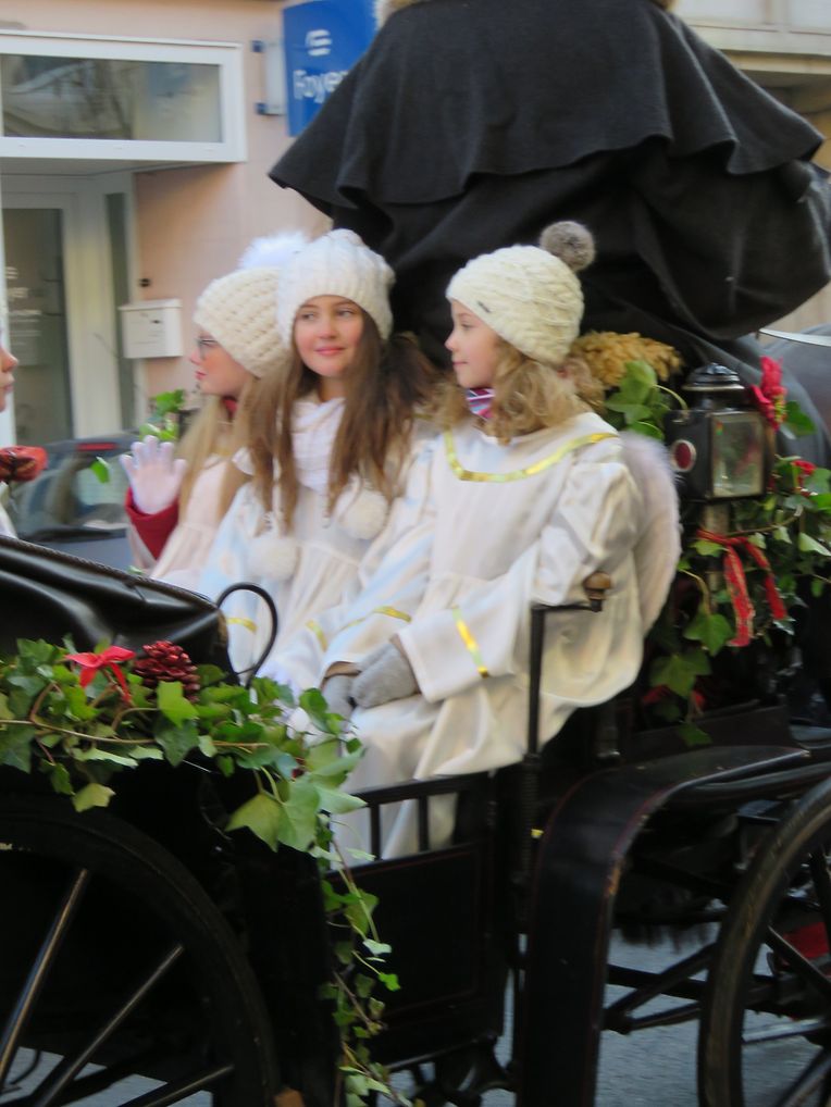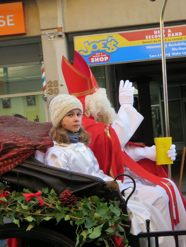 Haut, den 2. Dezember, huet de Kleeschen sech Zäit geholl, fir déi brav Kanner zu Ettelbréck besichen ze kommen. Méih schéin hätt d’Wieder nit kënne sinn. Keng eenzeg Wollék war um Himmel ze gesinn, wéi den hellege Mann mat dem Houséker um halwer dräi op der Gare aus dem Zuch geklomm ass. Du gouf deen héige Besuch vum de Gemengenautoritéiten häerzlech begréisst an d’Ettelbrécker Musék huet ee schmassegt Nikloslidd gespillt. Eng wonnerschéi Kutsch stong do ze waarden. Du huet de Kleeschen mat Engele Plaz geholl. Du gong de Cortége duerch d’Kennedyavenue a d’Foussgängerzone op d’Kiercheplaz. Ënnerwee huet de Kleeschen no riets a lénks déi brav Kanner begréisst, déi sou laang op dësen Dag gewaart haten. D’Musék huet Niklosmärsch gespillt an ët konnt een héieren, wéi äifreg vun de ville Kanner an Erwuessene matgesong gouf. Direkt virun der Kierch war eng breet Tribün, gerëscht mat Chrëschtbeemecher, faarwege Kannerzeechnungen a grousse Cadospäck. Ier de Kleeschen op enger Fotell Plaz geholl huet, huet en nach eemol jidderengem zougewénkt. Do konnt ee gesinn, wéi schéi wäiss séng Händsche waren. Wee virbäi stong, konnt souguer feststellen, datt e gëlle Schong unhat. An enger Hand huet en ee Bichelche gehal, wou sécherlech allerlee Intressantes dra stong.