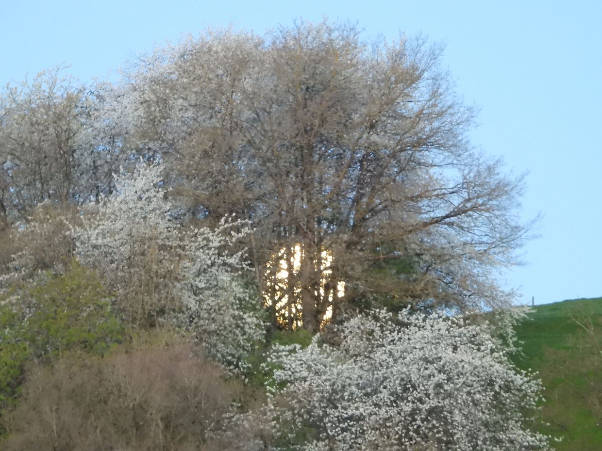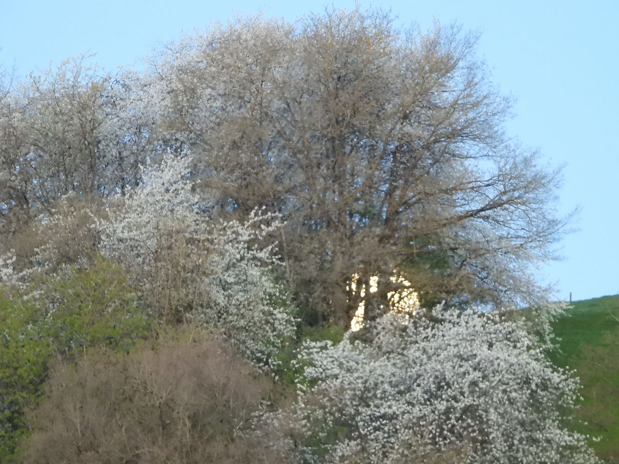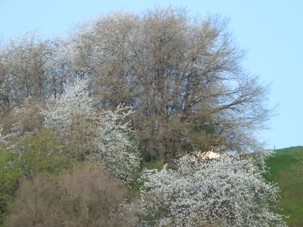 Schonns fréih ass op Ouschtersonndeg de Mound, nach bal Vollmound, iwwert der Ettelbrécker Haardt, verschwonn. Géint haéwer siwen war e ganz verschwonn. Zommleck frësch war ët och, ënm 3,5 °.