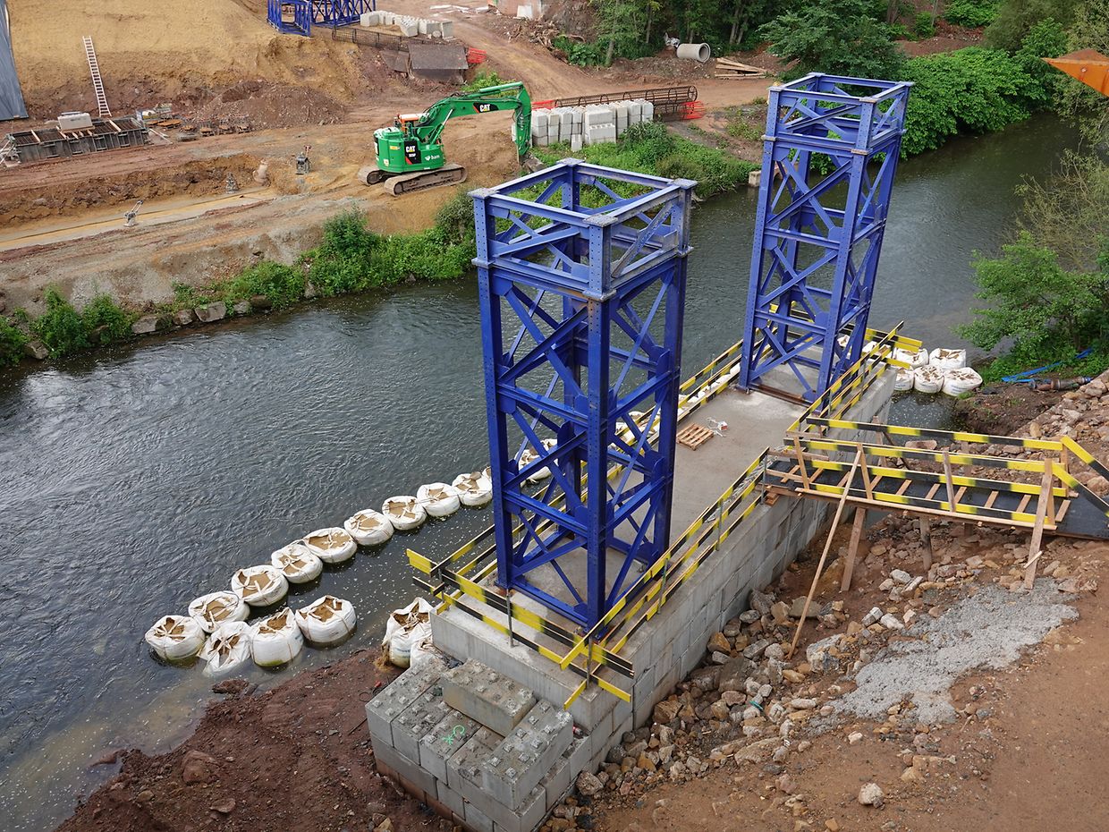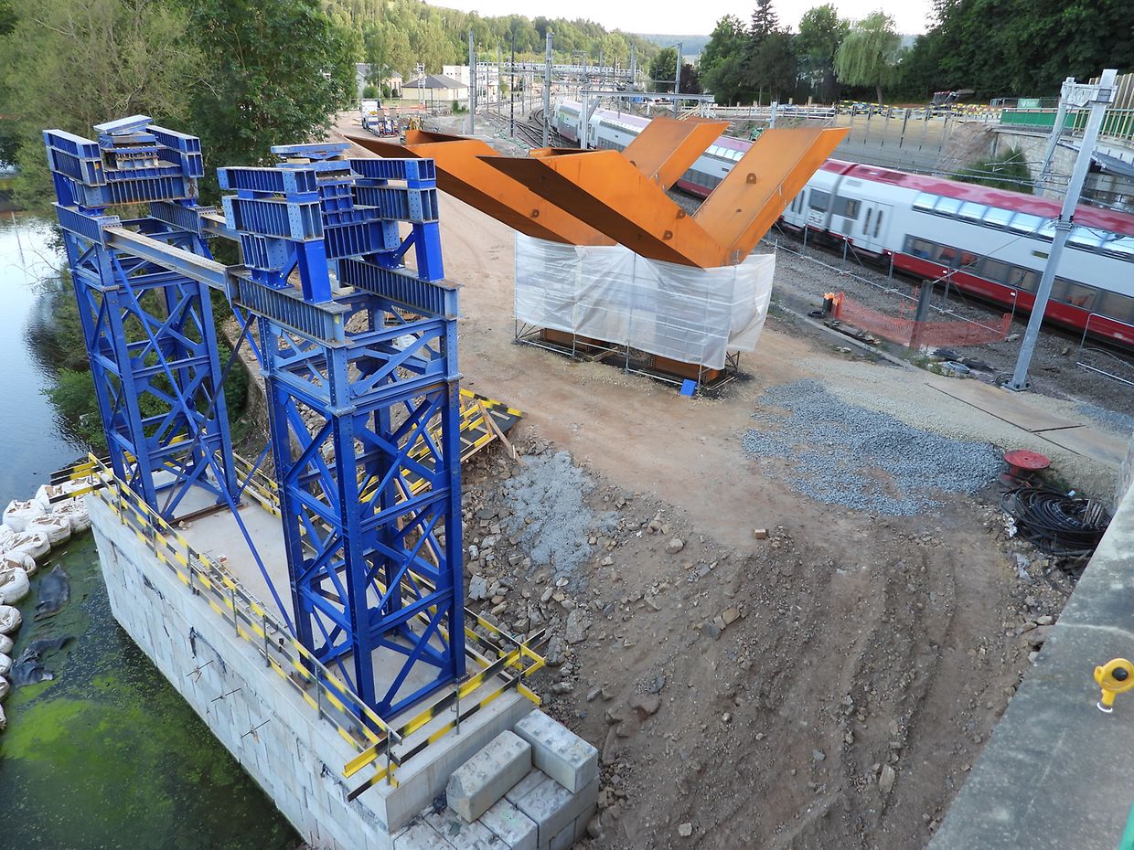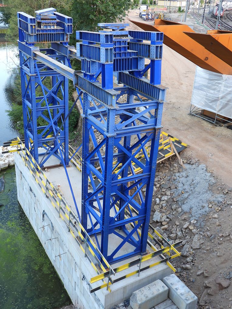 Rund 150 Meter lang wird die neue Pattenbrücke sei. In einigen Tagen wird das kolossale erste Unterbauelement aus Spezialstahl, das seit Wochen in schweißtreibender Arbeit rund um die Uhr unter einer weißen Schutzplane zusammengeschweißt wird, Zentimeter um Zentimeter vorwärts geschoben werden. Anschließend werden die nächsten Teile in der Nacht auf speziellen Tiefladern aus Belgien herbeigebracht, um vor Ort mit Hilfe von 2 Kränen zusammengefügt und an das erste Teilstück befestigt werden. Wegen des hohen Gewichtes sind 2 stabile Hillfspfosten vorgesehen, über die das gewaltige Gebilde geschoben wird, um die beiden auffälligen Träger in Y-Form am anderen Sauerufer zu erreichen, die bereits vor Monatender in einer spektakulren Operation installiert wurden. Bis der Verkehr über die neue Brücke laufen wird, wird es allerdings noch dauern, voraussichtlich bis Ende 2020.