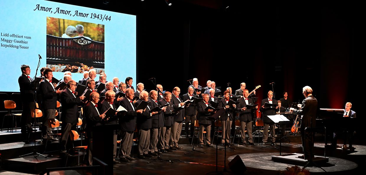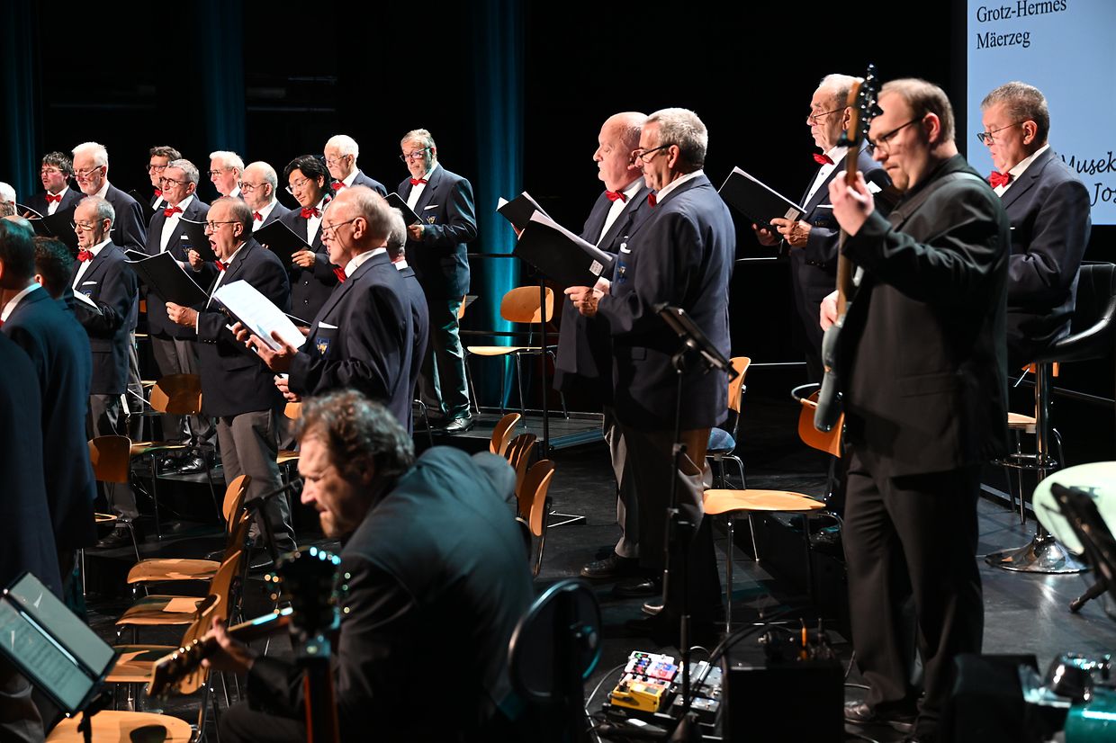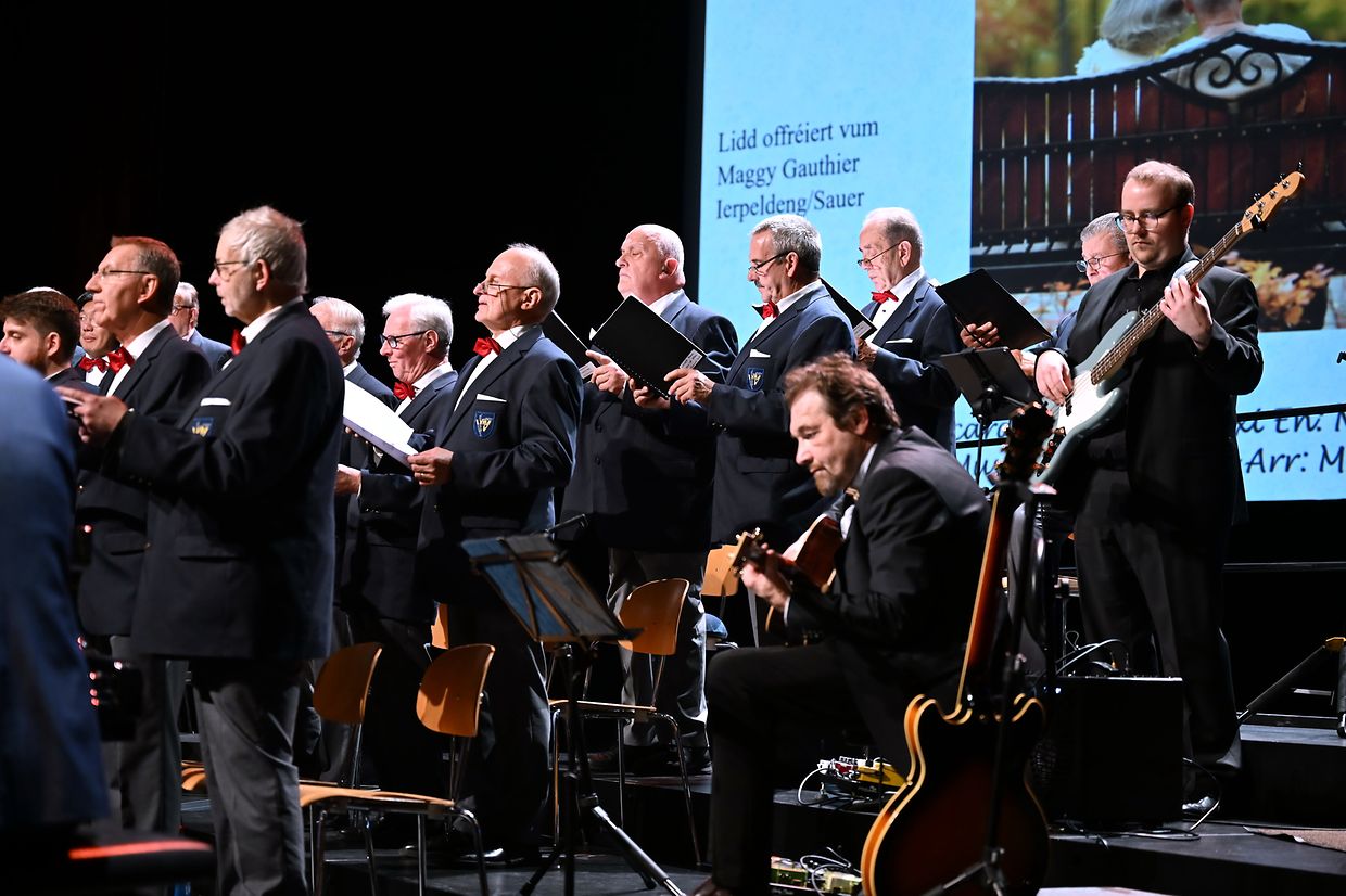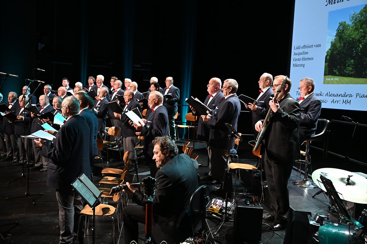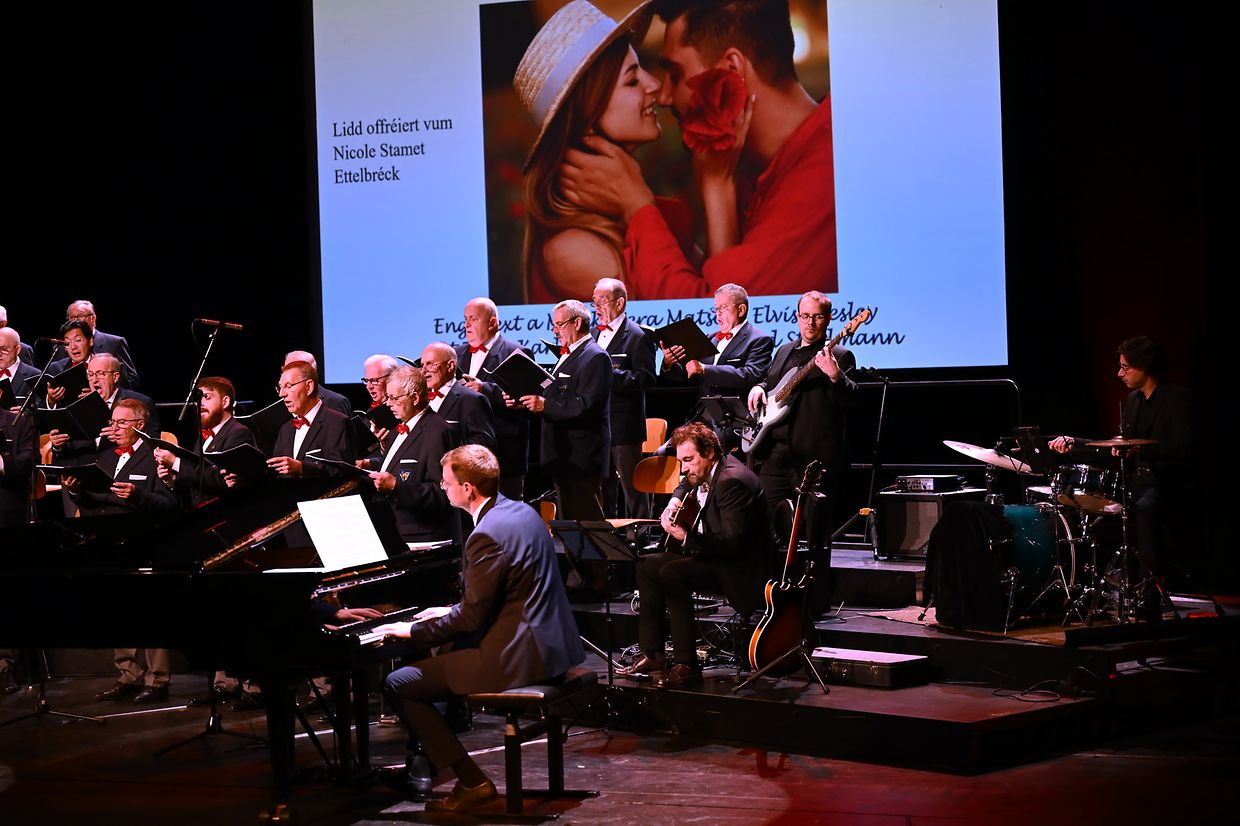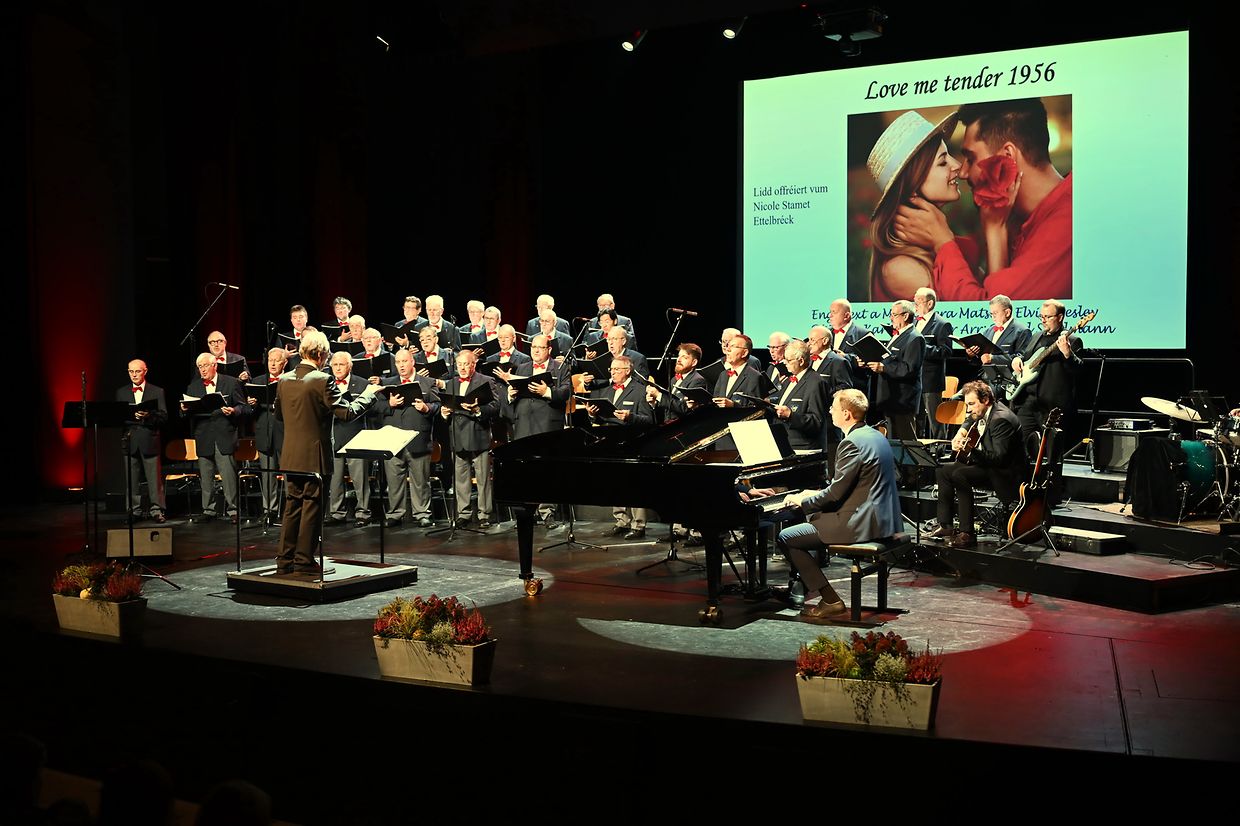 Ettelbréck: Virun 114 Joer ass d‘Chorale Municipale Ettelbréck gegrënnt gin an huet och dest Joer un der schéiner Traditioun festgehaalen, fir de Frënn vum Gesank e flotten Galaconcert am „centre des Arts Pluriels Ed. Juncker“ mam Thema“ Liebe ist Alles“ ze presentéieren. Den Erfolleg op denen zwéin Owender war grouss, esou dat nit manner wi 650 Nolauschterer der Aluedung vum Ettelbrécker Männerchouer nokomm sin an och mat flotten Lidder an Evergreens verwinnt gi sin. Och den Eric Thill als Kulturminister an den Schäfferot vun der Gemeng Ettelbréck hun sech dat Evenement nit entgoue geloos. Hiren langjährigen an dynamischen Dirigent Marion Michels, den de Chouer schon iwert 25 Joer mat Kompetenz leet, hat eng ganz Reih vun gefällig Meodien erausgesiicht, déi vum ganze Chouer mat Bravour gemeeschtert si gin. Nit manner wi 18 Schlager an bekannt Lidder aus dem Zäitraum vun 1944 bis 2004 wi: „Song for Guy“, „Amor, Amor“ , „Karma Chameloeon“, „die Dornenvögel“ bis hin zur „Hymne d’amour“ samt dräi Zugaben mam „Arrivederci Roma“ als Ofschloss sin mat groussem Applaus vum Publikum honoréiert gin. D’Solisten Henri Beissel, Vincent Koks, Billy Tessaro an John Dusseldorf souwi och dem Pianist Claude Huss vum Owend, hun hirt gesanglicht a musikalischt Talent bei hiren jeweiligen Optrëtter och wonnerbar zum Ausdrock bruecht. Professionell begleet goufen Sänger vum Luc Hoffmann (Banjo, Jazzgittar, Mandolin), dem Pit Ewen (Kontrabass &E- Bass) an Fränk Wagner ( Perkussioun). Mat berechtigtem Stolz huet den President André Nicolay senge Sänger, dem Instrument- Ensemble awer och hirem Dirgent Marion Michels mam Pianist Claude Huss säin oprichtige Merci ausgedrëckt fir de perfekten Optrëtt di zwéin Owender vum Gala 2025 am CAPE. Natirlich ass och alle Sponsoren a Symphatisanten a Läit am Service, wi och dem dankbaren Publikum fir hir Hëllef, Ënnerstëtzung a Presenz villmols Merci gesoot gin. Bleiwt ze vermierken, dieselwecht Optrëtter vun der Lyra Ettelbréck den 07. An den 08. Februar 2026 am centre Turelbaach zu Mäerzeg um 20 resp um 17 Auer schon um Programm stin. Et ass der Wert lauschteren ze kommen. (CR) (Fotoen: Charles Reiser)