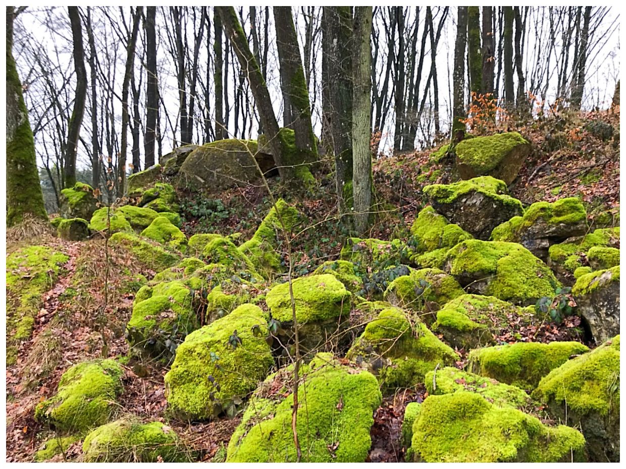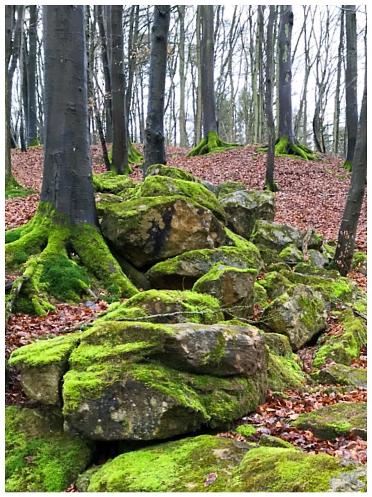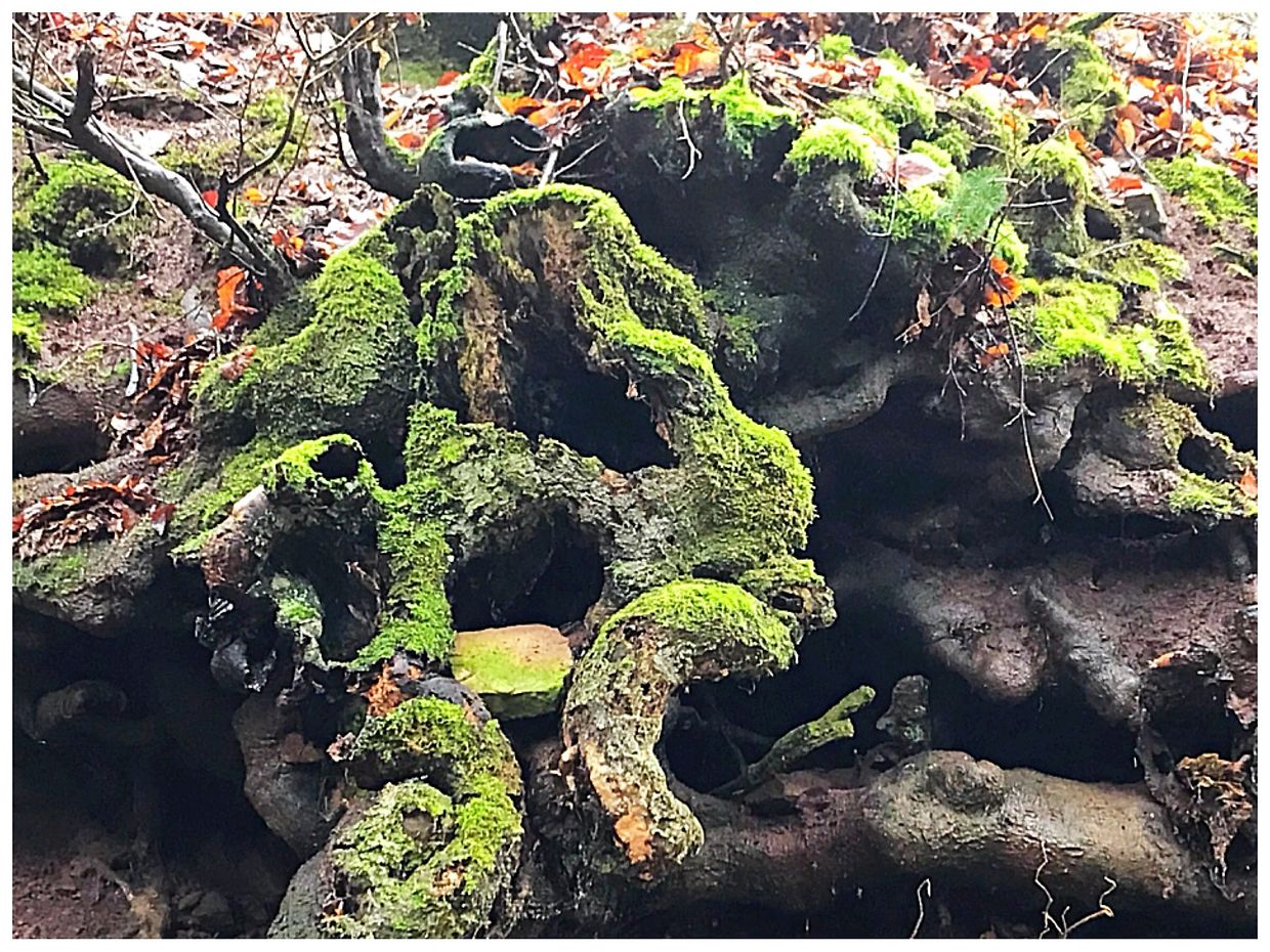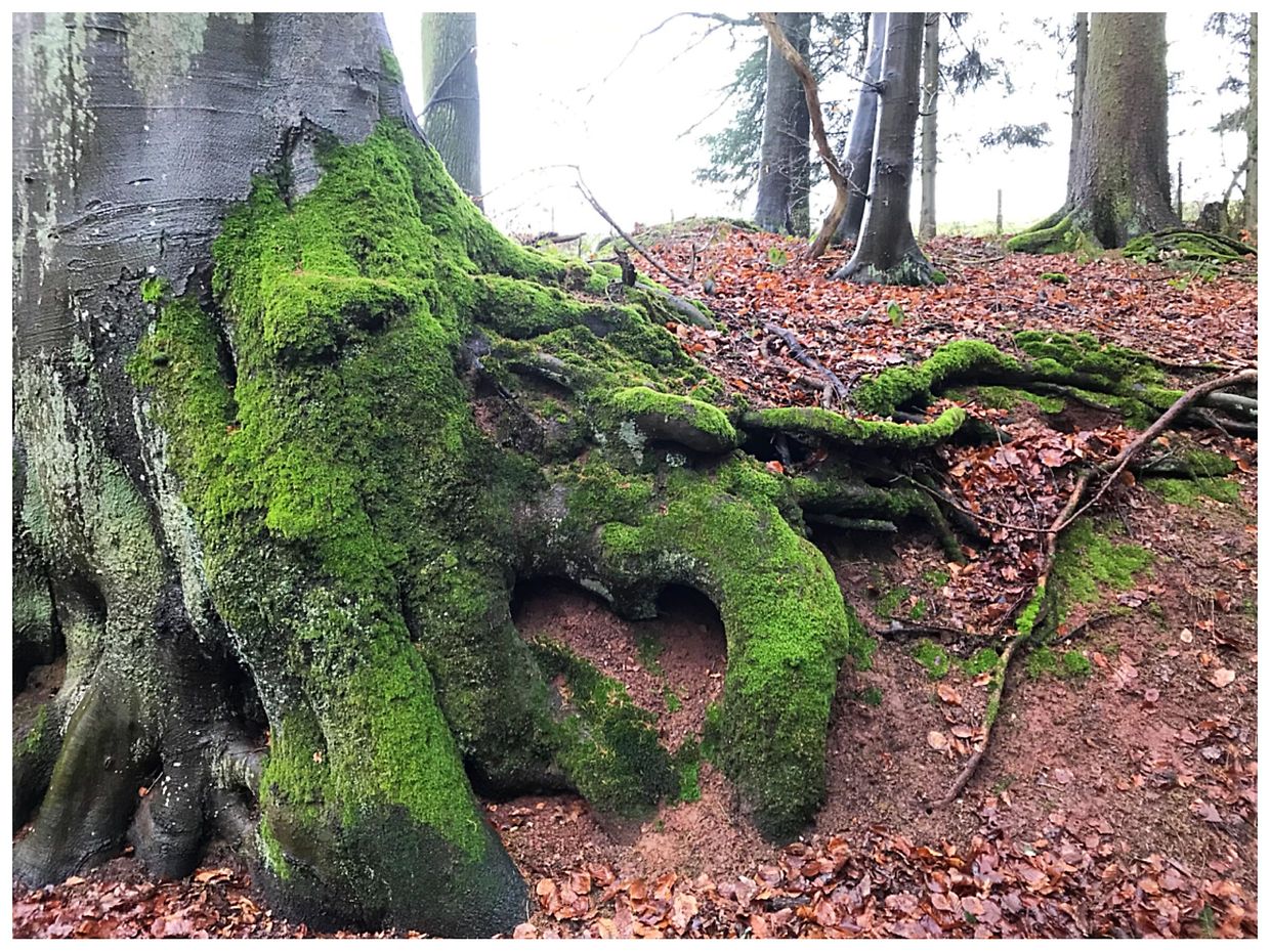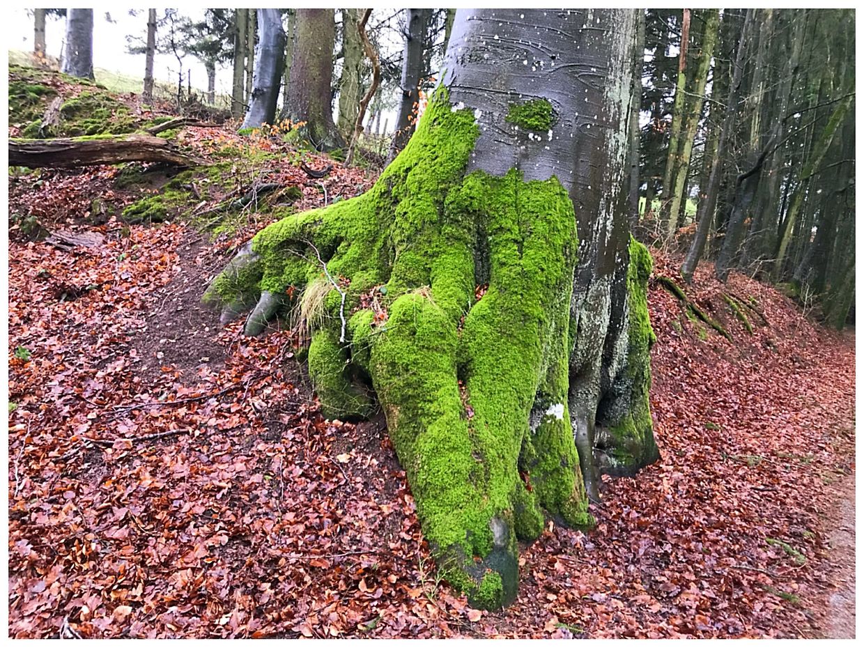 An Buchebësch ënnerwee! Déi lieweg greng Farw vum Moos un de Bamwuerzelen an de Steng ass einfach nëmmen genial schéin!