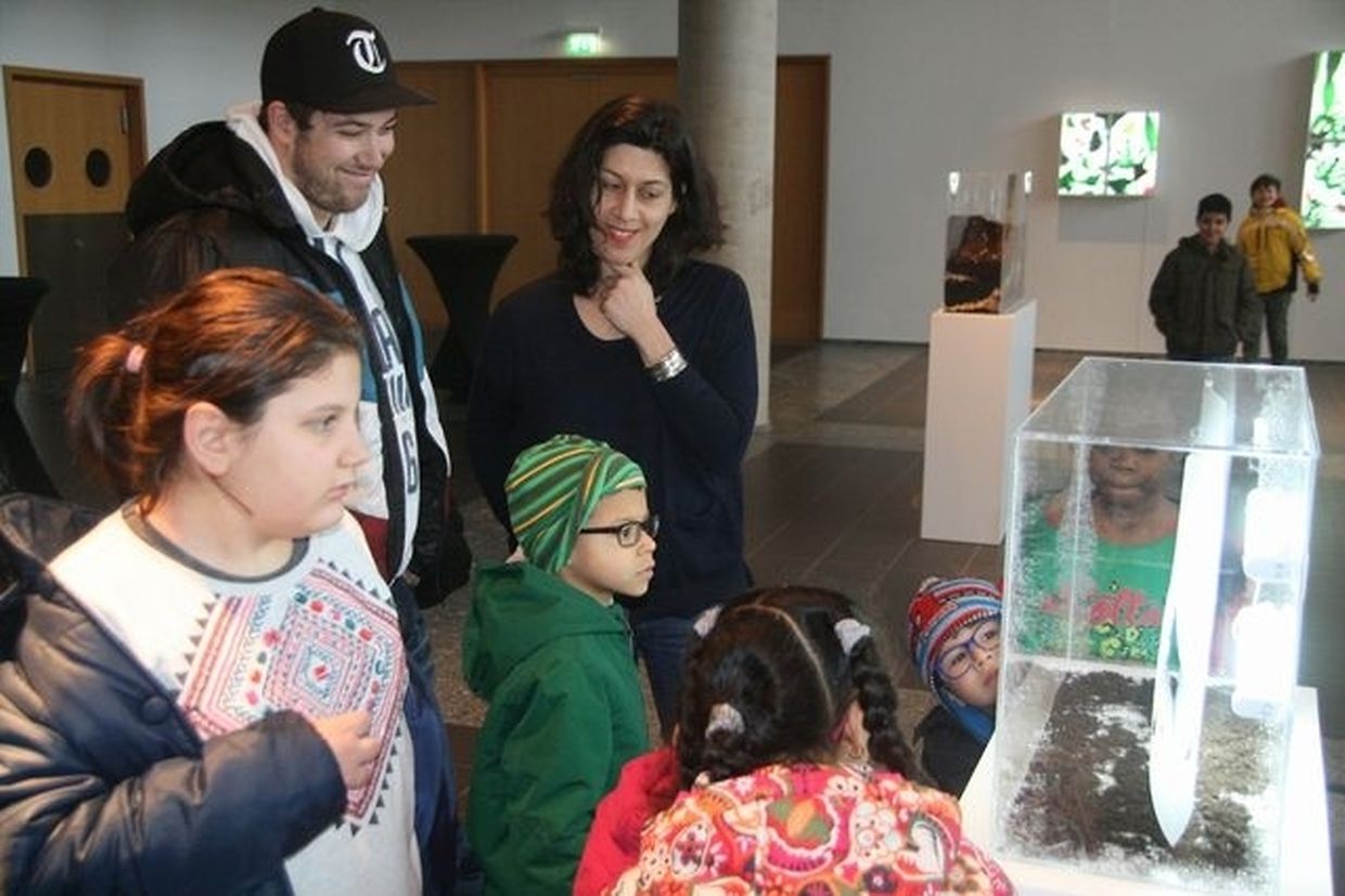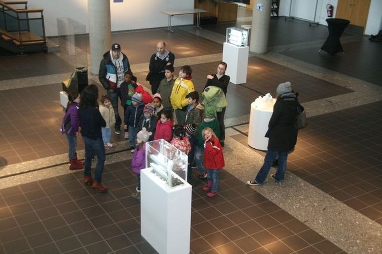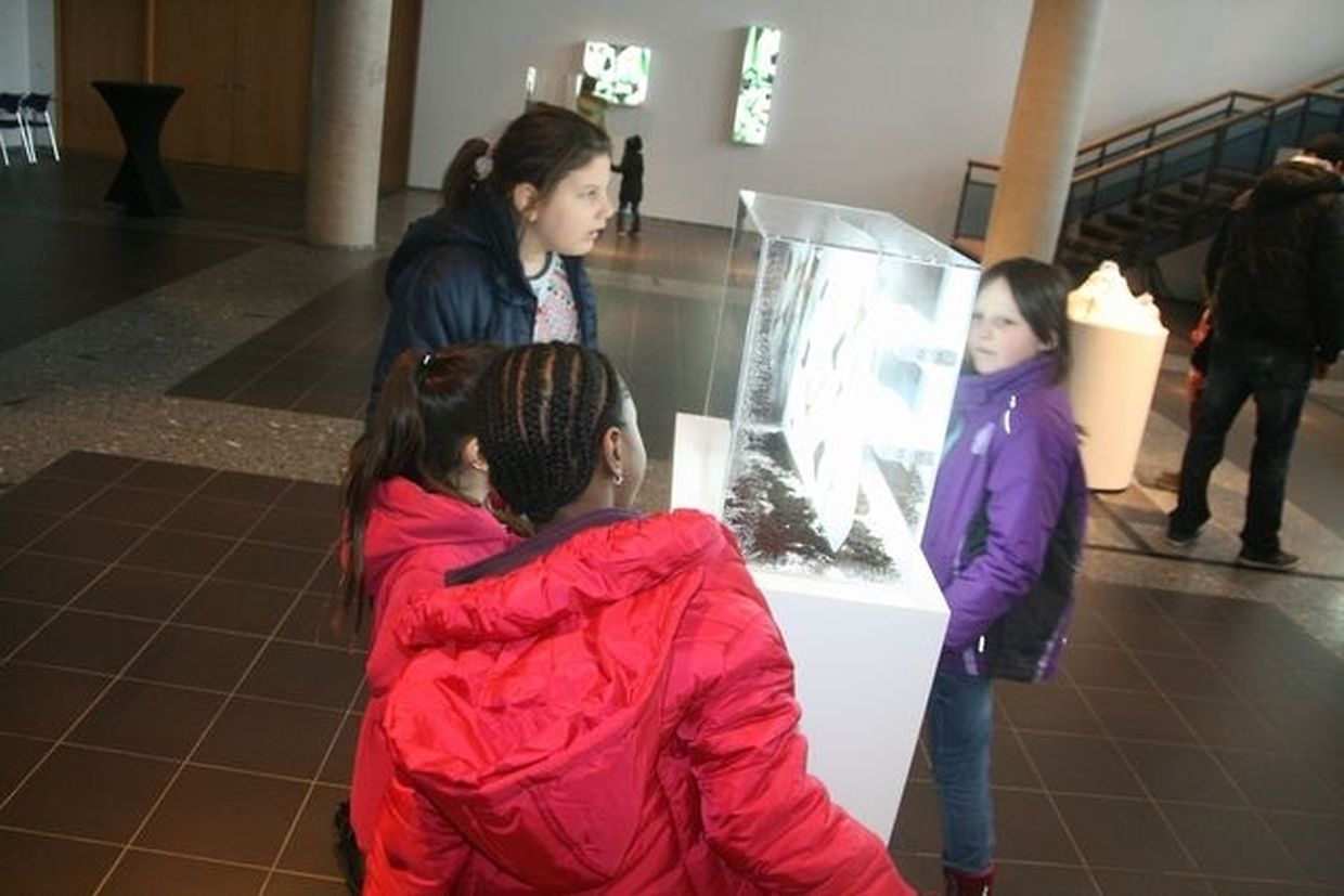 Pendant plus d’une heure, nos écoliers ont déambulé au milieu des multiples sculptures, montages, photographies et vidéos qui constituent cette exposition « vivante et en permanente évolution ». Grâce à la présence de l’artiste, de ses explications ainsi que des questions des enfants, cette visite est devenue une belle aventure interactive.