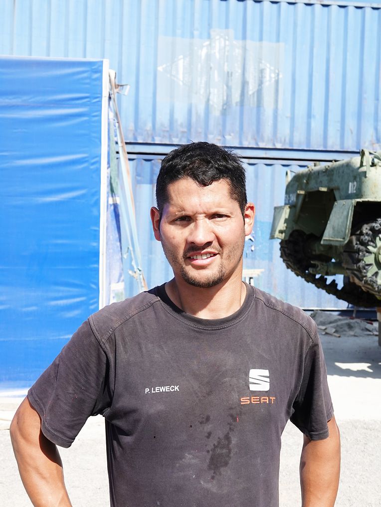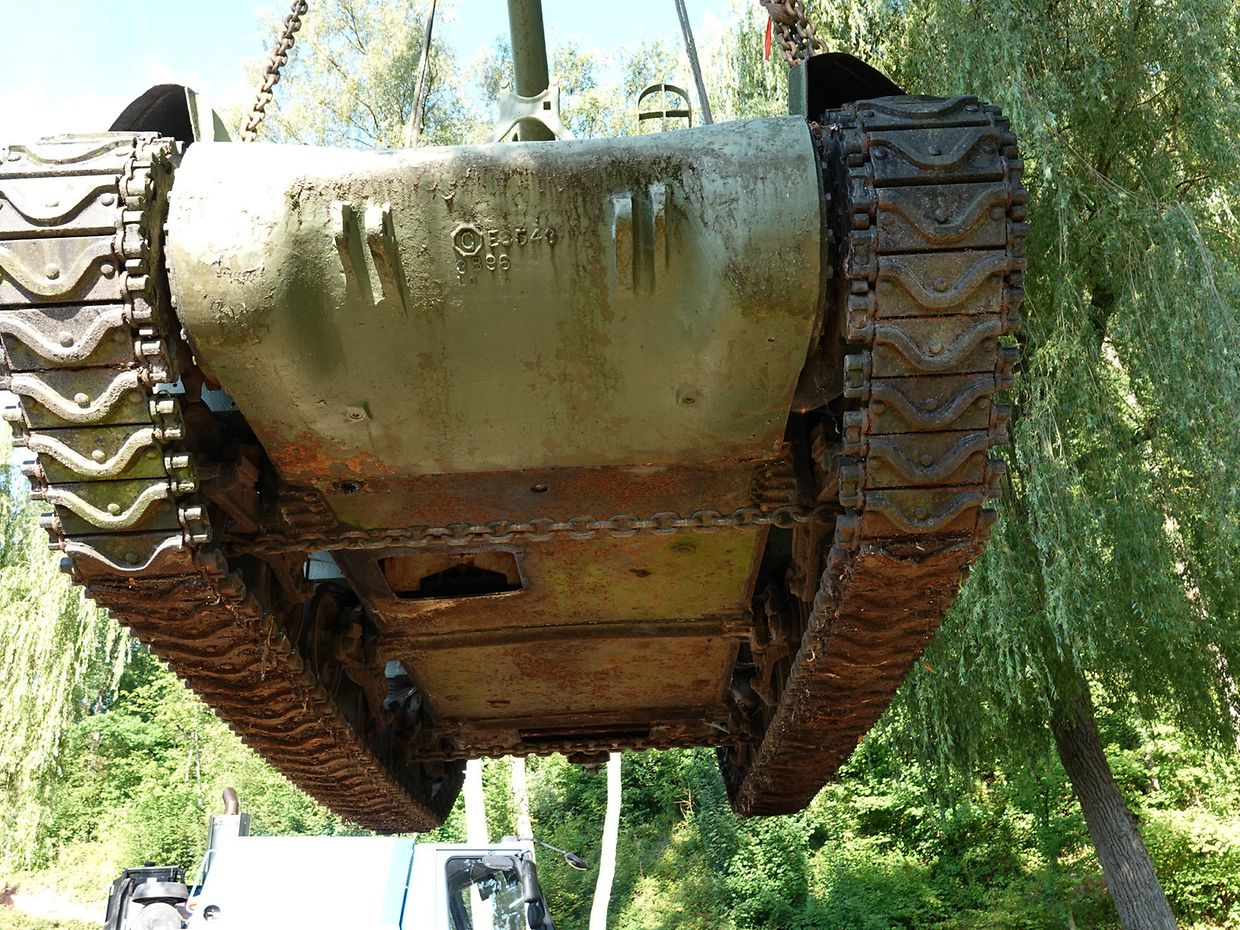 Die Firma GRULUX hatte sich angeboten, diese schwierige Herausforderung anzunehmen, dazu noch kostenlos. Ein mächtigeer Kran war auf dem Patton Square gut gesichert aufgestellt worden. Das erfahrene Team schaffte es, an dicken Draht seilen, Ketten und Haken den Koloss so zu befestigen, dass er vom Kranführer waagerecht vom Betonsockel etwa 10 Meter vom Patton-Denkmal entfernt hochgehoben, zwischen den hohen Bäumen hindurch gedreht und zentimetergenau auf dem auf der Haapstraße bereitgestellten Tieflader abgestellt wurde. Von dort ging die Reise auf das Gelände der Seat Vertretung LEWECK Fons.