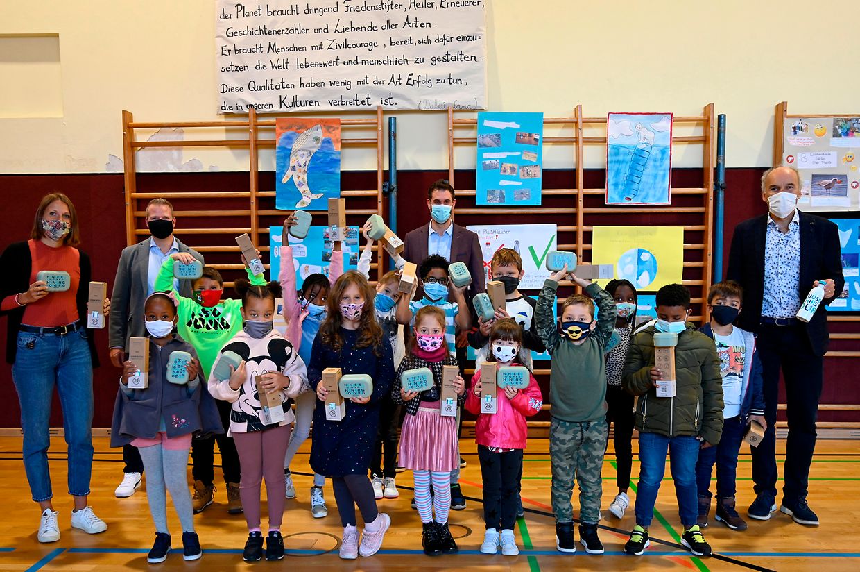 Am 28. September haben 770 Schüler und 120 Lehrer/innen der Ettelbrücker Grundschule eine Trinkflasche und eine Brotkiste erhalten. Ziel dieser Kampagne ist es, den Plastikverbrauch zu verringern und die Kinder zu sensibilisieren Ressourcen zu schonen, Müll zu vermeiden und Leitungswasser zu trinken.
