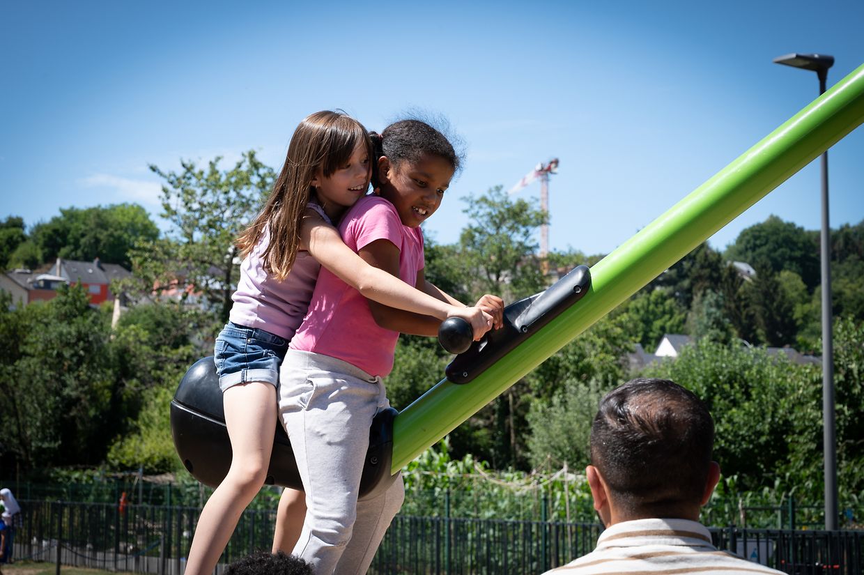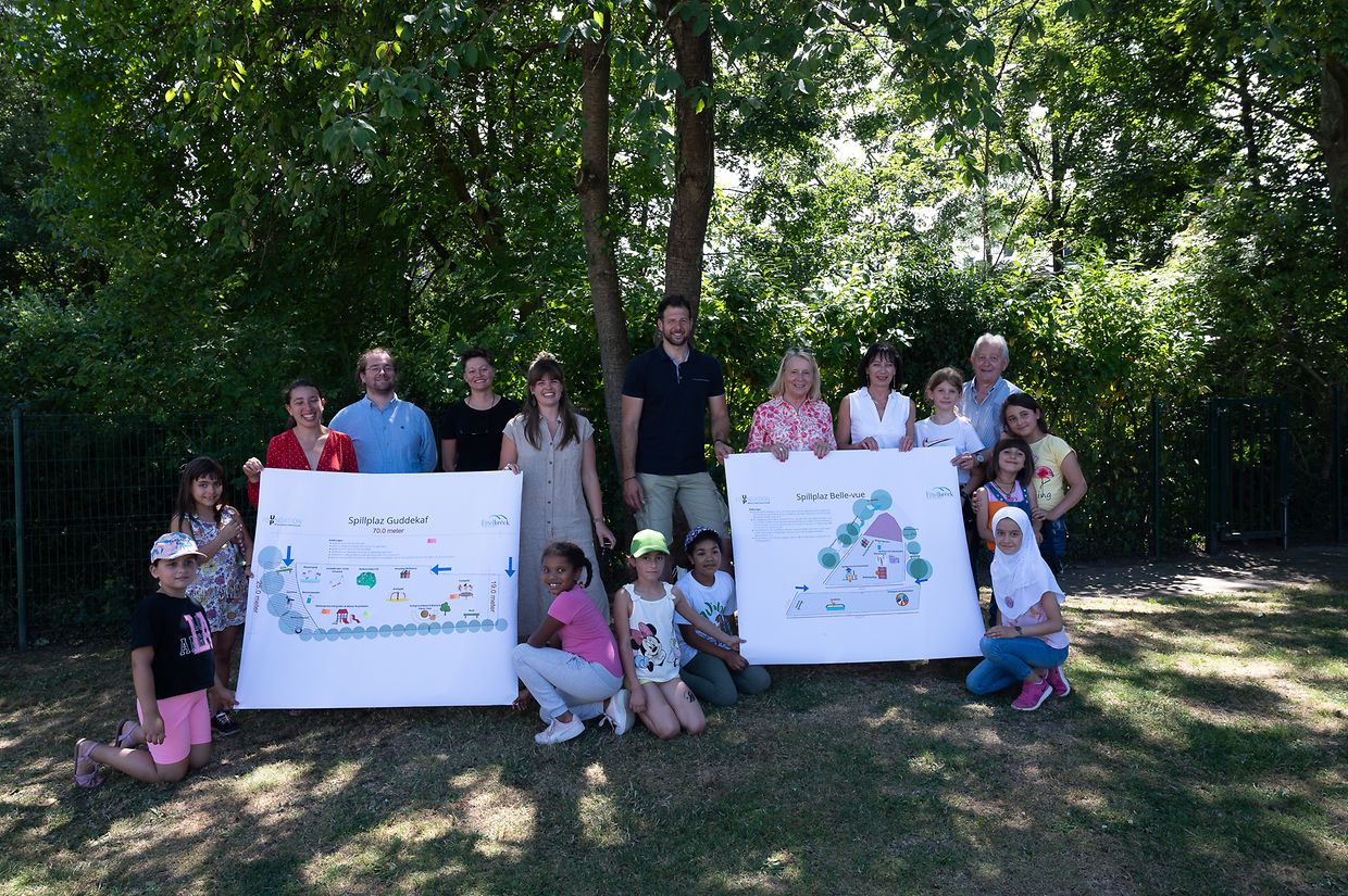 Rund 80 Kinder und Mitglieder des Ettelbrücker Gemeinderates und der Up-Foundation haben sich am 13. Juli auf dem Spielplatz in der Avenue Salentiny versammelt, um den Startschuss zur Umgestaltung der Ettelbrücker Spielplätze zu geben.