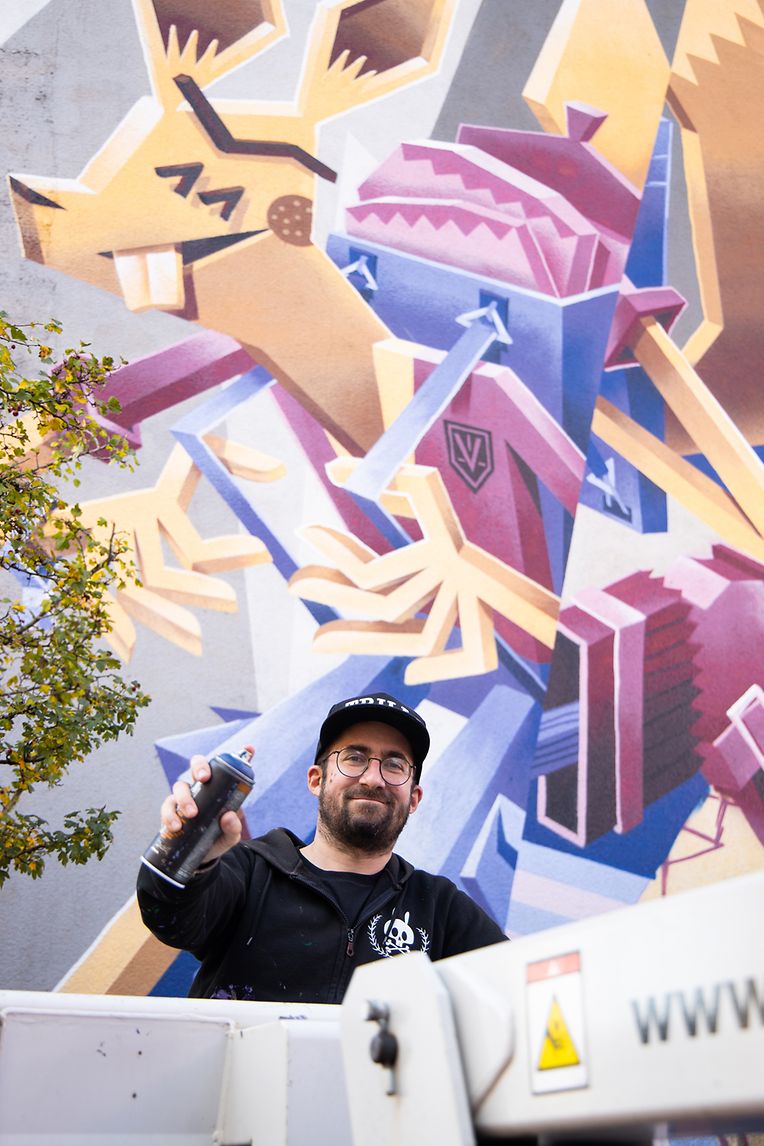 Der Wal wurde von Alex McKell, einer jungen, talentierten Künstlerin realisiert. Vom Parkplatz vor dem Rathaus fällt der Blick auf das Graffiti vom Luxemburger Künstler Spike. Nur wenige Meter entfernt, auf dem Kirchplatz, kann man das farbenfrohe Graffiti von Dourone bewundern.