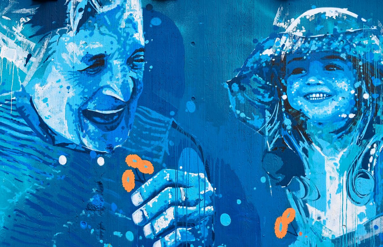 Weiter geht’s durch die Ettelbrücker Fußgängerzone in Richtung Patton Museum. Hier hat der Artist Alain Welter, bekannt durch Make Kohler Cooler, die Fassade des Museums gestaltet. Durch die rue Dr Klein, einem Wohnviertel der Stadt führt der Weg weiter zum Ettelbrücker Krankenhaus. Schon von weit erkennt man den unverwechselbaren Stil von Raphael Gindt: Porträts und strahlende Farben.