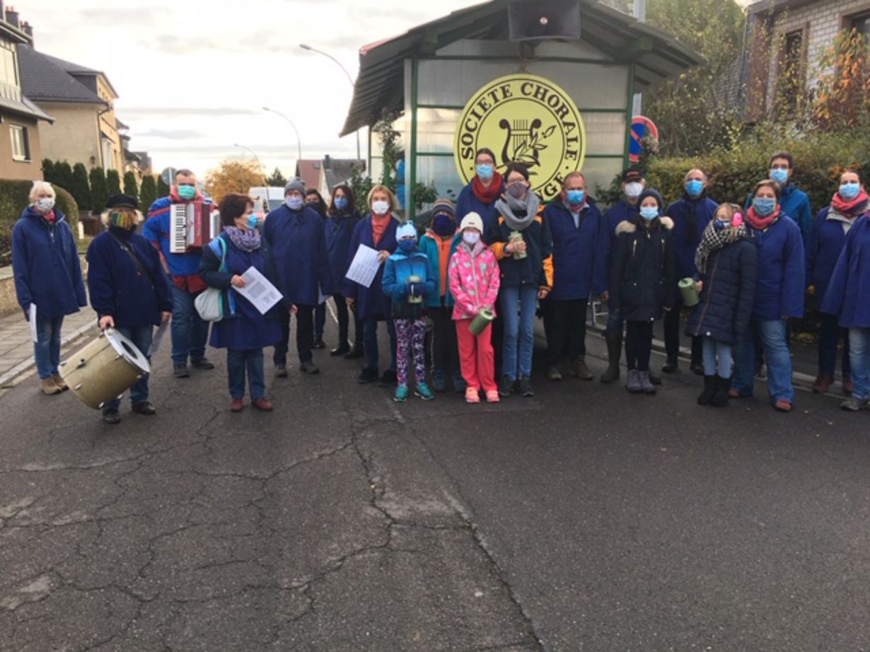 Anescht wéi déi Joeren virdrun konnte mir de 24. Oktober net stonnelaang um Won sangen, mee hunn op verschiddene Plazen mat dem néidegen Ofstand e klenge Kiermesconcert gesongen.
