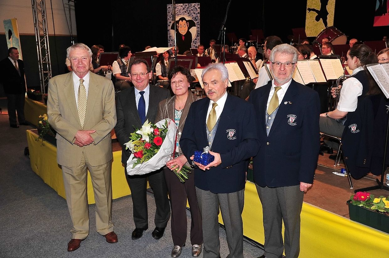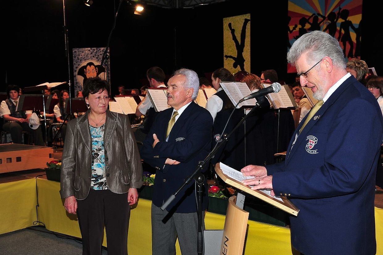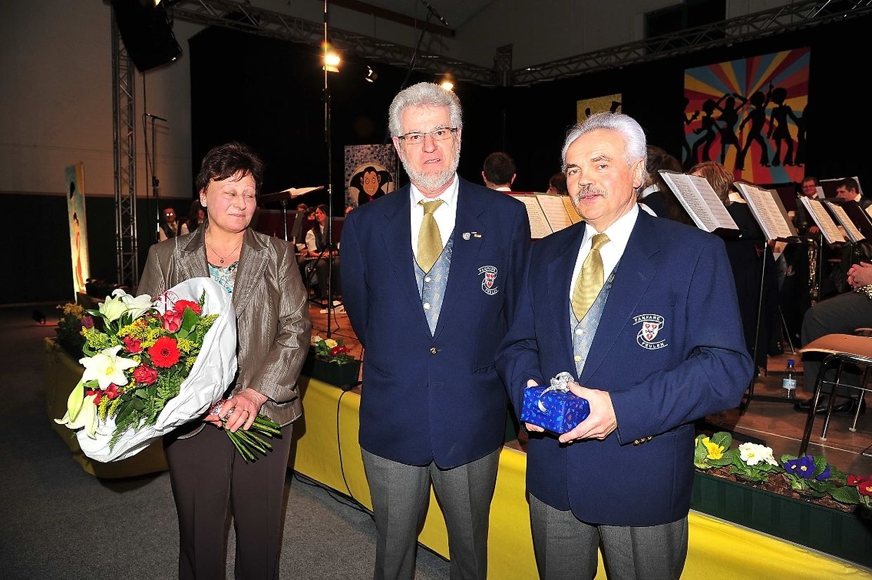 Als Dank an Unerkennung konnt de Jang Berns eng gëllen Auer entgéint huelen. Seng Fra Jeanny ass mat schéine Blummen iwerrascht gin. Kuckt Iech di vill Fotoen un déi ech fir Iech op desem gelongenen Galaowend zu Feelen geschoss hun.
