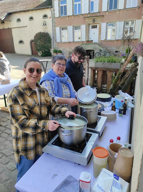 Sou goufe wärend den Ëffnungszäite vum Buttek Mosaïk am Mäerz an am Abrëll Kuch verkaf fir d’Ukrain. De 26. Mäerz sinn et Paangecher an Zoppen am Haff vum Buttek ze kafe gi mam Zil Sue fir d’Ukrain ze sammelen. Schliisslech stoung den 09. an 10. Abrëll e grousst Benefiziessen am Centre Culturel zu Fëlschdref um Agenda. Lasagne a Blummentombola waren hei um Programm fir de gudden Zweck.