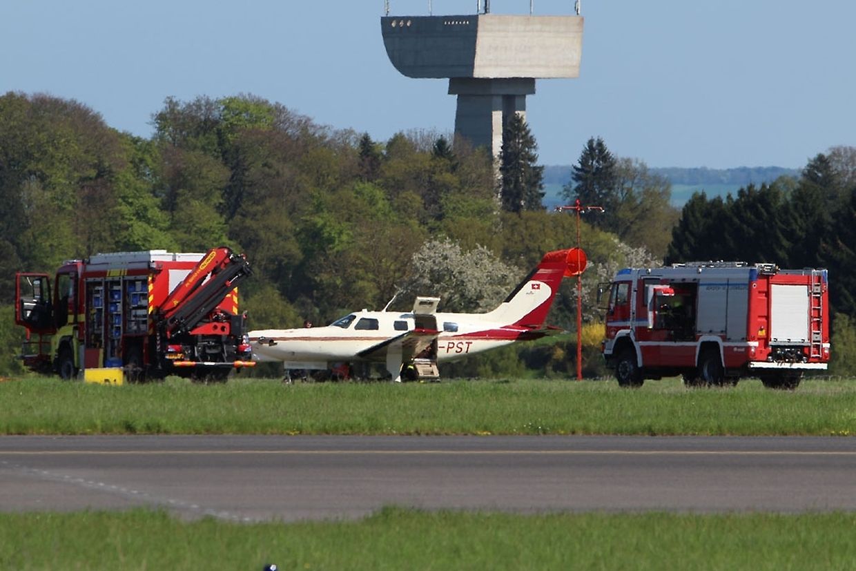 Der Flughafenfeuerwehr war schnell vor Ort, aber die Maschine war fest im Boden neben der Piste geblieben und es dauerte eine Weile bis die Maschine abgeschlept werden konnte.