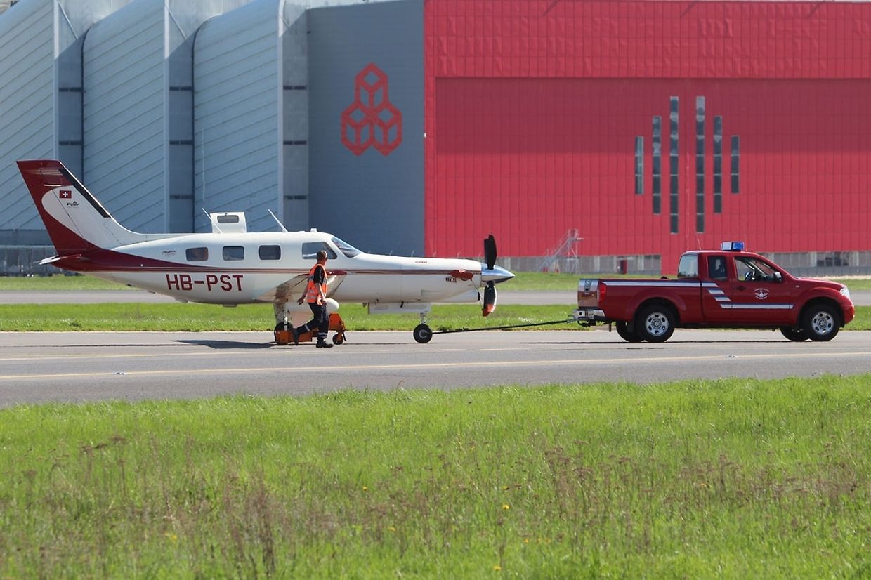 Sonntag gegen 15:30 ist ein schweizerisches Privatflugzeug vom Typ Piper Malibu beim Start von der Piste gerutscht wegen eines platten Reifen.