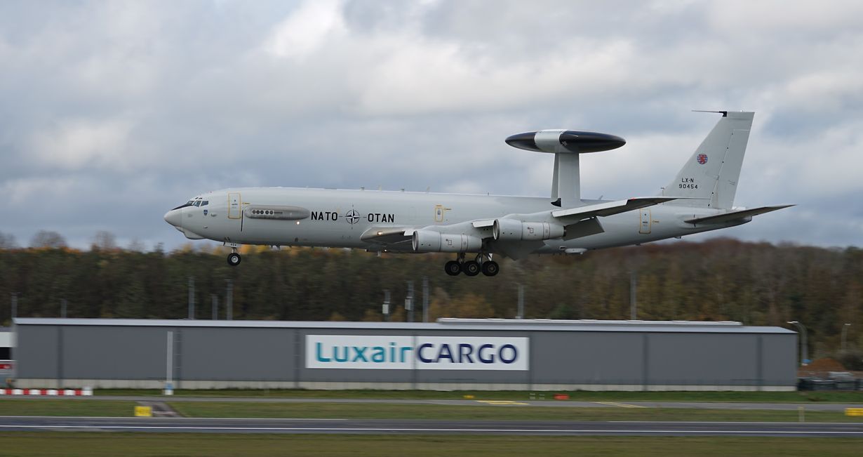 Ee Mëttwoch (8. November 2023) an der Mëttesstonn ass eng vun de 14 AWACS-Maschinnen (Boeing E 3-A) vun der NATO, déi all zu Lëtzebuerg immatrikuléiert sinn, um Findel e puer Mol passéiert. Maschinnen sinn op der Air Base zu Geilenkirchen bei Köln stationnéiert.