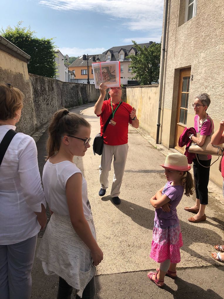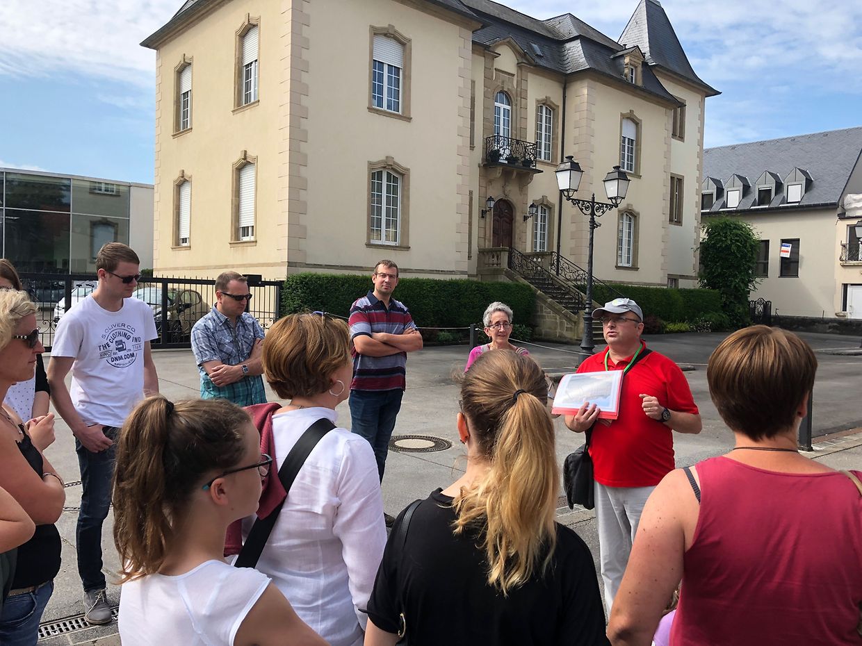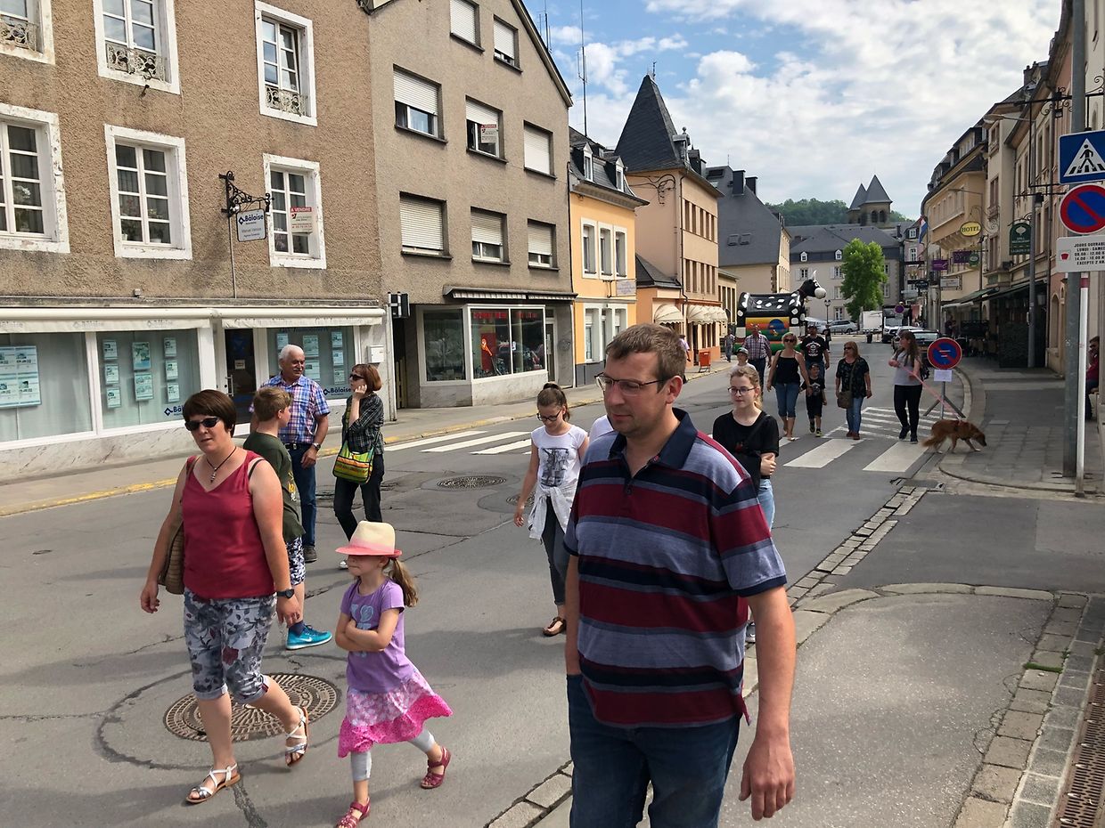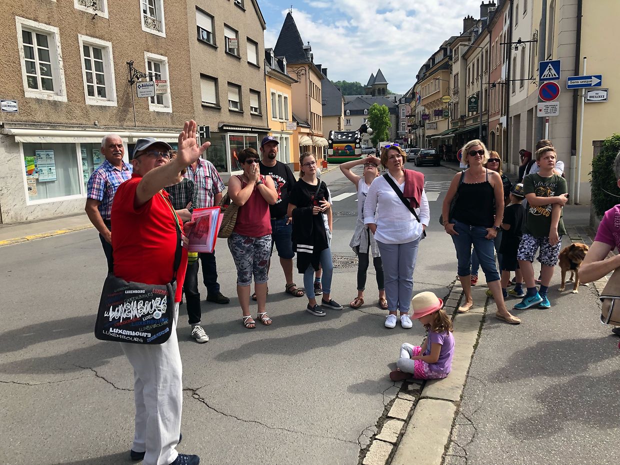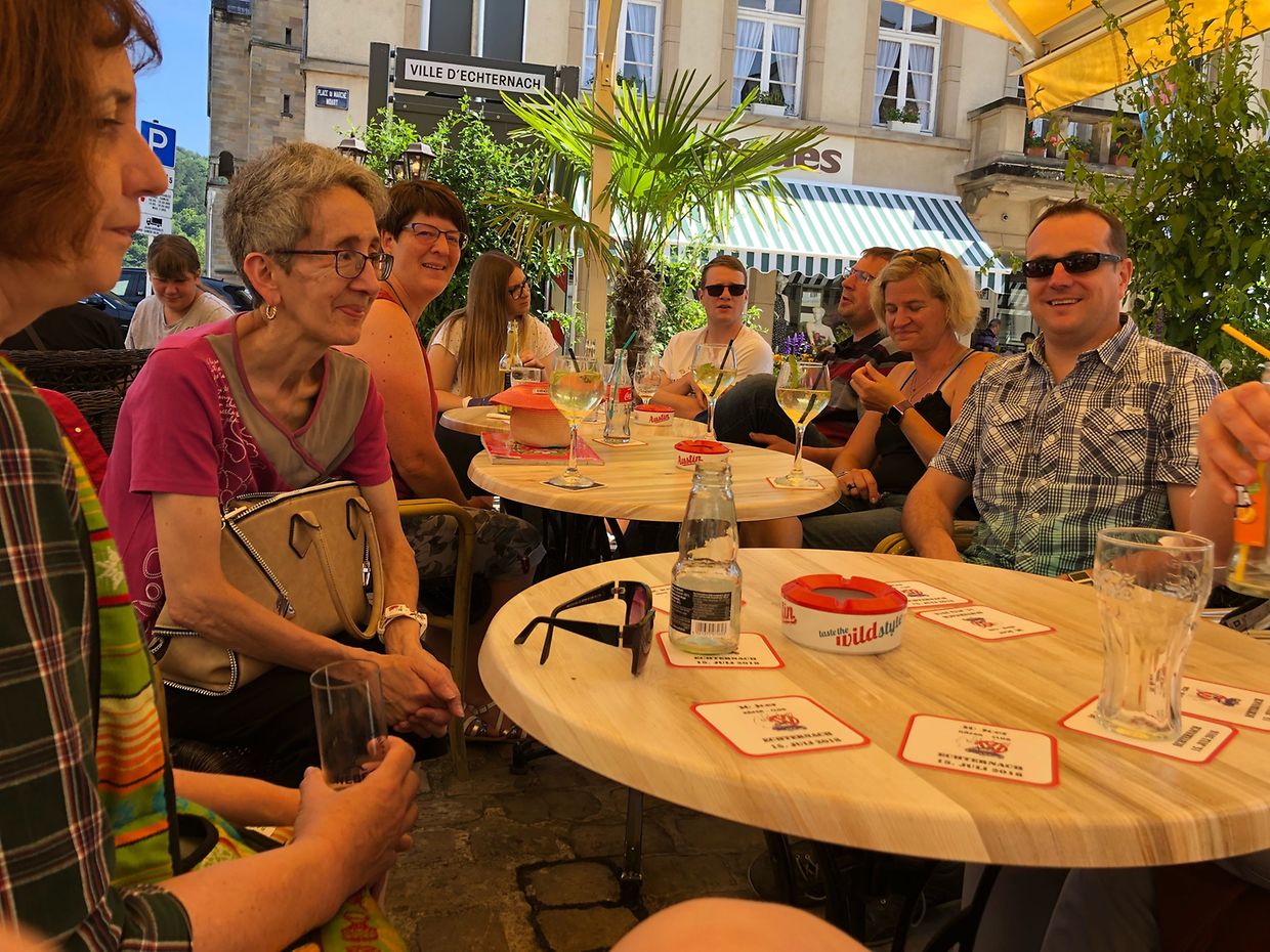 Den Theaterveräin Fëschbech Schous Angelsbierg asbl huet dëst Joër säin traditionellen Trëppeltour op Iechternach gemeet. Hei huet eise Member de Claude Flick, deen a senger Fraizäit och Touristeguide as, d’Iechternach City Promenade mat eis gemeet. Vill Detailer iwwert Stadtmauer an Geschicht vun Iechternach, kruute mer verzielt. Den Ofschloss vum Tour, wor nach e gudde Maufel beim Giorgio.