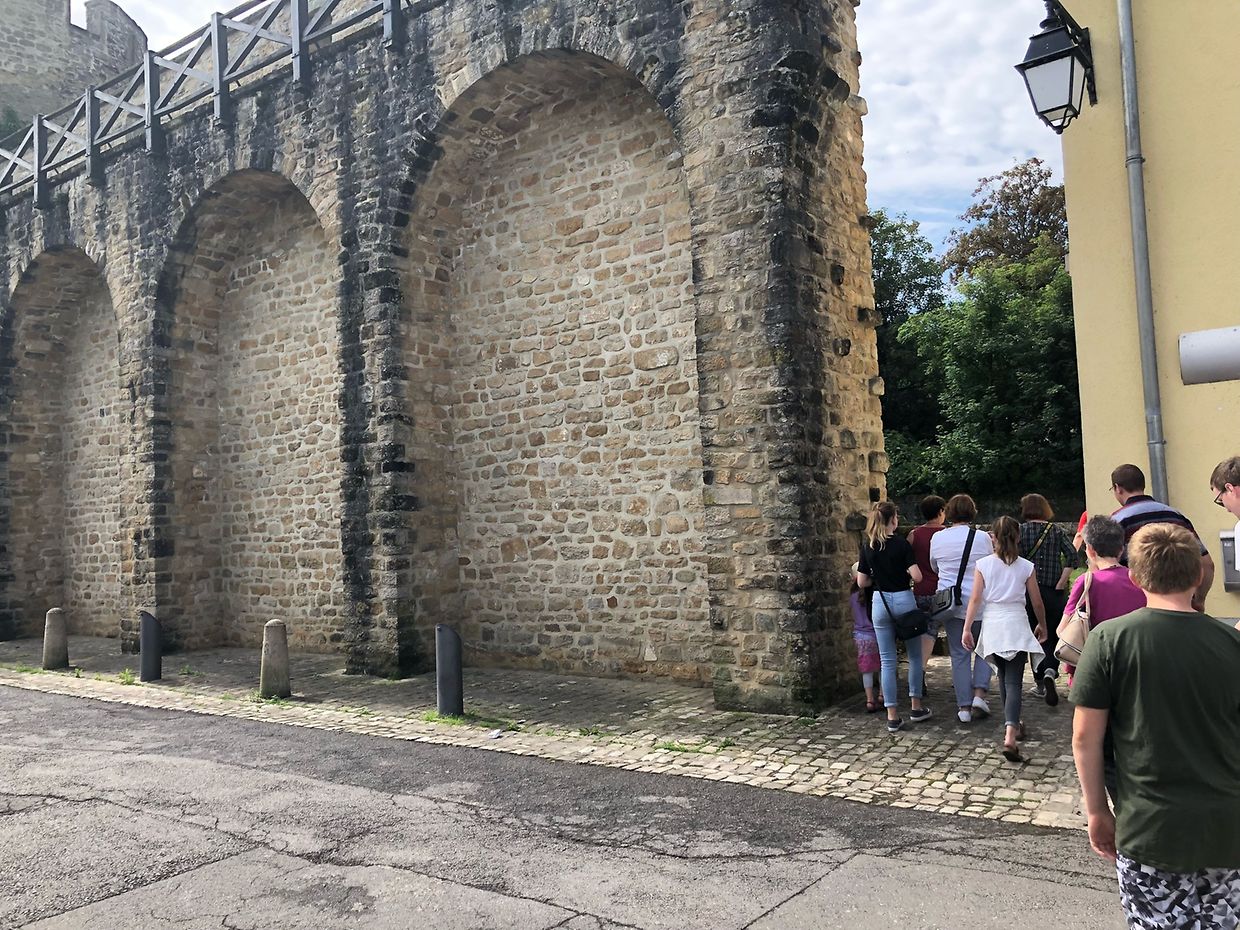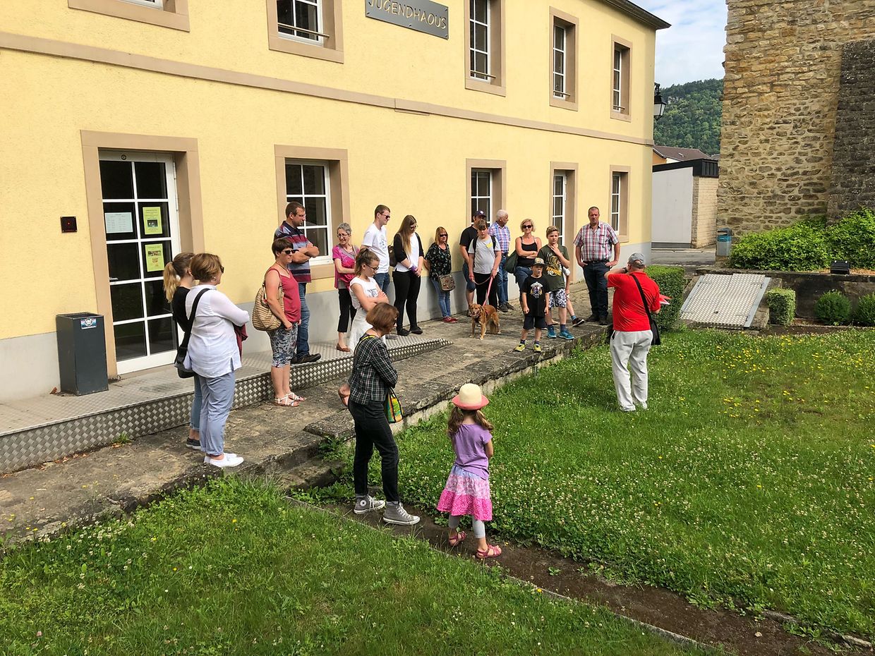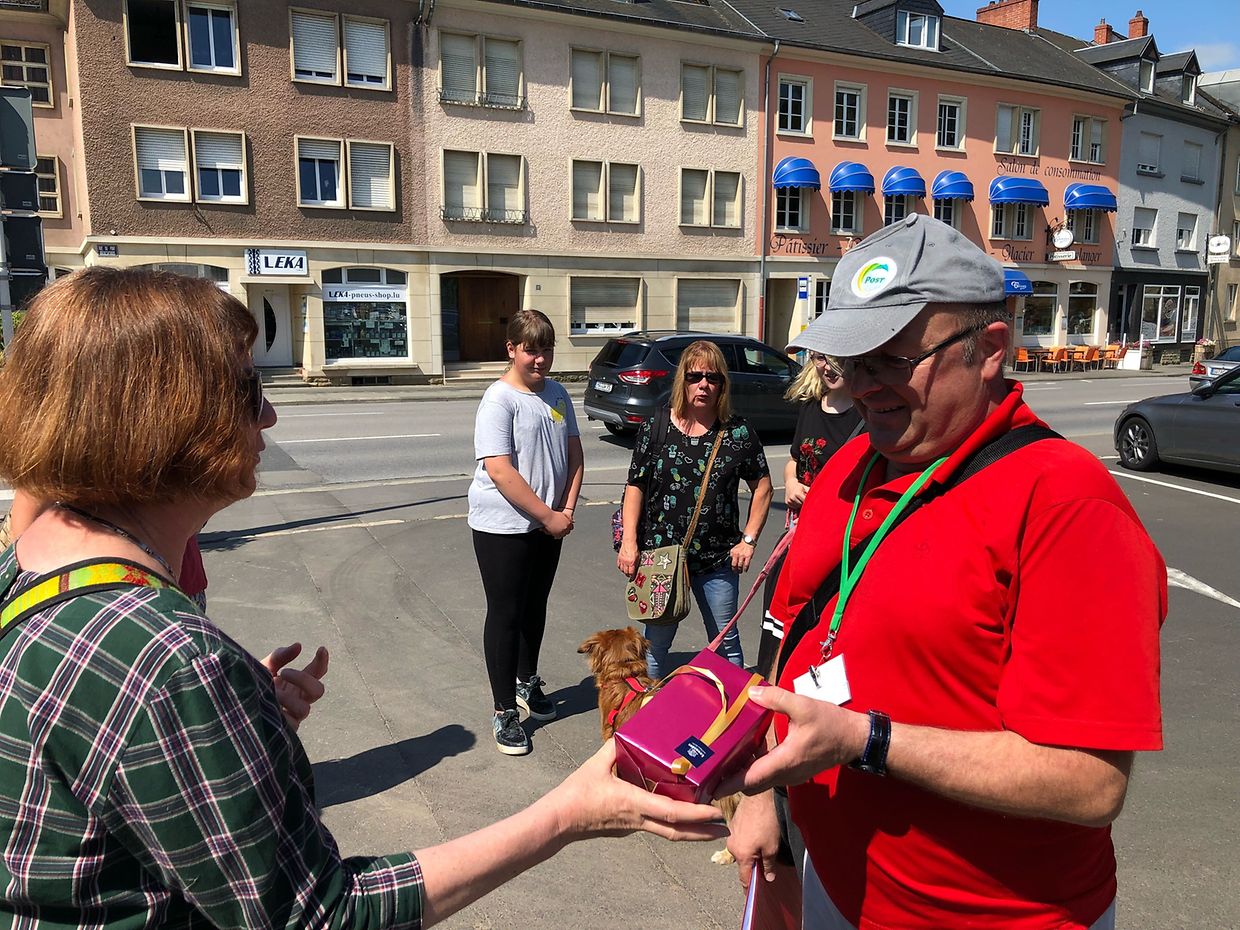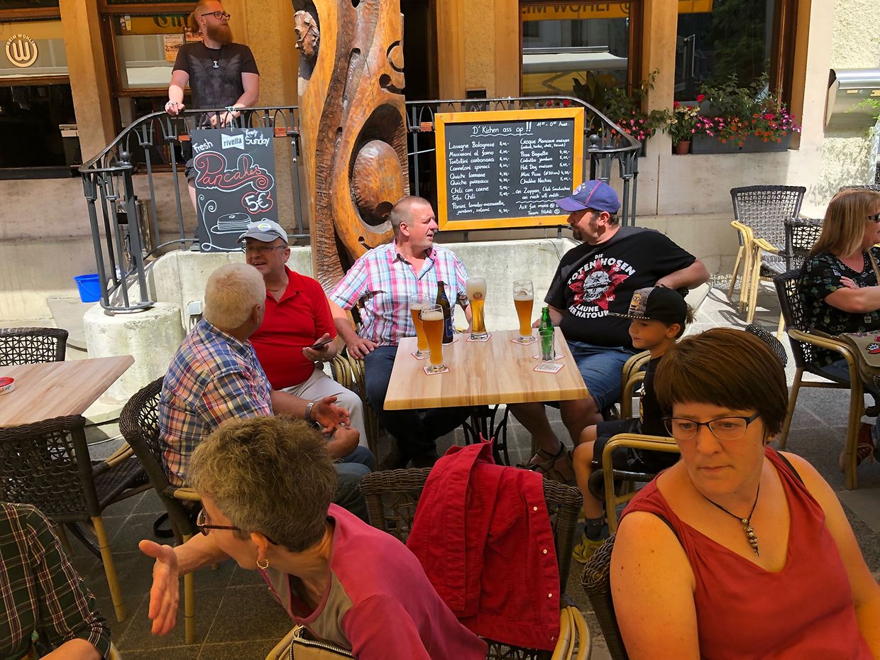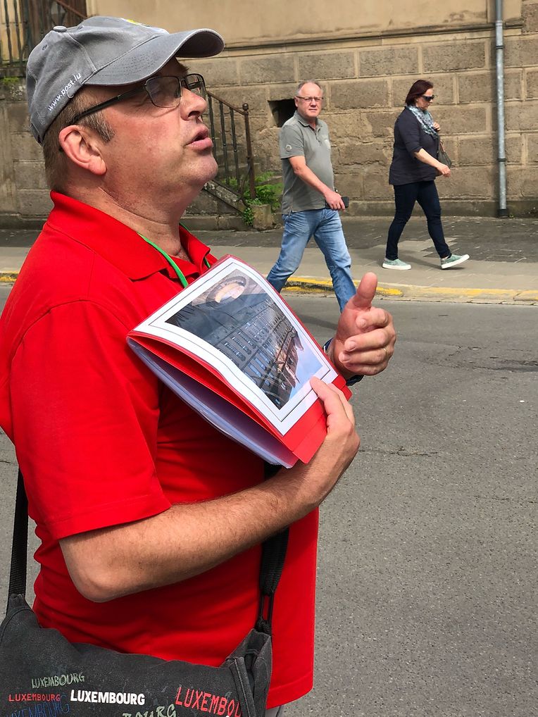 Den Theaterveräin Fëschbech Schous Angelsbierg asbl huet dëst Joër säin traditionellen Trëppeltour op Iechternach gemeet. Hei huet eise Member de Claude Flick, deen a senger Fraizäit och Touristeguide as, d’Iechternach City Promenade mat eis gemeet. Vill Detailer iwwert Stadtmauer an Geschicht vun Iechternach, kruute mer verzielt. Den Ofschloss vum Tour, wor nach e gudde Maufel beim Giorgio.