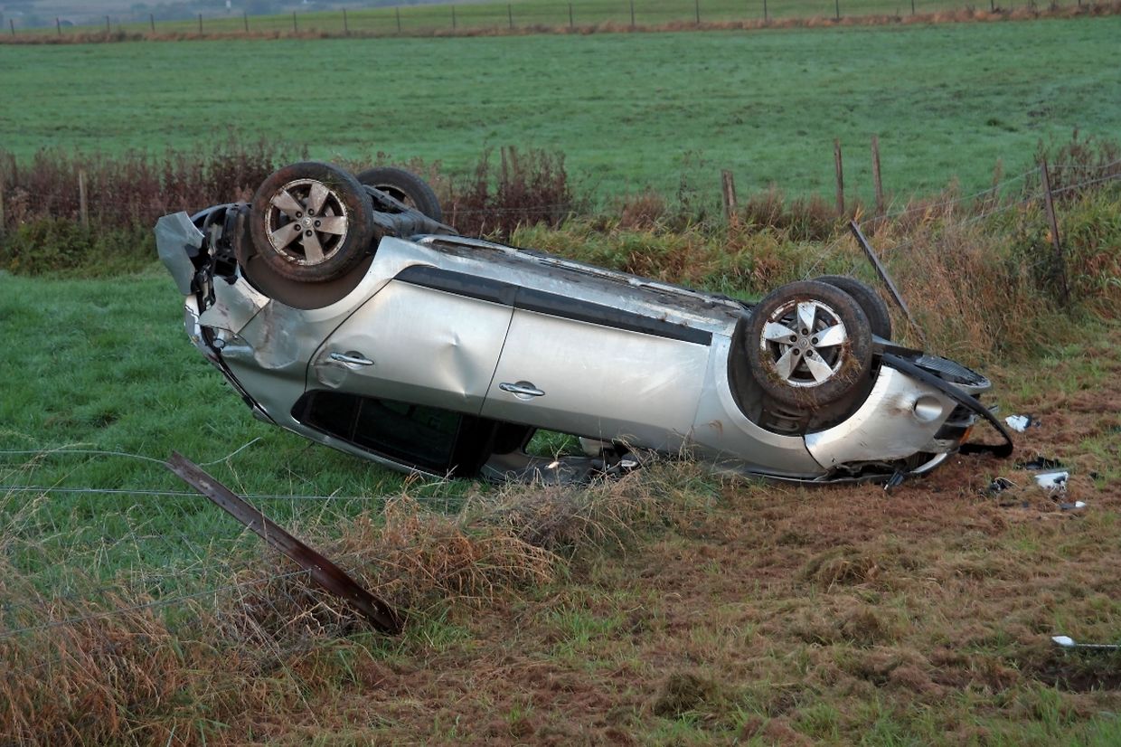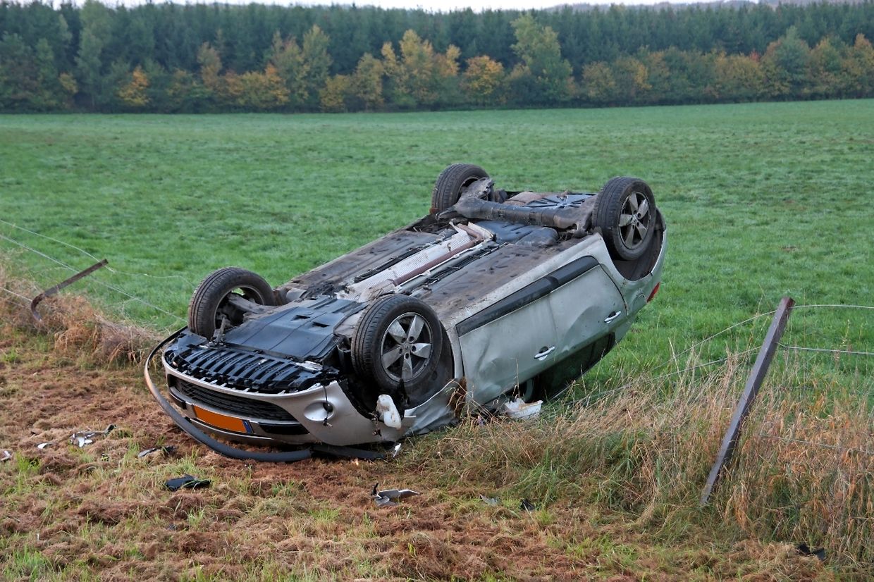 Ein Fahrer, der aus Richtung Dreiborn kam, hatte aus bisher noch unbekannter Ursache am Ende einer leichten Rechtskurve auf der schmierigen Strasse die Kontrolle über seinen Wagen verloren. Der Wagen rutschte daraufhin in den Strassengraben, wo er sich einmal überschlug und auf dem Dach liegend in einer angrenzenden Wiese zum Stillstand kam. Der Fahrer, alleiniger Insasse, wurde bei dem Unfall leicht verletzt und konnte sich selbst aus seiner misslichen Lage befreien. Er wurde zwecks Kontrolle ins Hôpital Kirchberg eingeliefert. Am Wagen entstand erheblicher Materialschaden. Die Strecke Dreiborn-Flaxweiler musste für die Dauer der Rettungs- und Bergungsarbeiten auf eine Fahrbahn reduziert werden.