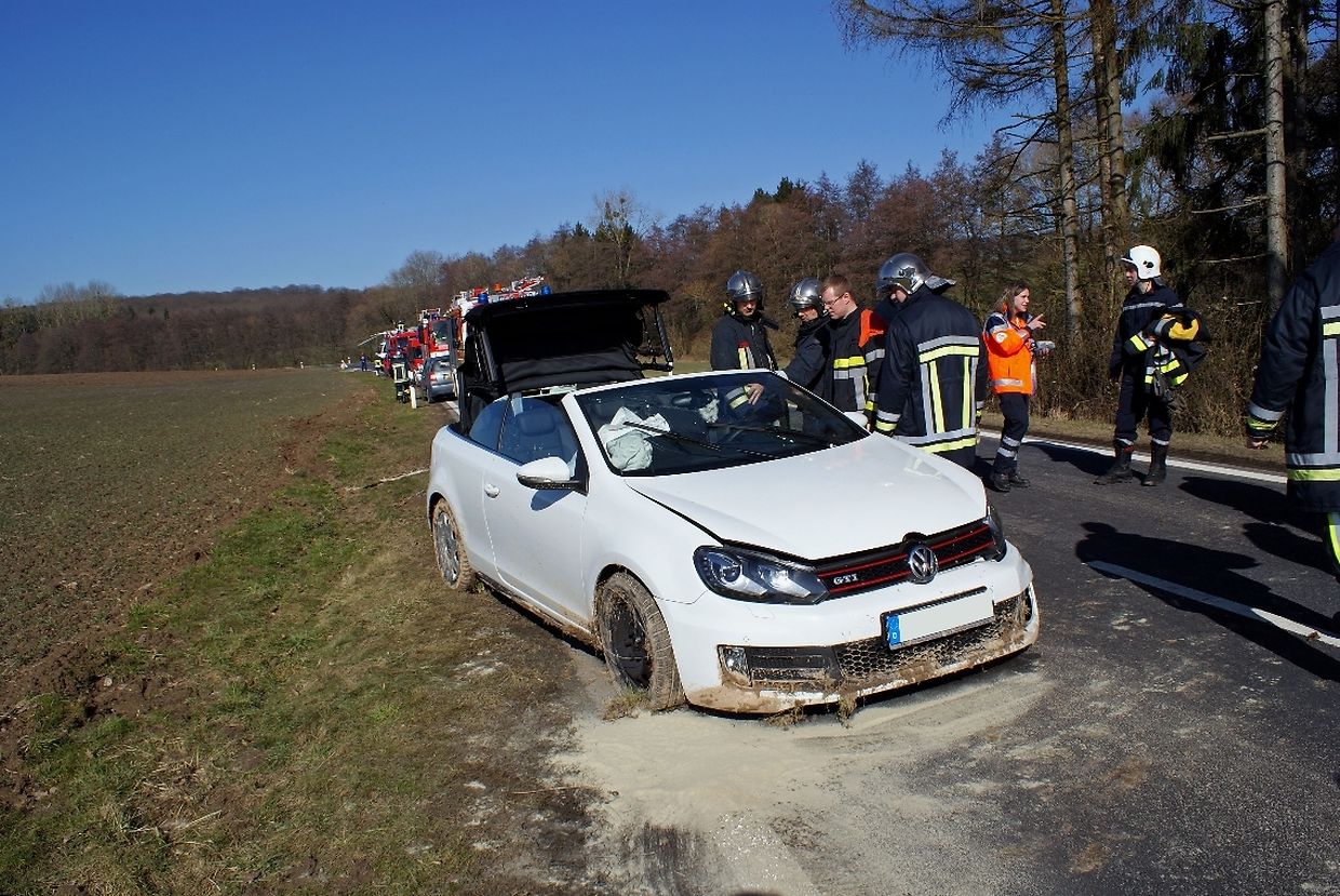 Aus bisher noch unbekannter Ursache verlor eine Fahrerin, die aus Richtung Flaxweiler kam, auf gerader Strecke die Kontrolle über ihren Personenwagen. Der Wagen geriet dabei nach rechts von der Fahrbahn ab, fuhr in der Strassengraben, es einen angrenzenden Acker durchfuhr und schliesslich wieder auf die Strasse geschleudert wurde. Die Fahrerin, alleinige Insassin, erlitt bei dem Unfall so schwere Verletzungen, dass Sie schonend mittels speziellem Rettungsgerät aus ihrem Wagen von den Rettungskräften befreit werden musste. Nach einer Kontrolle durch den Notarzt vor Ort wurde die Fahrerin mit Verdacht auf Rückenverletzungen in hauptstädtische Centre Hospitalier geflogen. Wegen der Landung des Rettungshubschraubers musste die Strecke von Flaxweiler nach Dreiborn eine halbe Stunde lang voll gesperrt werden. Am Wagen entstand erheblicher Materialschaden.
