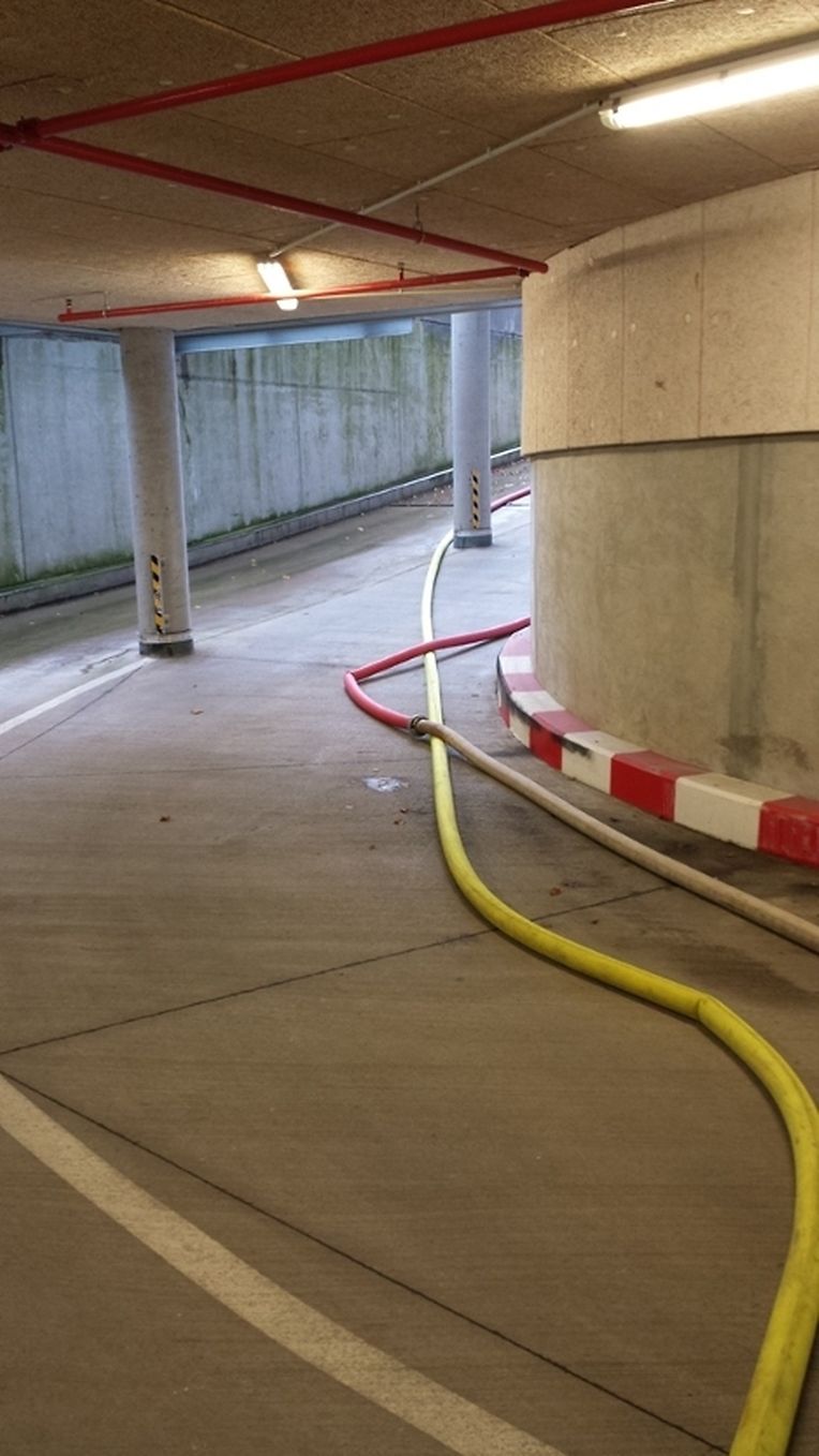 Ein unterirdisches Parkhaus wurde durch den anhaltenden Regen der Nacht überflutet. Das Wasser musste aus 2 Liftschächten und einem 100m3 Wasserrückhaltebecken gepumpt werden da die eingebauten Pumpen des Parkhauses versagten und der steigende Wasserstand drohte einen 20.000 Volt Stromgenerator zu erreichen.