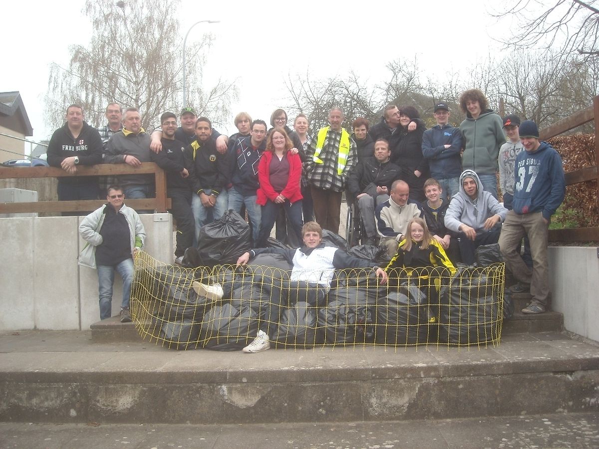 Die Gemeindeverwaltung Rambrouch hatte für Samstag den 31.März zur traditionellen Frühjahrsaktion «Grouss Botz» aufgerufen. Für die Ortschaften Folschette, Hostert und Eschette war um 9 Uhr Zusammenkunft beim Fußballfeld in Folschette und nachdem sich Jung und Alt mit Kaffee, Tee und Croissants gestärkt hatten befreiten rund 30 einsatzkräftige Helfer aus den Vereinen «Jongen a Meedercher Foulscht, Hueschtert & Éischt» und dem «Foulschter Fussball» die Strassen, Wege, Hecken und Bürgersteige von jeglichem achtlos weggeworfenem Unrat. Das Gros des Abfalls ist Verpackungsmaterial sowie Flaschen jeder Art, Plastik und Dosen die sorglos in die Natur geworfen werden. In den nächsten Tagen wird der gesamte Müll von den Gemeindearbeitern eingesammelt und fachgerecht entsorgt werden. Um nicht mit leerem Magen nach Hause gehen zu müssen wurde jedem freiwilligen Helfer als Belohnung eine Stärkung serviert.