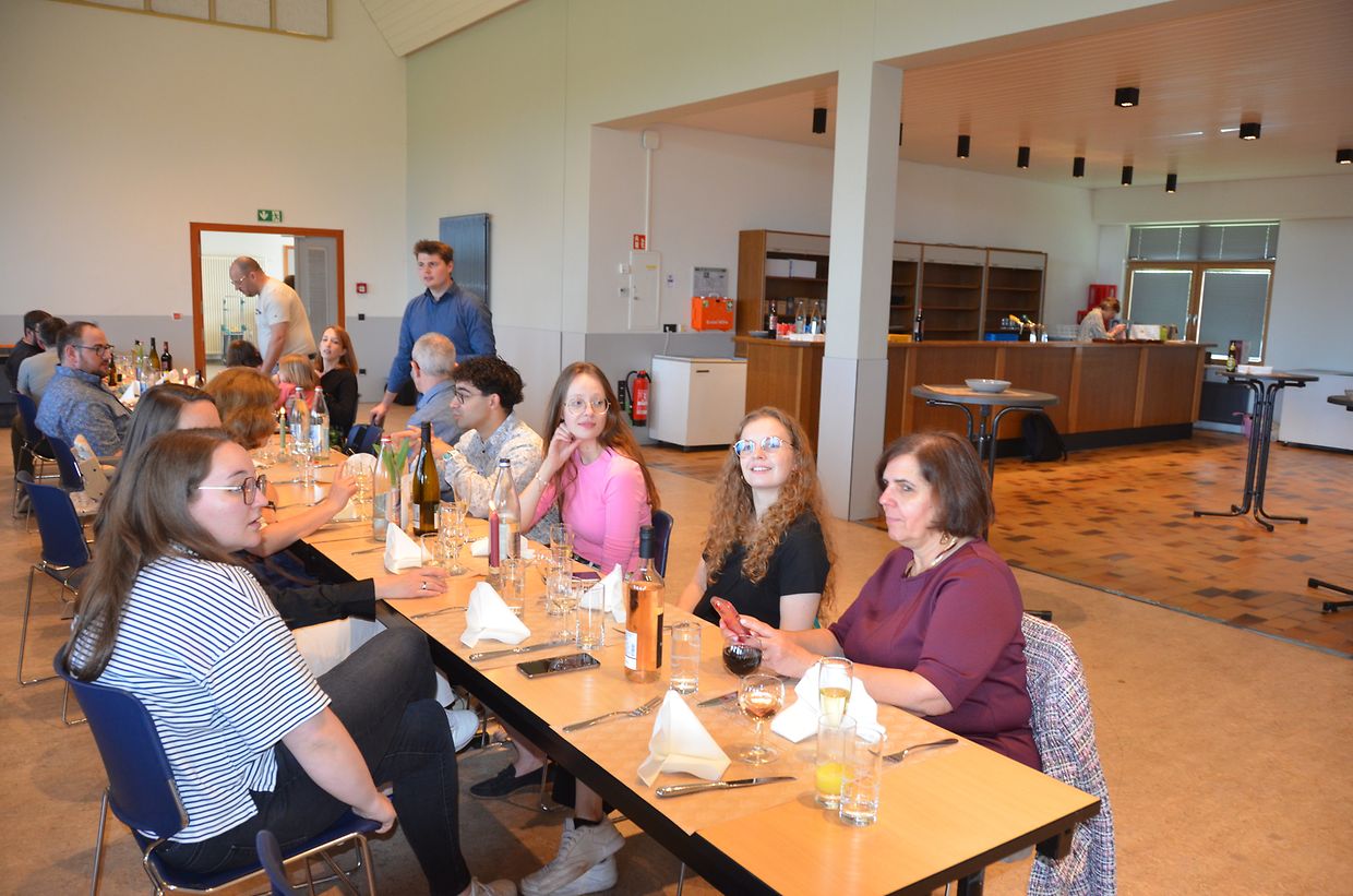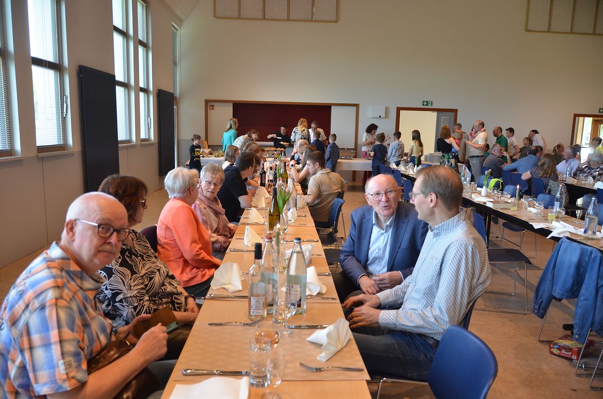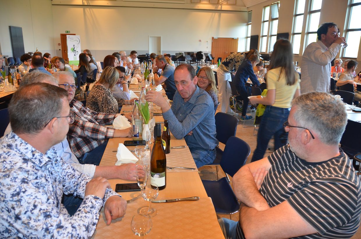Als Ofschloss, huet de President André Wio all Uwesend op Mëttegiessen invitéiert, dat vun engem Musikant deen och Traiteur ass, «Den neie Kachmann» vu Nidderpallen zerwéiert ginn ass.