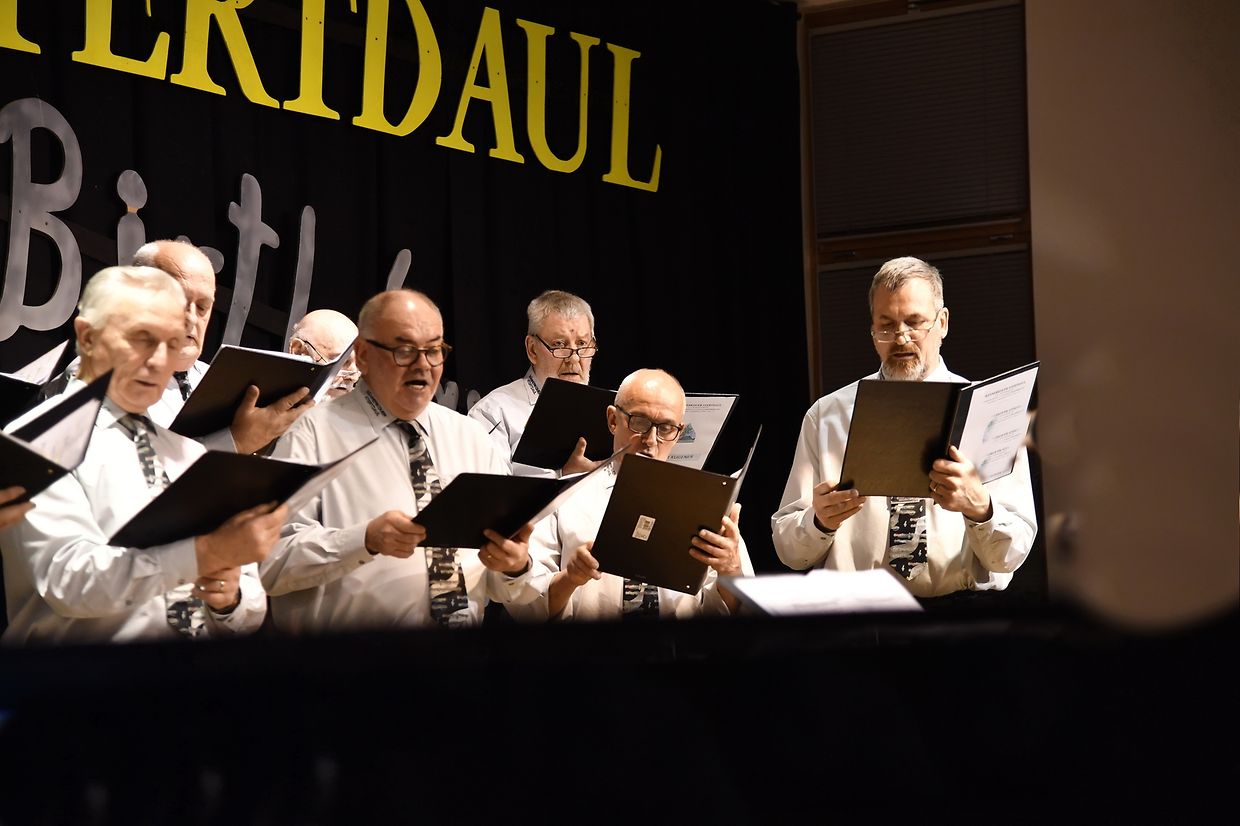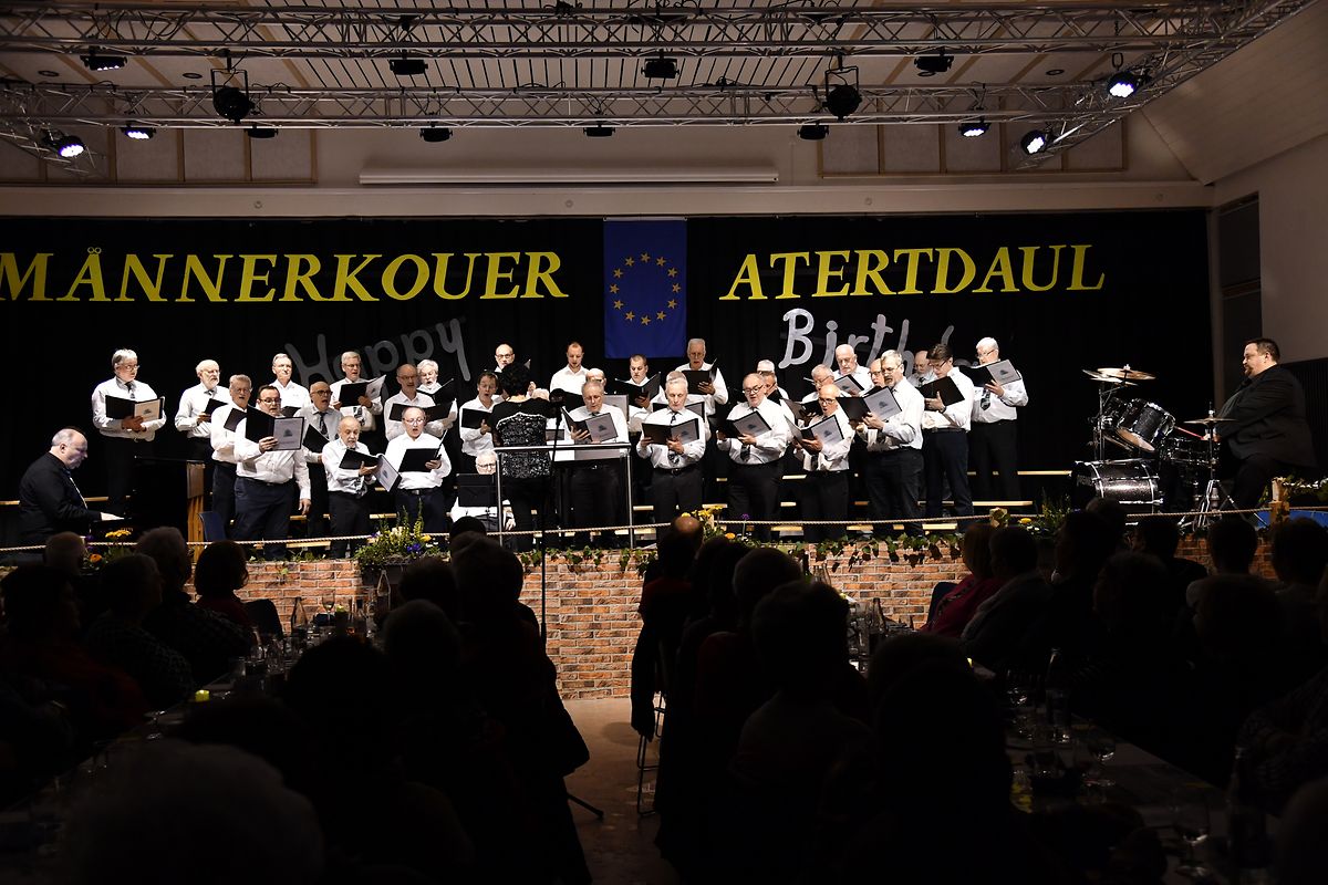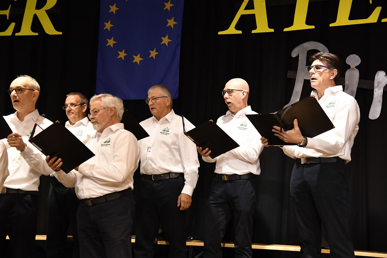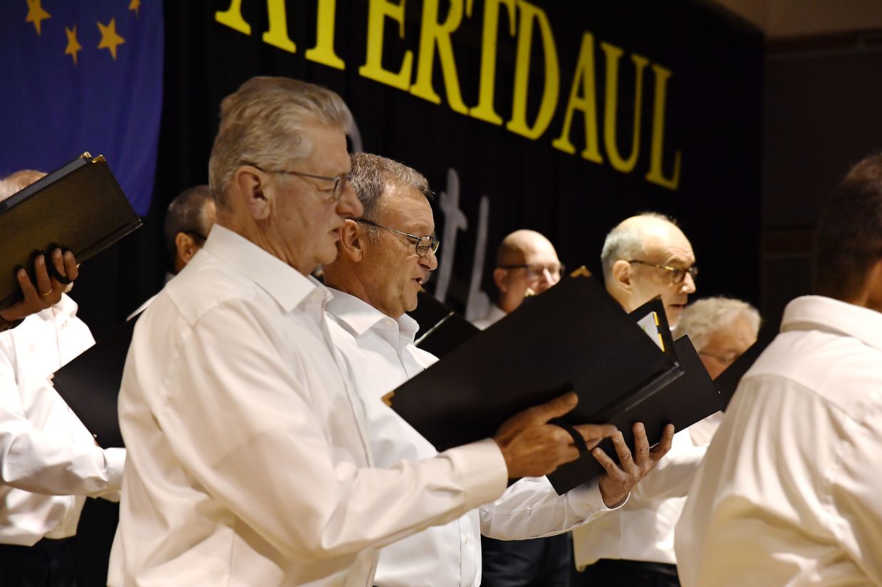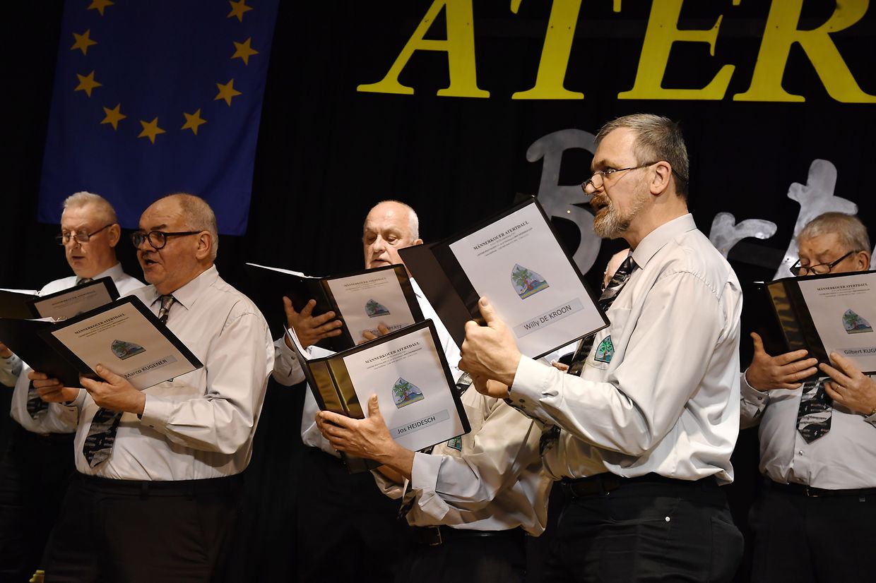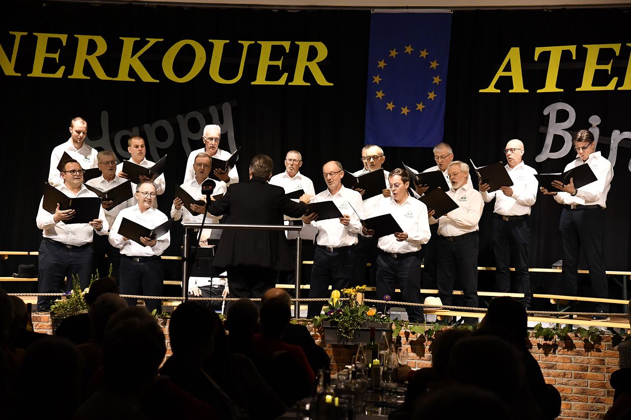 Foulscht: Wann een Gebuertsdag feiert, ass et de Brauch, dat Besuch invitéiert gett, fir och zesummen können ze feieren. Esou hat de Männerkouer Atertdaul am Kader vu sengem Galaconcert mam Thema „Queesch duerch Europa“ am Kulturzenter zu Foulscht, de Männerchouer Béiwen/Atert invitéiert, fir de 25.Gebuertsdag och würdig de begouen. Ronn 540 Gesangliebhaber waren der Aluedung vum Männerkouer aus dem Kanton Réiden nokomm an hun wärend e puer Stonnen, di zwéin Owender flott Melodien zu Ouere kritt. No der Begréissung vum Marie- Anne Kugener- Goethals, war et och un him fir de Programm vum Männerkouer Atertdaul verbonnen mat sengem gewinnten Humor a Witz, virzestellen, déi hirt Können och mat bekannten Melodien ënnert der Leedung vun hirer Dirigentin Adriana Mitù, mam Christian Simon um Piano an dem Benoît Schmeler op der Perkussioun, gespickt mat Soloeinlagen,och bäschtens bewissen hun. Den zweeten Deel vum Owend war dem Männerchouer Béiwen/Atert virbehaal, wou d’Moderatorin Berthe Elsen- Melkert dene villen Zuhörer och e gefällige Programm mat schéine Melodien konnt presentéieren. Begleet sin d’Éieregäscht vu Béiwen/ Atert vum Christiane Parries- Schiltz um Piano. Direktioun vum Chouer hat Marguerite Thomé- Schmit iwerholl. Beim drëtten Deel vum Gala- Concert hun di zwéin Chéier dunn zesummen nach e flotten Gesangprogramm presentéiert, den och no e puer vum Publikum gefuerdeten Zugaben mat vill Applaus e würdigen Ofschloss fond huet. Zum Schluss huet de Claude Mathekowitsch am Numm vun den Gesangsfrënn vu Béiwen/Atert dem Männerkouer Atertdaul ganz haerzlich zu ihrem 25. Gebuertdag gratuléiert an hinnen alleguerten och eng erfollegräich Zukunft gewënscht. Bleiwt ze bemierken dat e puer Sänger souwi och de President Marc Sauber krankheetshalwer leider di zwein Owender nit konnten derbéi sin. Di vill Gäscht hun sech di schmackhaft assiette am Ufank vun den Opféierungen och gut schmaache geloos. (CR) (Foto: Charel Reiser)