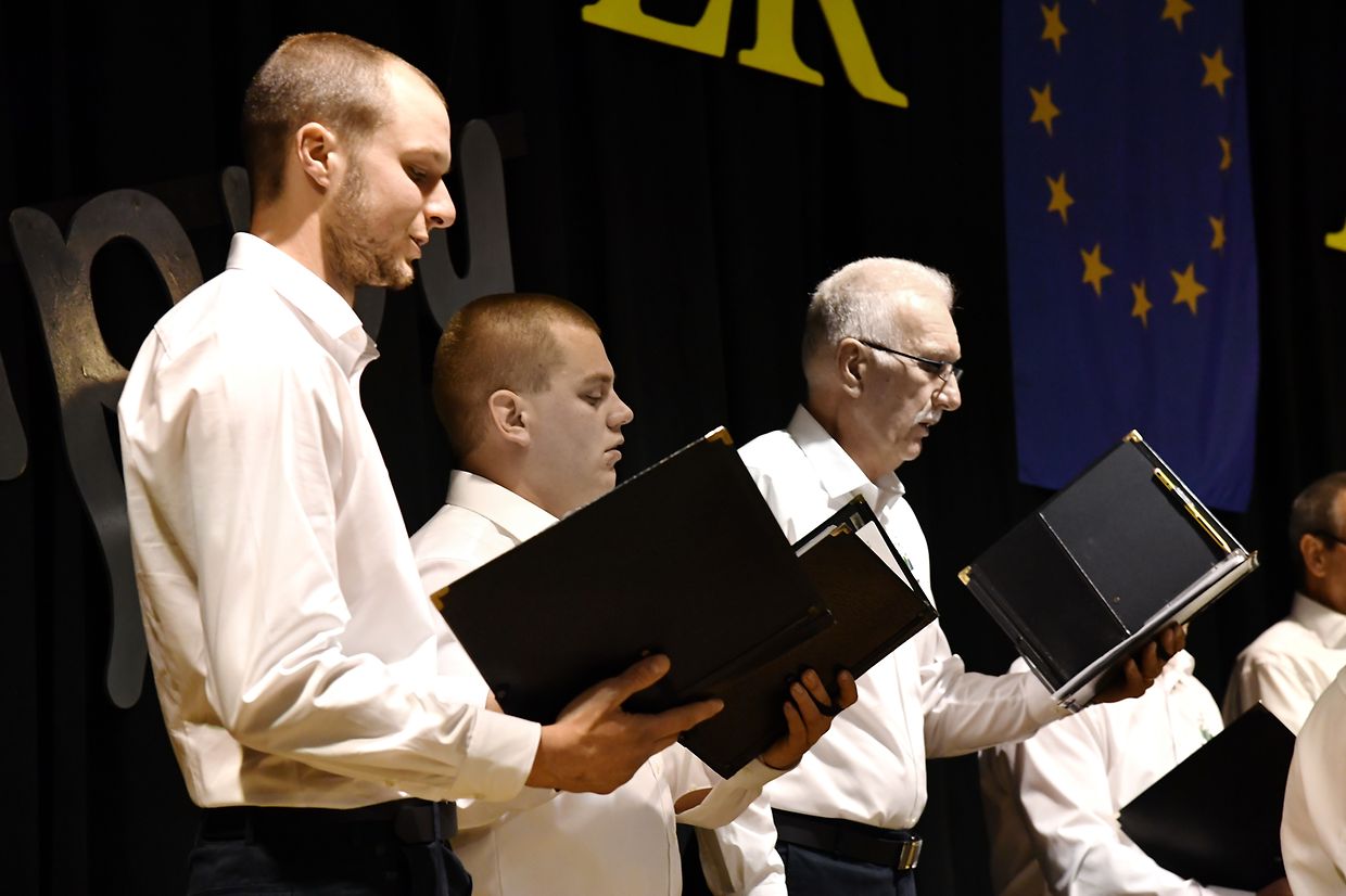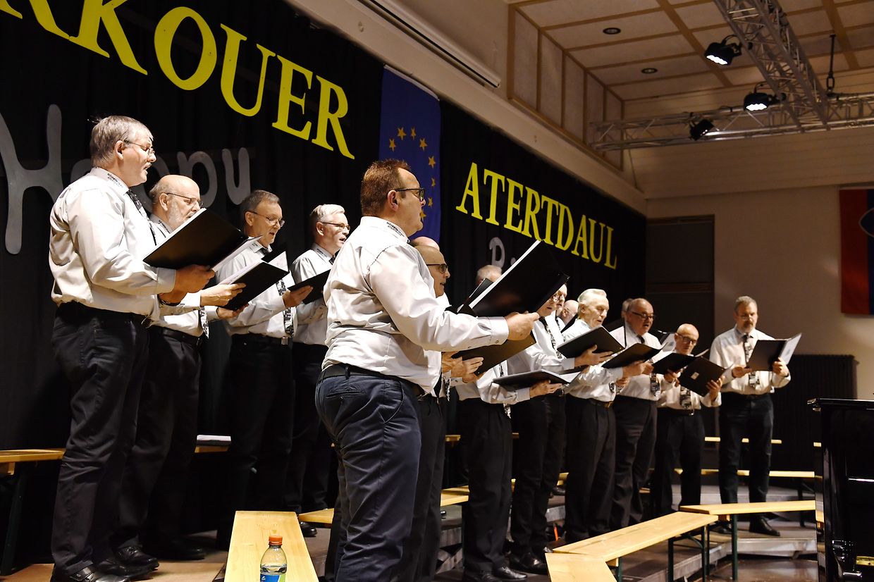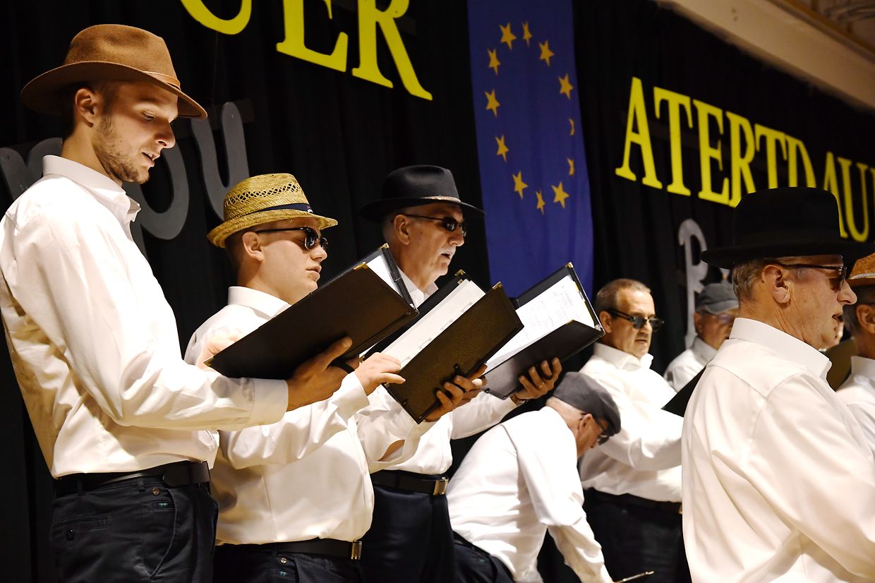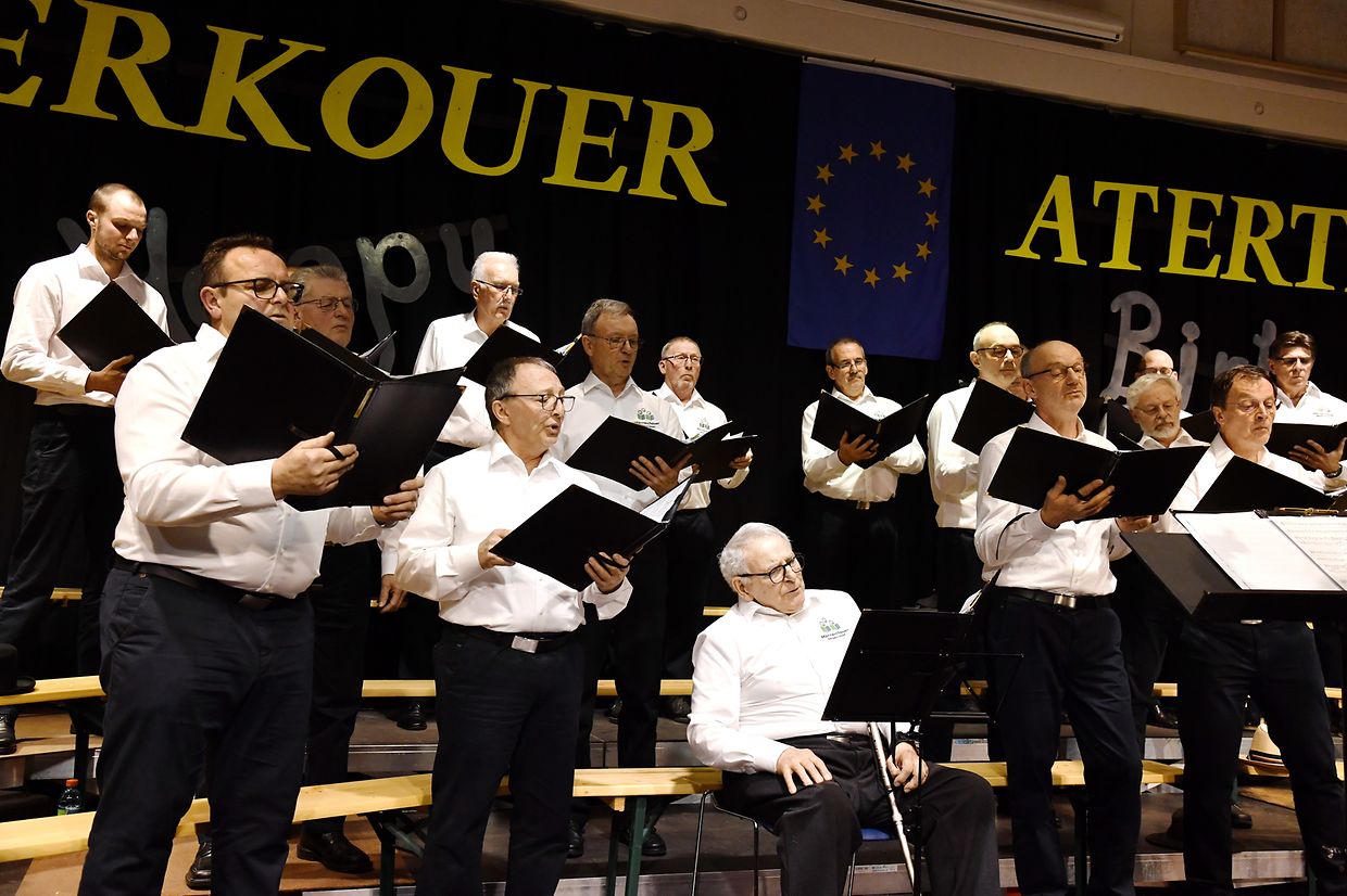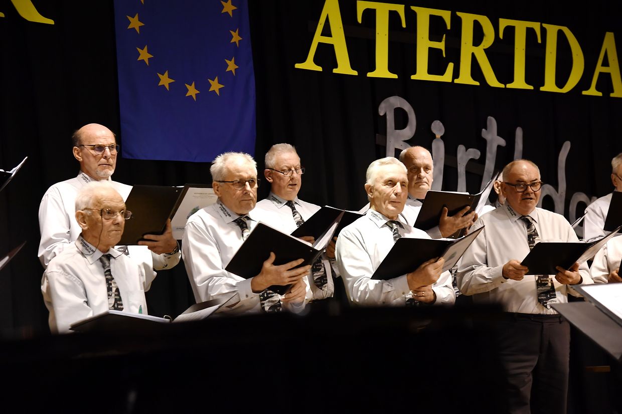 Foulscht: Wann een Gebuertsdag feiert, ass et de Brauch, dat Besuch invitéiert gett, fir och zesummen können ze feieren. Esou hat de Männerkouer Atertdaul am Kader vu sengem Galaconcert mam Thema „Queesch duerch Europa“ am Kulturzenter zu Foulscht, de Männerchouer Béiwen/Atert invitéiert, fir de 25.Gebuertsdag och würdig de begouen. Ronn 540 Gesangliebhaber waren der Aluedung vum Männerkouer aus dem Kanton Réiden nokomm an hun wärend e puer Stonnen, di zwéin Owender flott Melodien zu Ouere kritt. No der Begréissung vum Marie- Anne Kugener- Goethals, war et och un him fir de Programm vum Männerkouer Atertdaul verbonnen mat sengem gewinnten Humor a Witz, virzestellen, déi hirt Können och mat bekannten Melodien ënnert der Leedung vun hirer Dirigentin Adriana Mitù, mam Christian Simon um Piano an dem Benoît Schmeler op der Perkussioun, gespickt mat Soloeinlagen,och bäschtens bewissen hun. Den zweeten Deel vum Owend war dem Männerchouer Béiwen/Atert virbehaal, wou d’Moderatorin Berthe Elsen- Melkert dene villen Zuhörer och e gefällige Programm mat schéine Melodien konnt presentéieren. Begleet sin d’Éieregäscht vu Béiwen/ Atert vum Christiane Parries- Schiltz um Piano. Direktioun vum Chouer hat Marguerite Thomé- Schmit iwerholl. Beim drëtten Deel vum Gala- Concert hun di zwéin Chéier dunn zesummen nach e flotten Gesangprogramm presentéiert, den och no e puer vum Publikum gefuerdeten Zugaben mat vill Applaus e würdigen Ofschloss fond huet. Zum Schluss huet de Claude Mathekowitsch am Numm vun den Gesangsfrënn vu Béiwen/Atert dem Männerkouer Atertdaul ganz haerzlich zu ihrem 25. Gebuertdag gratuléiert an hinnen alleguerten och eng erfollegräich Zukunft gewënscht. Bleiwt ze bemierken dat e puer Sänger souwi och de President Marc Sauber krankheetshalwer leider di zwein Owender nit konnten derbéi sin. Di vill Gäscht hun sech di schmackhaft assiette am Ufank vun den Opféierungen och gut schmaache geloos. (CR) (Foto: Charel Reiser)