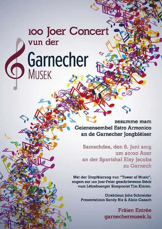 D'Garnecher Musek invitéiert op hire grousse Concert am Kader vun den 100 Joer Feierlechkeeten.