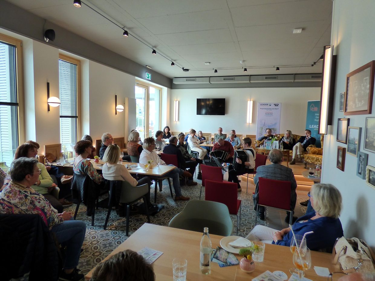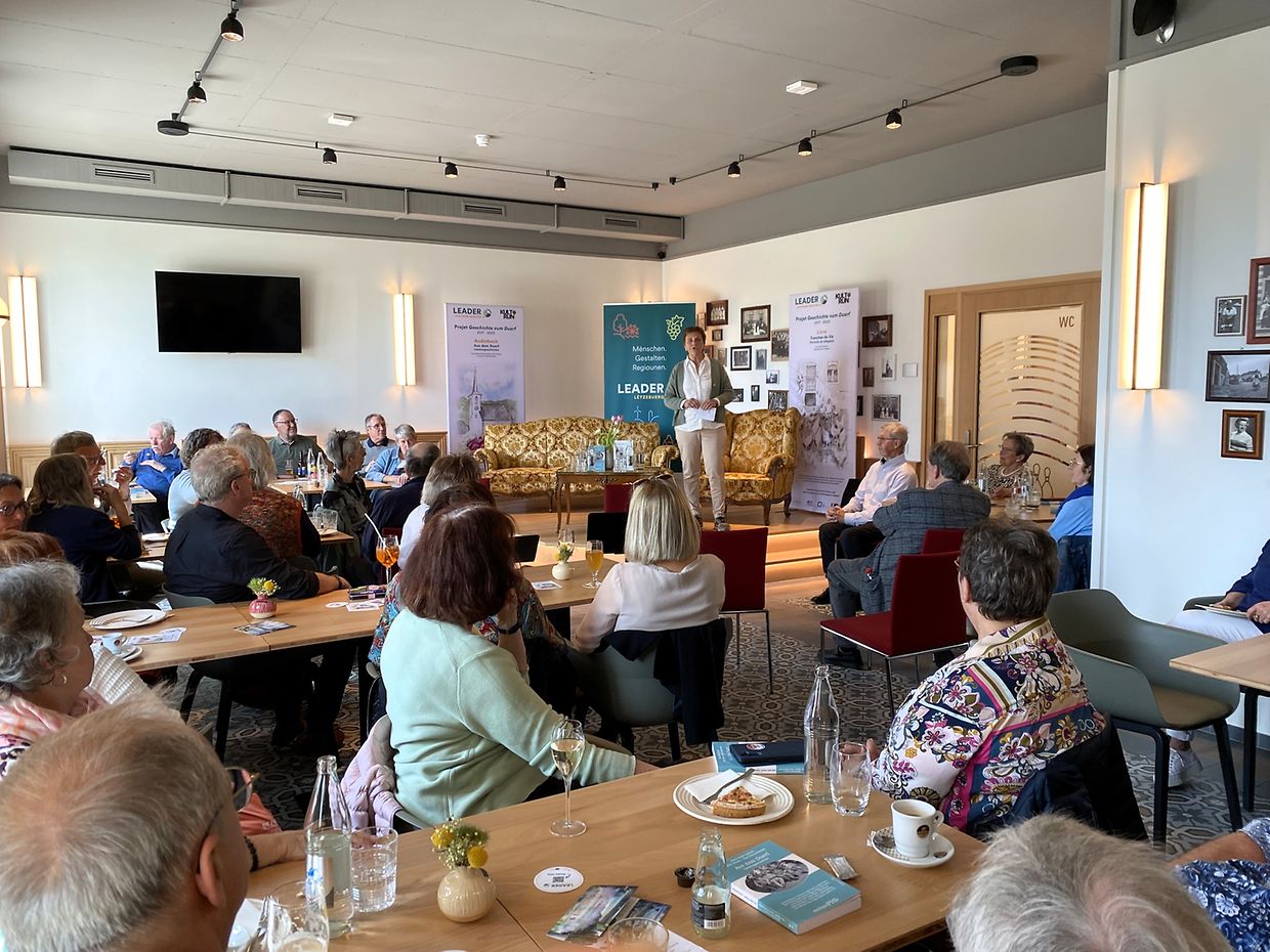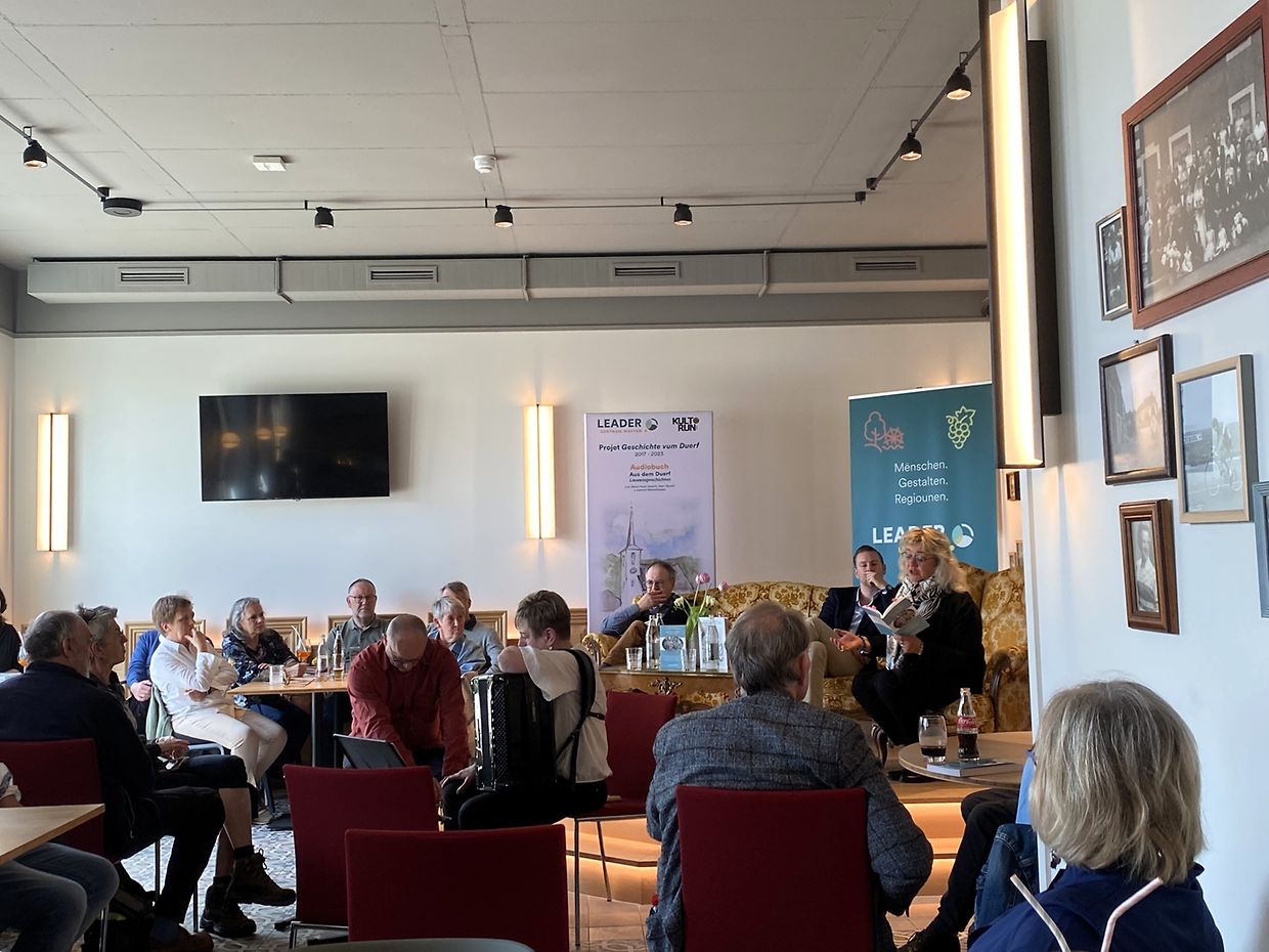 D’Stëmmung war vun Ufank u ganz gemittlech an häerzlech. D’Brasserie war gutt gefëllt mat Awunner, Geschichtsinteresséierten a Frënn vum Projet. Mat vill Häerz an Engagement hunn déi verschidde Schrëftsteller, déi un dësem Wierk matgeschafft hunn, Auszich aus hire Kapitele virgedroen. Si hunn domat net nëmmen e Bild vun der Vergaangenheet vermëttelt, mee och d’Besonneschkeet an d'Emotiounen, déi mat eisen Dierfer verbonne sinn, op lieweg Aart a Weis erëm opliewe gelooss.