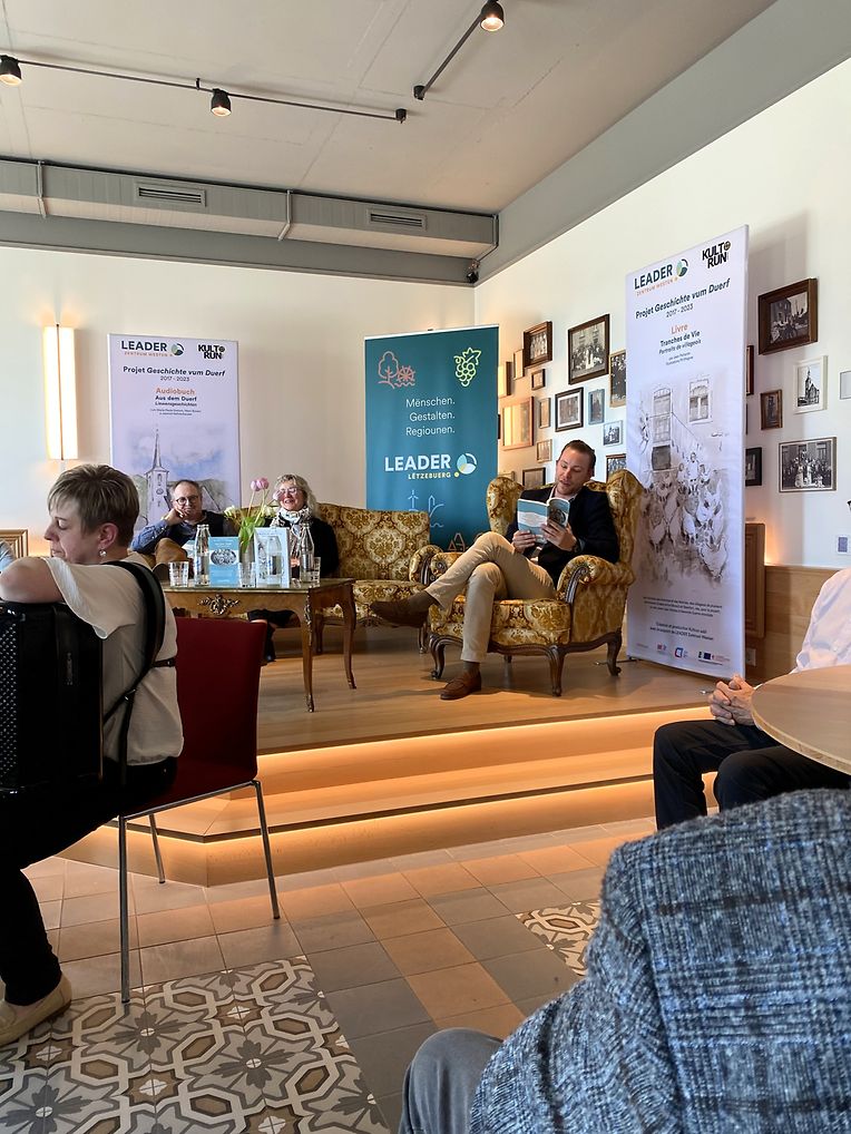Am klenge, familiäre Kader vun der Brasserie Beim Krukert zu Garnech huet e Samsdeg de 26. Abrëll 2025 d'Presentatioun vum neie Buch Aus dem Duerf - Liewensgeschichten stattfonnt. Dëst am Kader vun engem LEADER-Projet aus der leschter Period vun der Kultrun asbl, deen iwwer e puer Joer d'Zil hat, déi räich lokal Geschicht vun der LEADER Regioun Zentrum Westen ze sammelen an erëm an d'Bewosstsi vun de Leit ze bréngen.