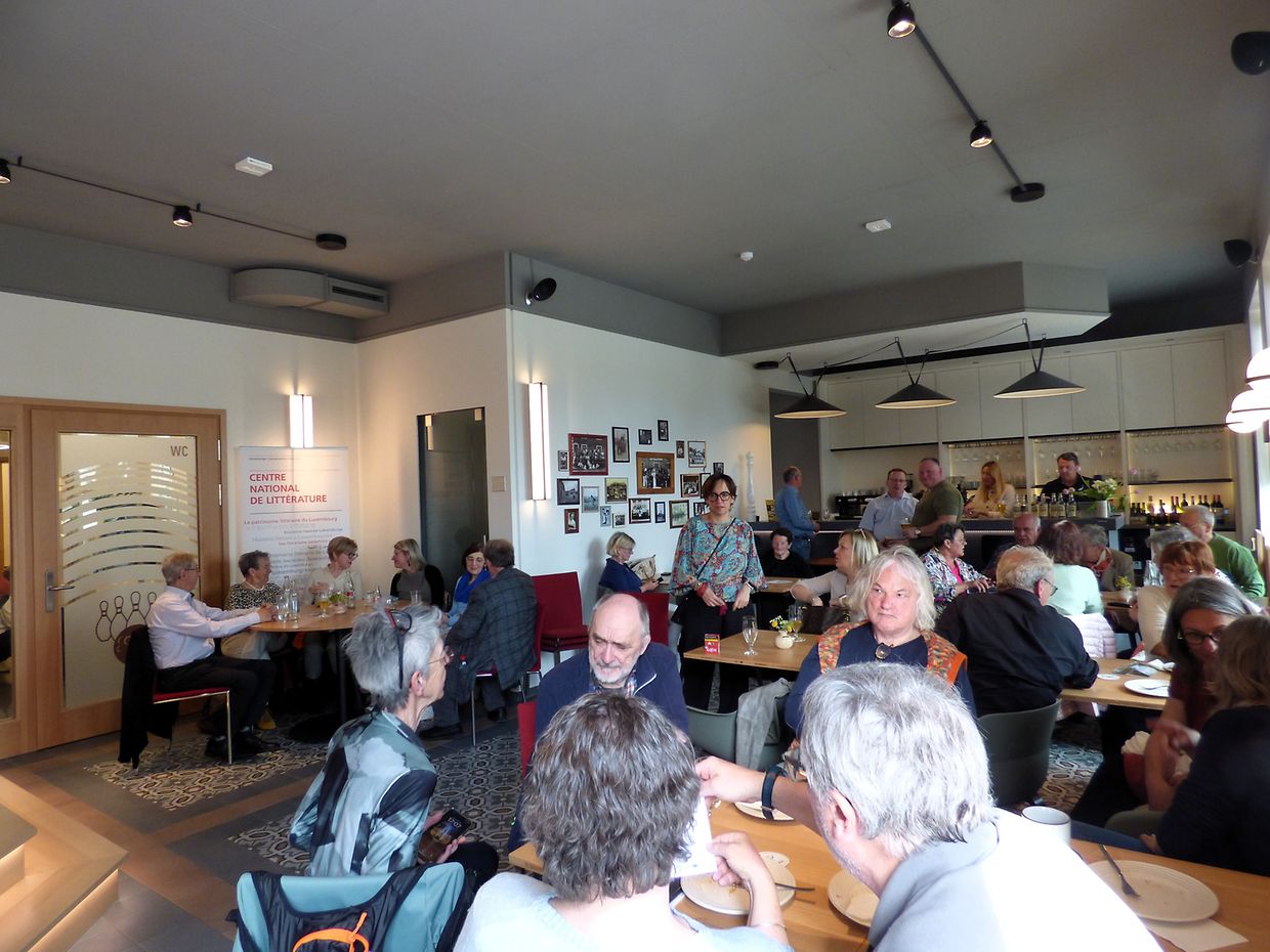 Fir Iessen a Gedrénks war gesuergt an et gouf vill Geleeënheet fir flott Gespréicher tëscht de Schrëftsteller an de Visiteuren. D’Buch kritt een natierlech bei de verschiddenen Librairien am Land ze kafen!