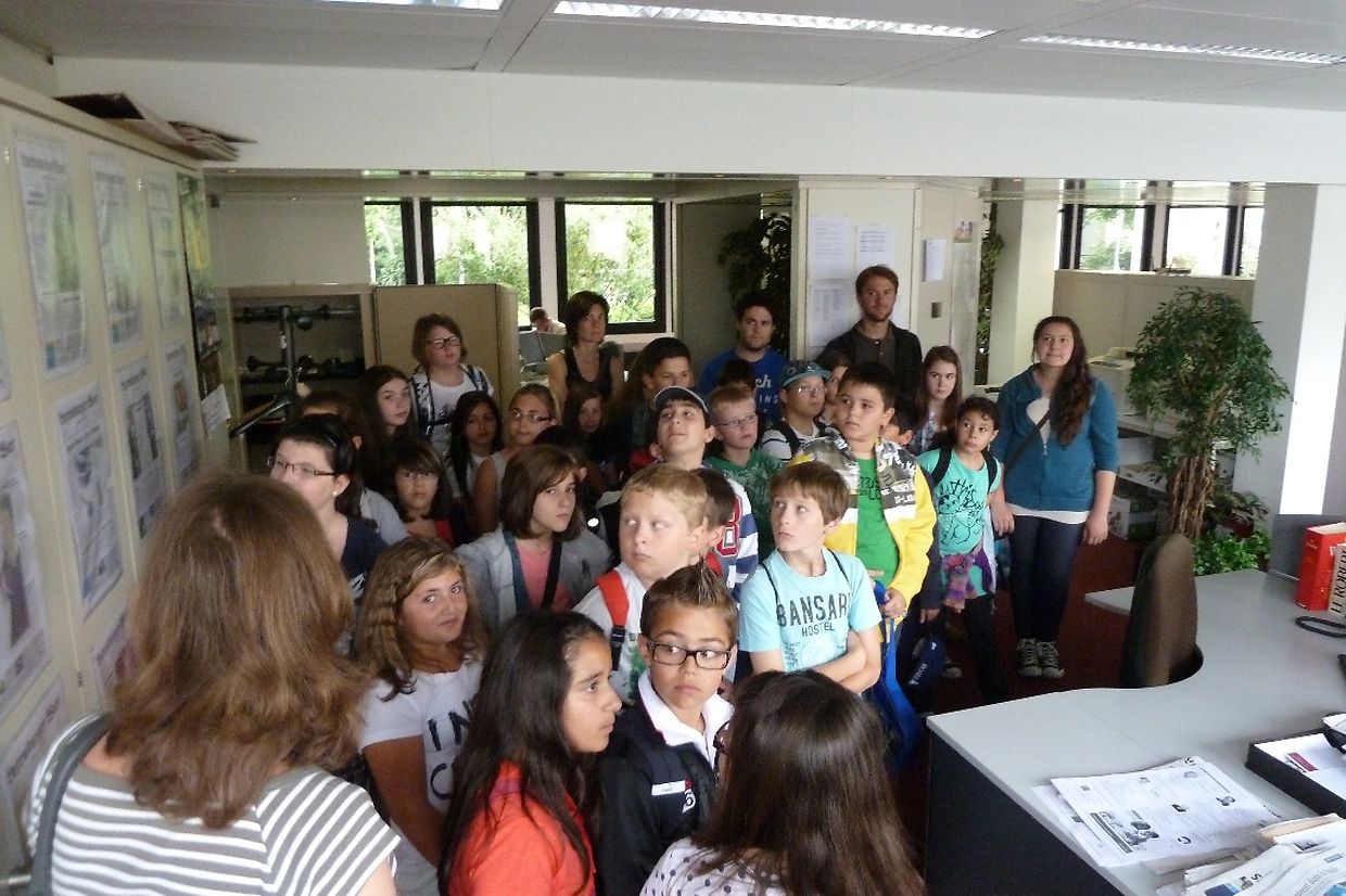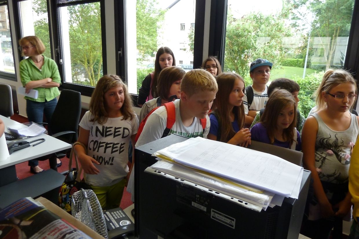 Nach einer langen Busfahrt sind wir in Gasperich beim Luxemburger Wort angekommen. Zuerst haben wir vor der Tür ein Foto gemacht. Nach dem wir ein Foto gemacht haben haben wir die Zeitung von morgen schon gesehen.