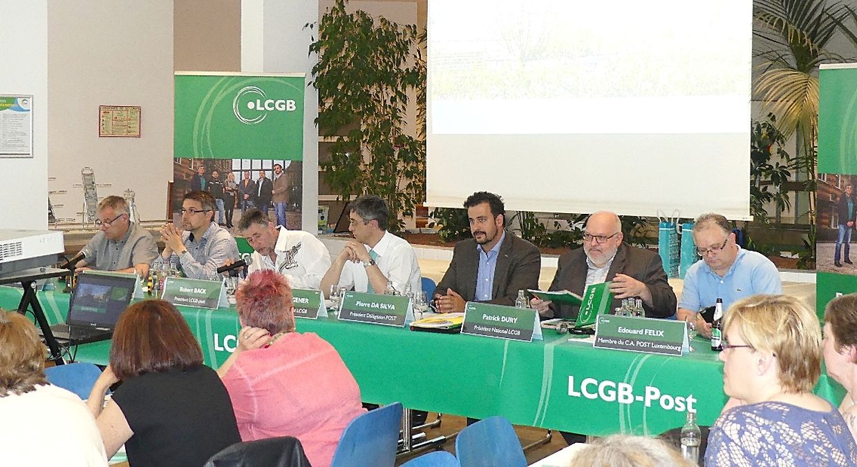 Am 11. Mai 2016 fand auf der Cloche d’Or die Generalversammlung der LCGB-POST Betriebsmannschaft statt. Nach einer kurzen Einführung durch den Präsidenten der LCGB-POST, Robert BACK, stellte Pierre DA SILVA, Präsident der Personaldelegation, den Tätigkeitsbericht vor. Dieser enthielt unter anderem diverse Arbeitsversammlungen sowie Sensibilisierungskampagnen vor Ort und eine Retrospektive zum POSTDAG 2016.