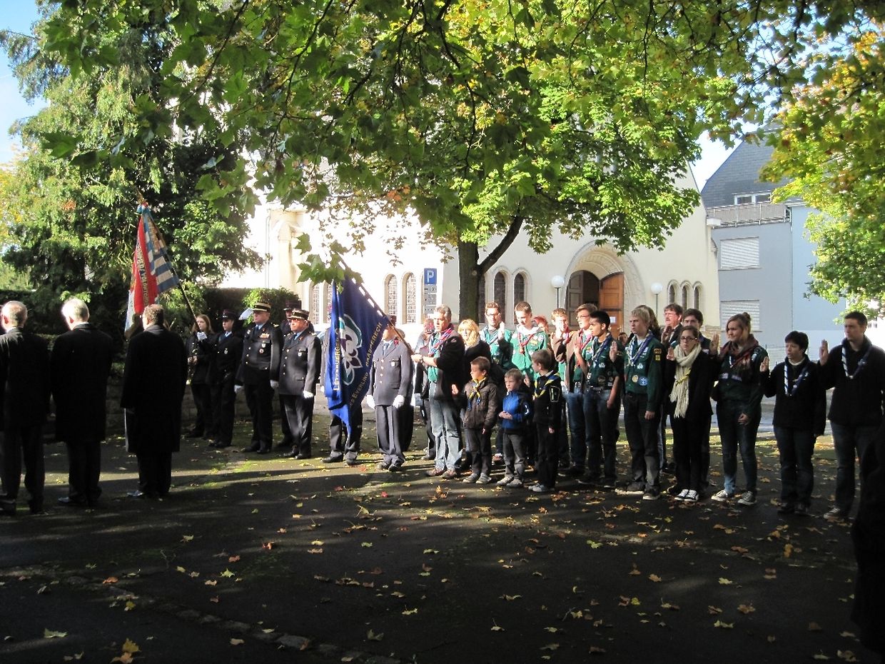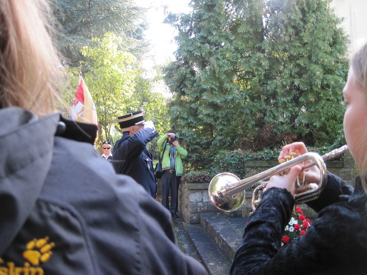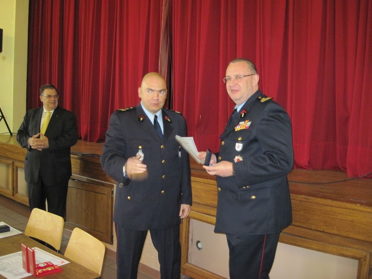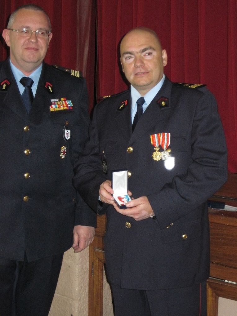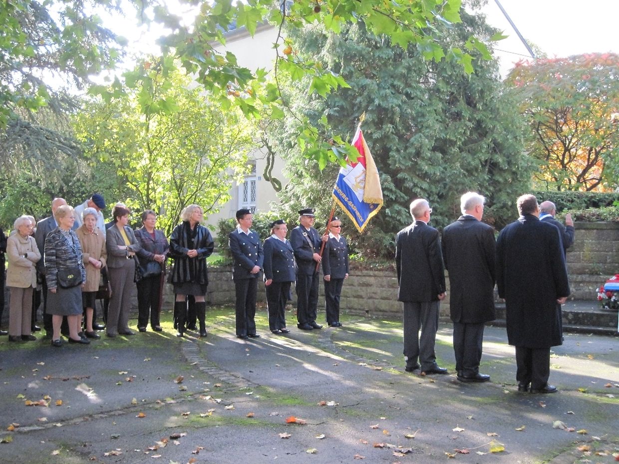 Zur Erinnerung an den Kampf des Luxemburger Volkes während der Besetzung des Landes durch die Nazioppressoren hatte der Interessenverein aus Gasperich am vergangenen 07. Oktober zu den Feierlichkeiten des Nationalen Gedenktages eingeladen. Lokale Vereinigungen sowie Vertreter der Freiwilligen Feuerwehr Luxemburg-Zentrum waren dem Aufruf zum Gedenken an den 10. Oktober 1941, wo das Luxemburger Volk durch ein Referendum seinen Willen und seine Entschlossenheit äusserte, sich von der Nazi-Diktatur zu befreien, gefolgt. Im Anschluss an die religiöse Feier welche zelebriert wurde von Abbé Jean Hierzig, versammelten sich die Vereine sowie Anwohner des Viertels vor dem „Monument aux Morts, wo ein Blumengebinde zur Erinnerung an die für unsere Heimat Gefallenen niedergelegt wurde. Nachdem die Sonnerie aux Morts, gespielt von Anne Duchscher und Christina Meyer verklungen war, stimmte der Kirchenchor unter der Leitung von Mme Sylvie Zuccoli die „Heemecht“ an und die Anwesenden schlossen sich im Andenken an die Frauen und Männer die Verfolgung und Zertrümmerung miterlebt haben, an. Dann lud François Dahm, Präsident des lokalen Interessenvereines ins Home St Joseph ein, um im gemütlichen Beisammensein den Sonntagmorgen ausklingen zu lassen. Bei dieser Gelegenheit wurden Marc Mamer, Roberto Scolati sowie Patrick Steffes Medaillen für langjährige Verdienste im Feuerwehrwesen verliehen. jl - Fotos : Jacquie Lakaff