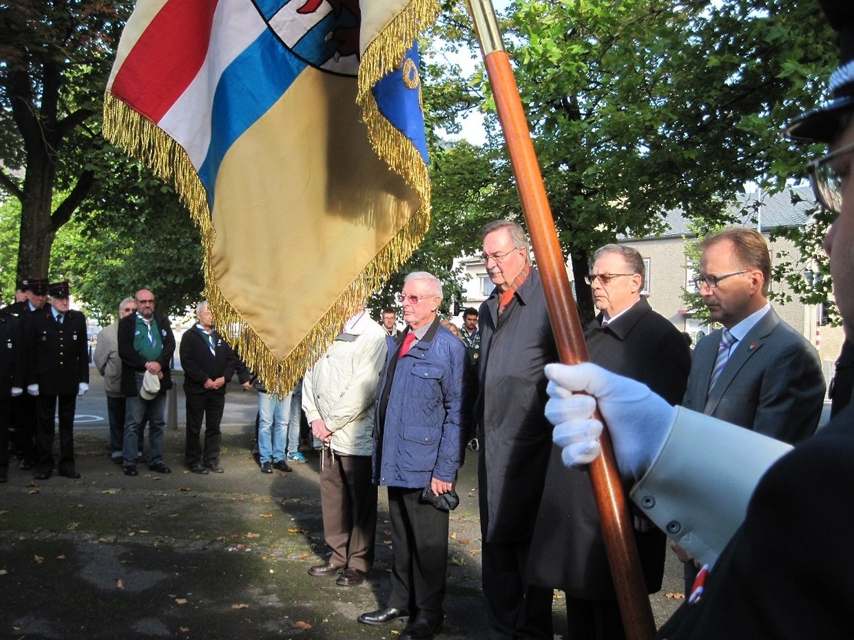 No enger festlecher Mass, huet de Syndicat mat den Gaasperecher Veräiner beim Monument eng Gerbe niddergeluecht fir un déi Verstuewen aus dem leschten Krich ze gedenken.