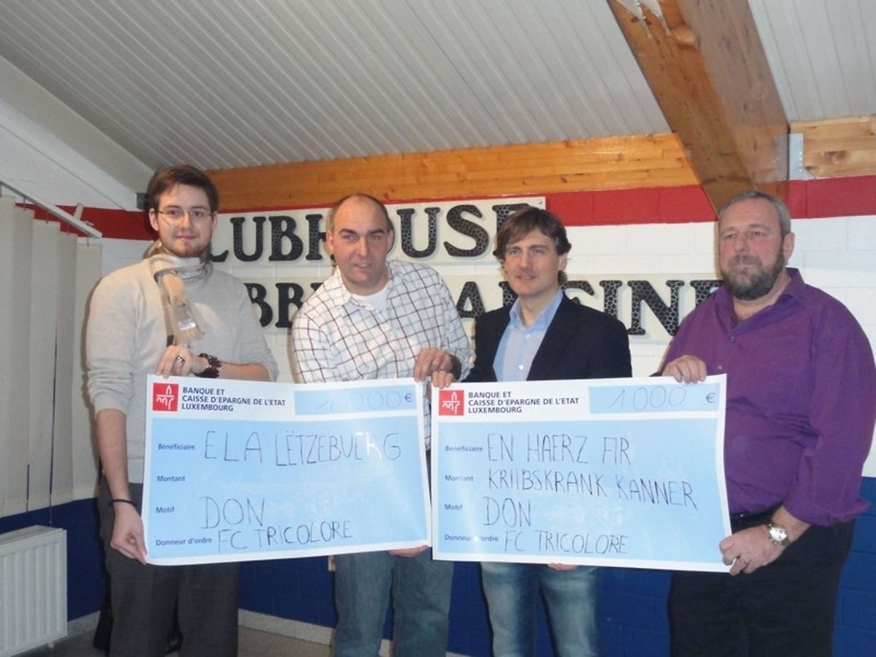 Virun der Versammlung huet den FC Tricolore 2 Schecken vu jeeweils 1000 € fir Ela Lëtzebuerg an Hëllef fir kriibskrank Kanner iwwerreecht.