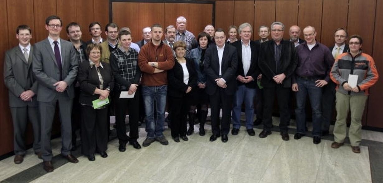 Personalchef Roby Ernzer fasste den beruflichen Werdegang eines jeden Mitarbeiters zusammen. Zum Dank für ihre treuen Dienste erhielten die Jubilare ein Geschenk.