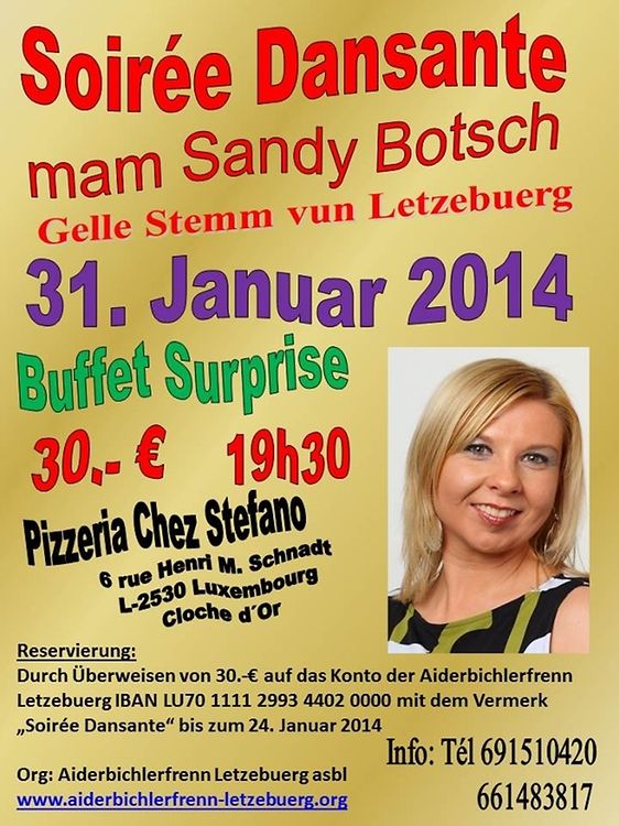 Am Freitag, den 31. Januar 2014 veranstaltet die Aiderbichlerfrenn Letzebuerg asbl einen Tanzabend mit "Buffet Surprise".