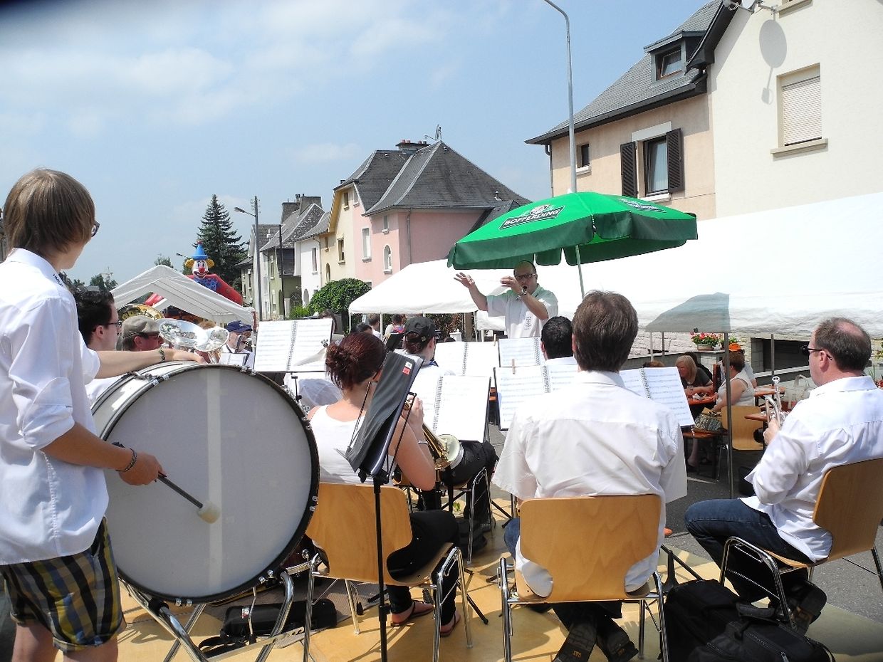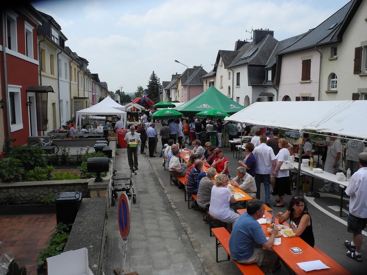 In der "Rue Christophe Colomb" wurde heute ein Konzert der „Gaasperecher Musek“ und eine Zaubershow von Saarbra Kadabra geboten. Am Nachmittag wird es eine Vorführung der Assistenzhunde geben. Um dieser Vereinigung die Finanzierung eines weiteren Hundes zu ermöglichen haben die „Gaasperecher Guiden a Scouten“ in den vergangenen Wochen und Monaten fleißig Schraubverschlüsse von Plastikflaschen gesammelt. Die Recyclingfirma wird zum Dank die Ausbildung eines Assistenzhundes übernehmen.