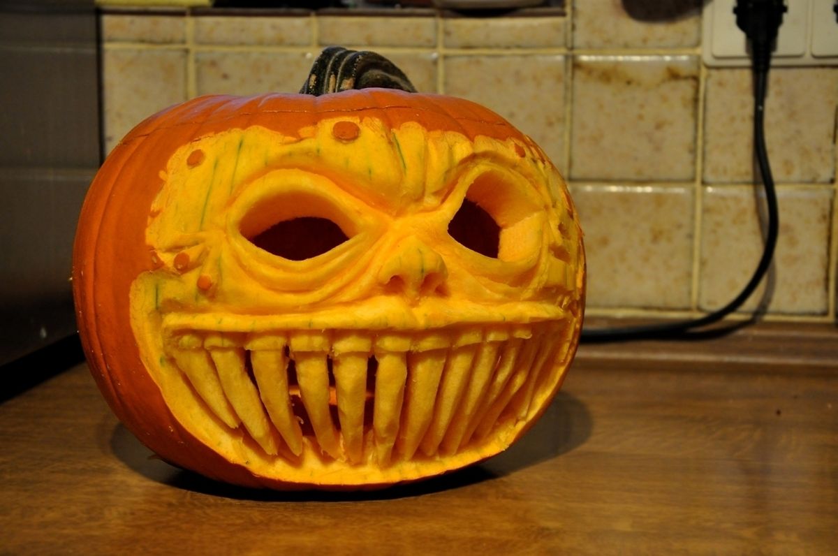 Der Kürbis ist das Symbol für das Halloweenfest schlechthin. Geschnitzt werden vor allem gruselige Gesichter, doch der Themenvielfalt sind keine Grenzen gesetzt.
