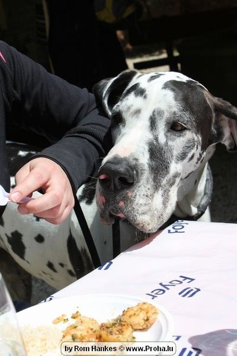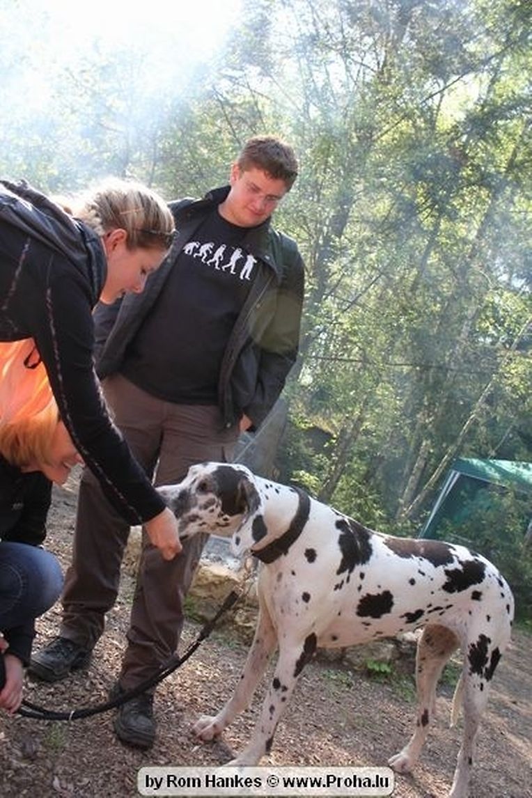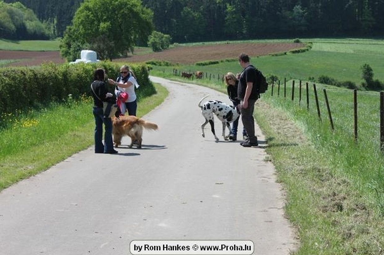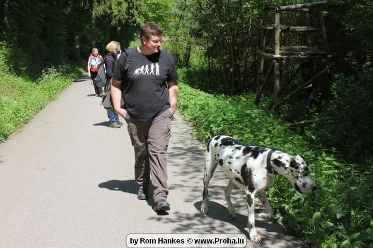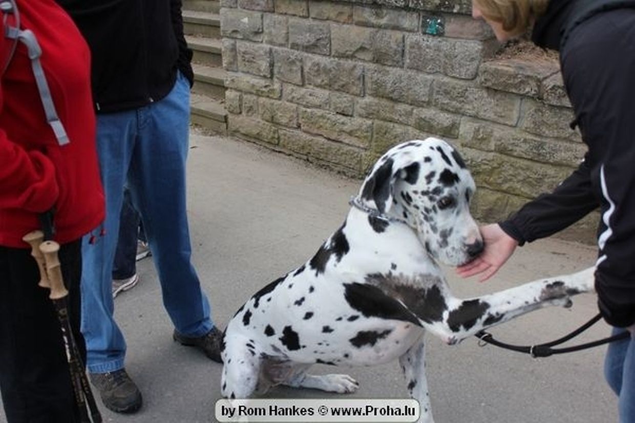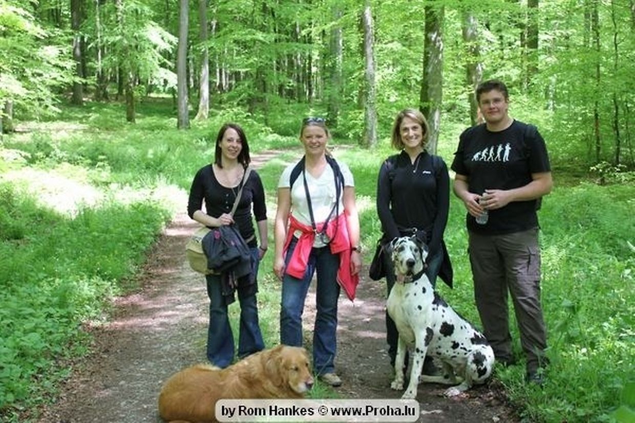 Net schlecht gestaunt hun mir wéi mer eng Grupp iwerhol hun déi een Blannenhnd derbäi haten, natirlech hun mir gefroot vun wou sie kéimen, hier Äntwert war, mir sin eng Grupp vun 17 Leit aus dem Blannenheem, sin 13 Memberen an 4 Betreier an 1 Hond. Iwer den ganzen Dag sollten mir déi sympatesch Leit rem begéinen.
