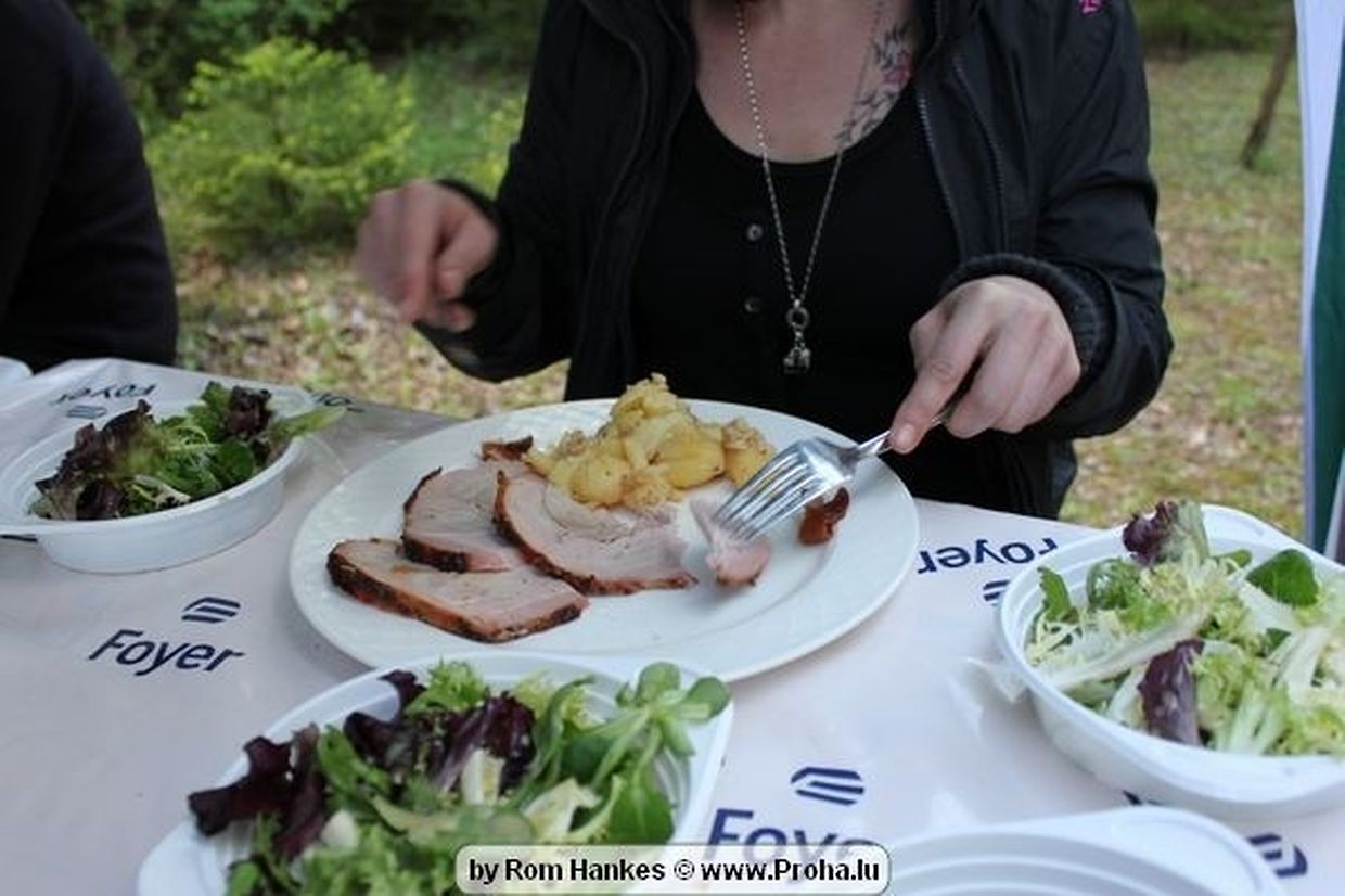 Ravi 4 an der Gilsduerfer Steekaul: Fierkelshämchen mat gebroodenen Gromperen an Zalot an eng grouss Auswiel vun Dessert. Gutt gekaacht Pol. Hei hun mir eis rem all remgesin an mat 500 Iessen woust de Club 51 Éisleck wat sie deen Dag geleescht haten.