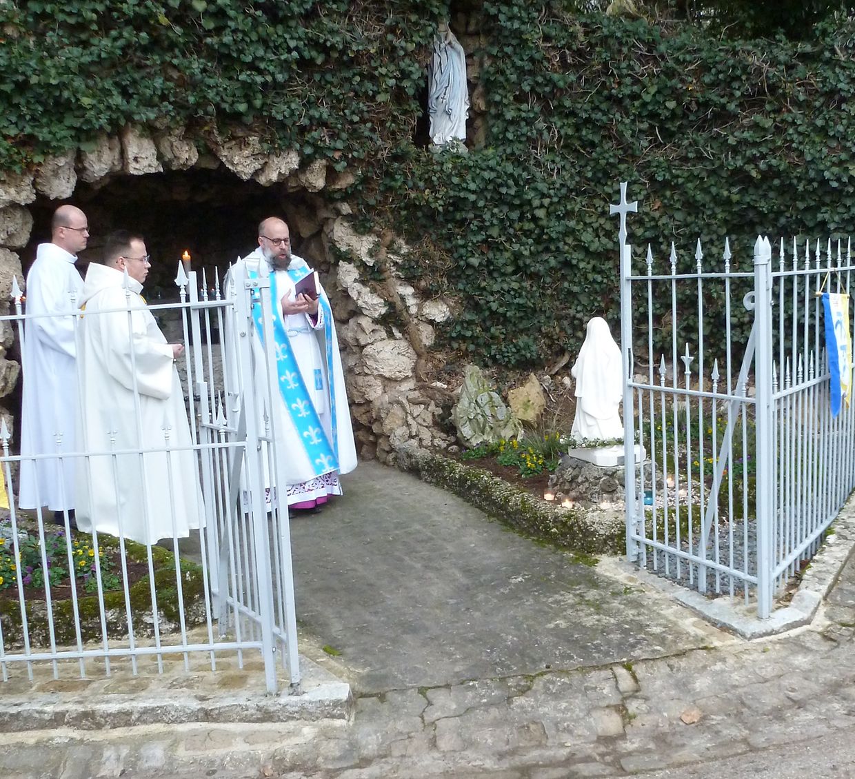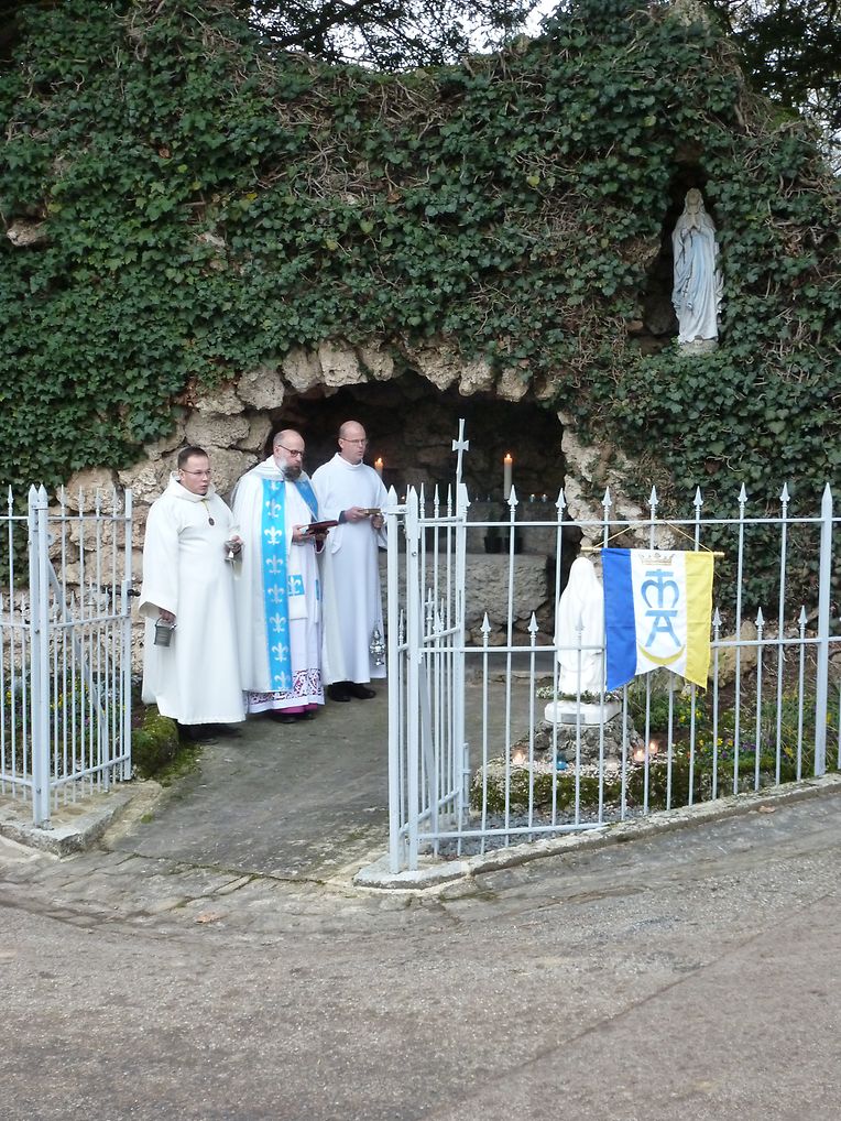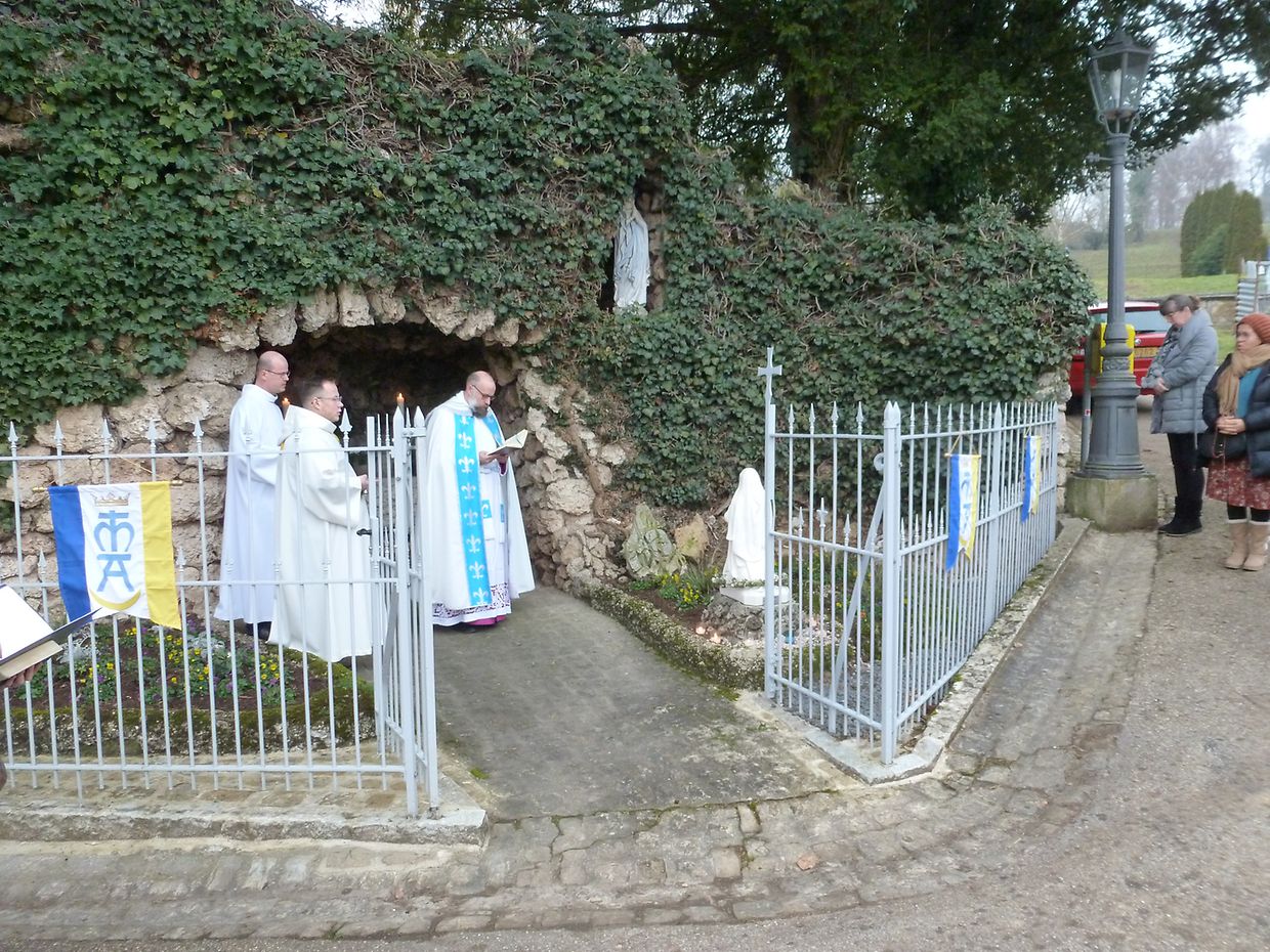 Segnung der neuen Bernadette Statue bei der Lourdes-Grotte in Girsterklaus