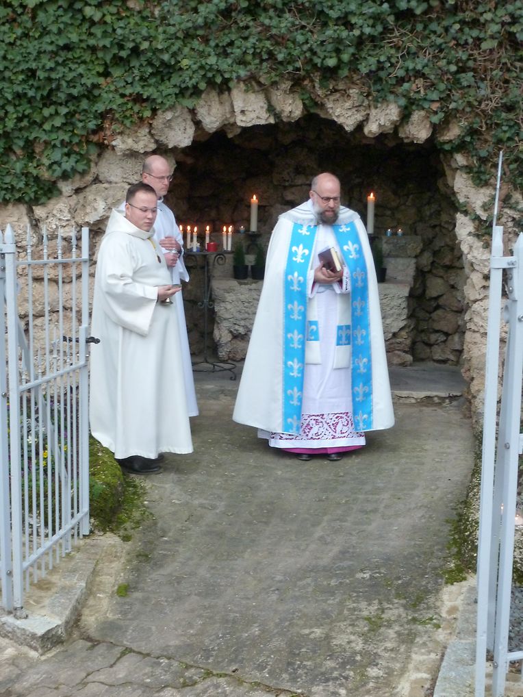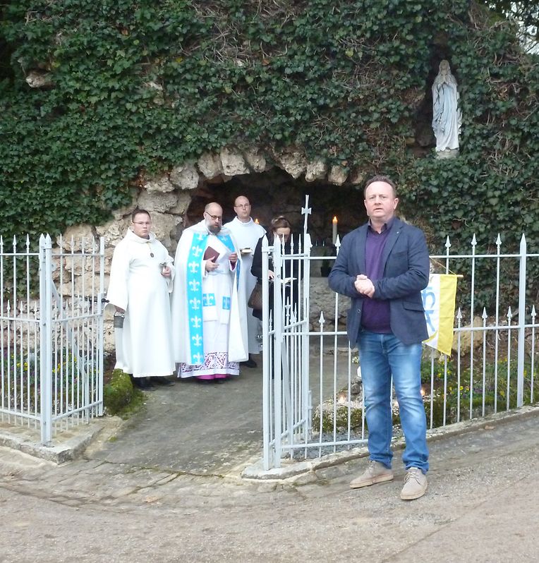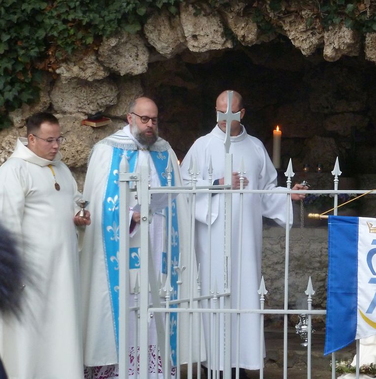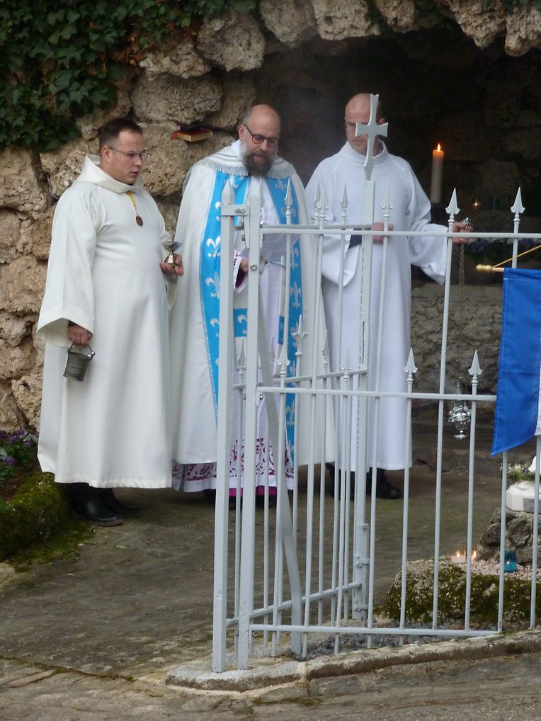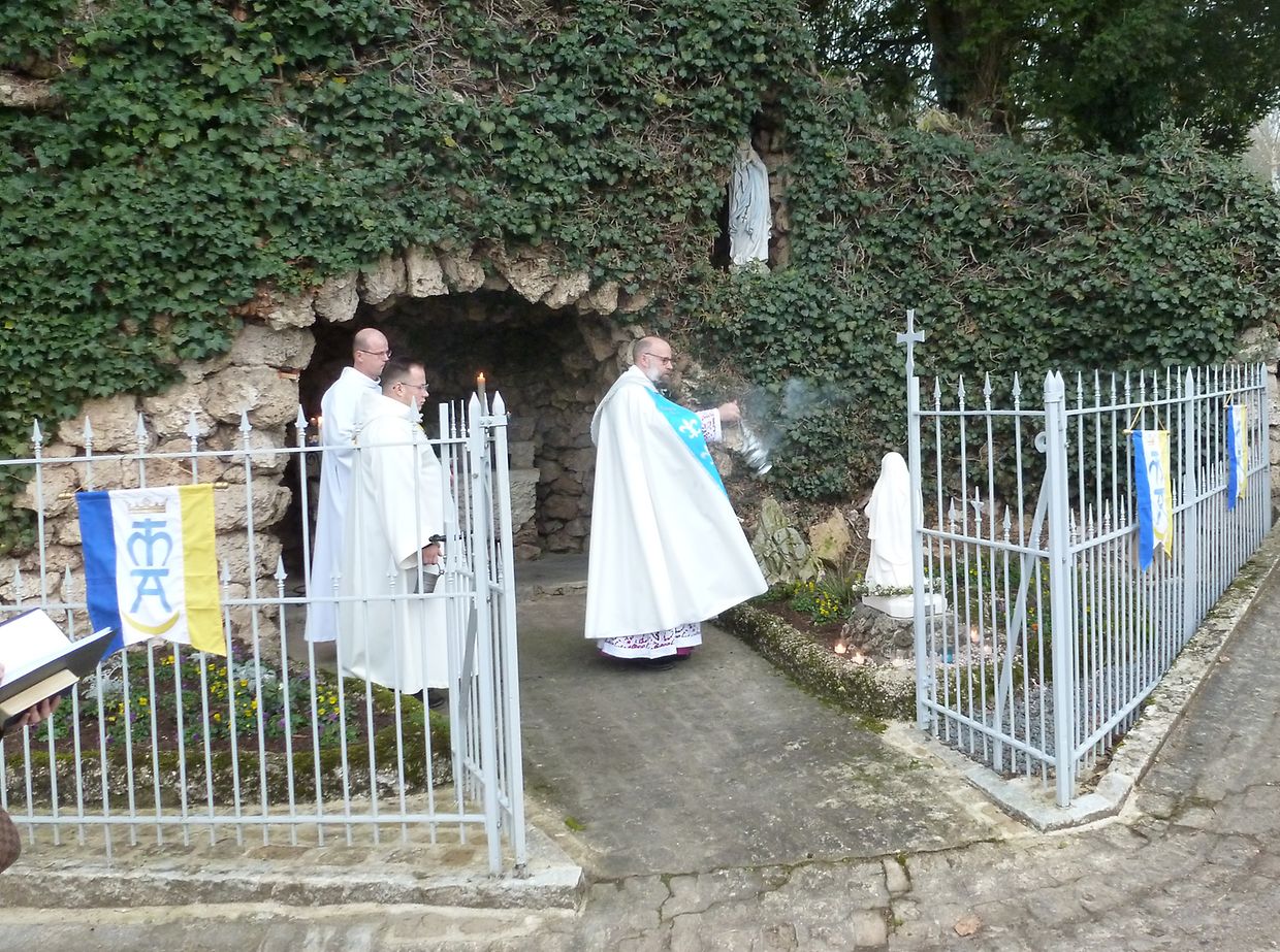 Segnung der neuen Bernadette Statue bei der Lourdes-Grotte in Girsterklaus