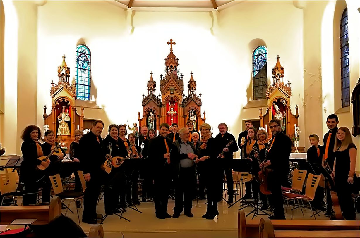 Zu seinem 90. Geburtstag war es dem Verein dann auch eine Ehre , ihm ein kleines Geburtstagsständchen zu spielen, Emile bedankte sich postwendend mit einer Riesenüberraschung in Form einer Spende von 700 € , die er nach dem traditionellen Adventskonzert in der Godbringer Kirche an die Vereinsverantwortlichen überreichte.
