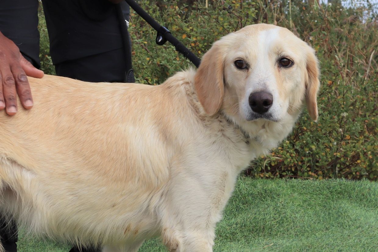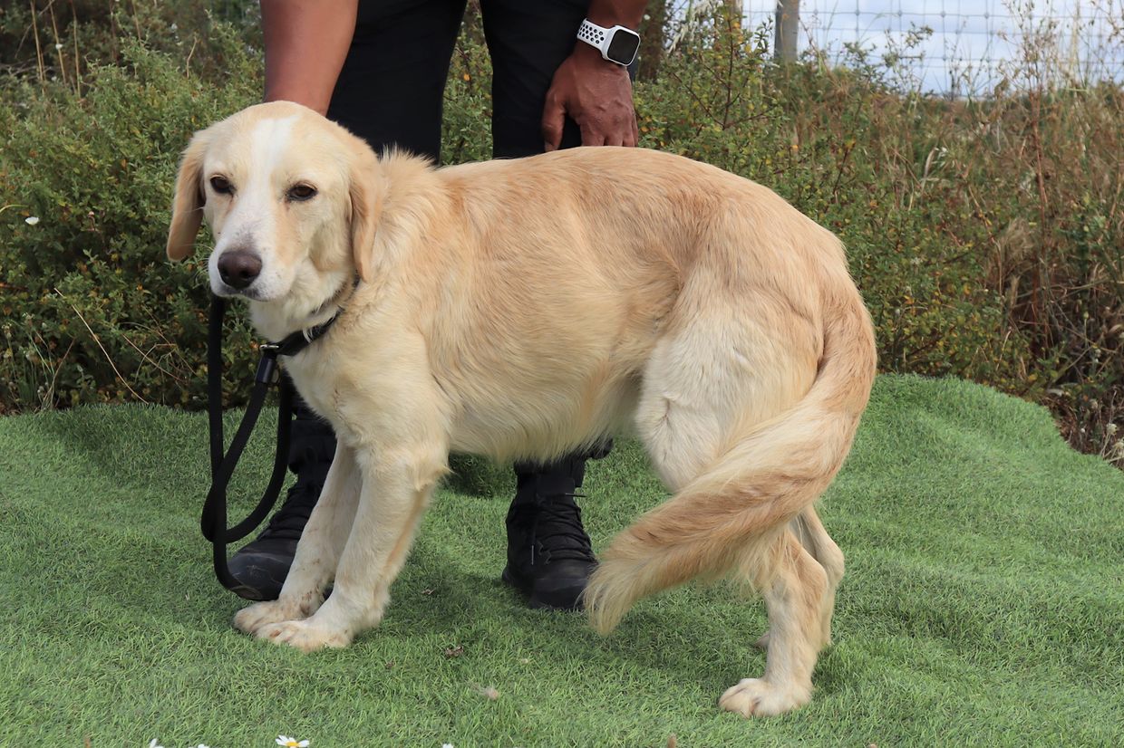 Aurora ist eine liebe und sanfte Goldenretrievermix Hündin von 2 Jahren, die sich sehr gut mit anderen Hunden versteht und mit Leckerlis leicht zu trainieren ist.
